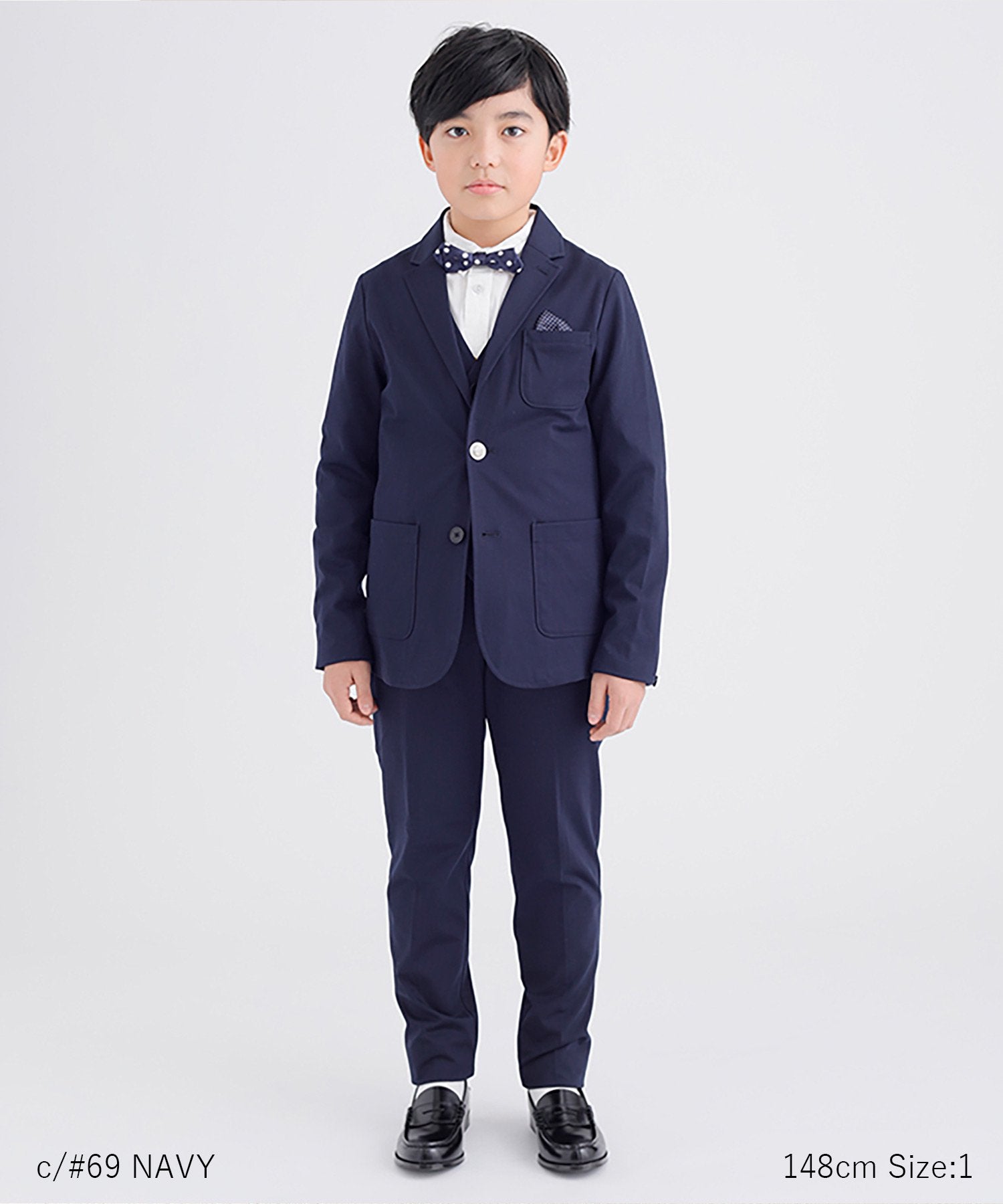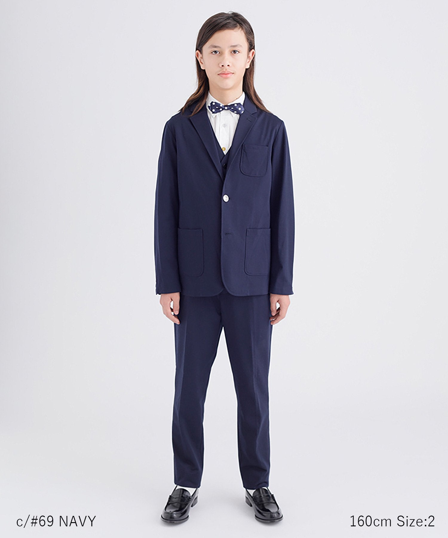 ■Material This high gauge jersey is made of fabric woven from T400® fiber, which has moderate stretch. This material is authentic and is also used in men's suits, and it stretches and contracts with the movement of your body, providing a comfortable fit. Even small children who are not used to wearing suits will feel comfortable.