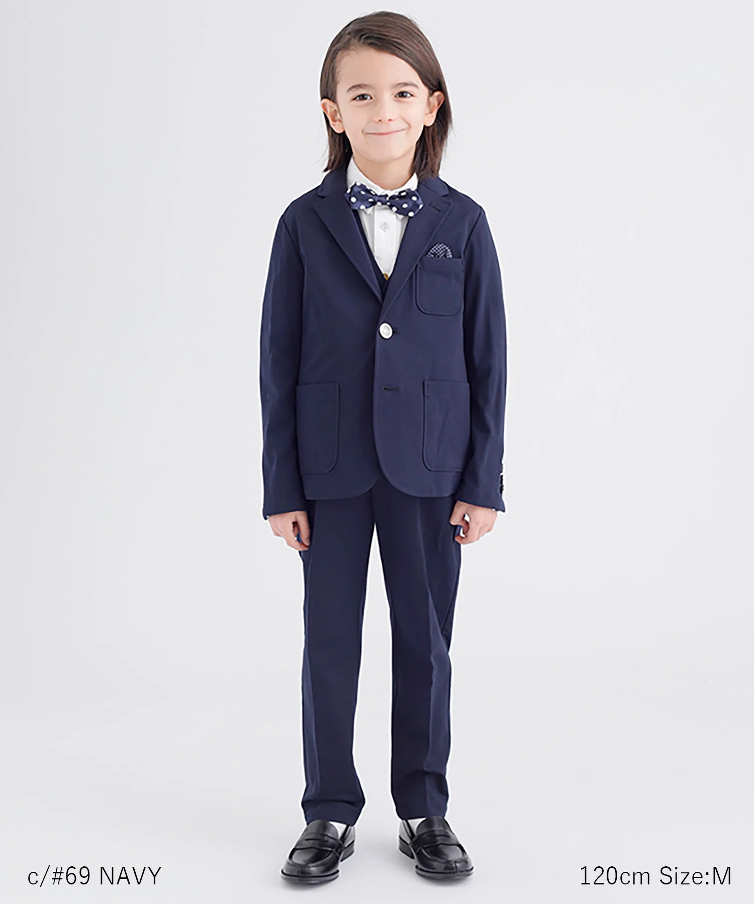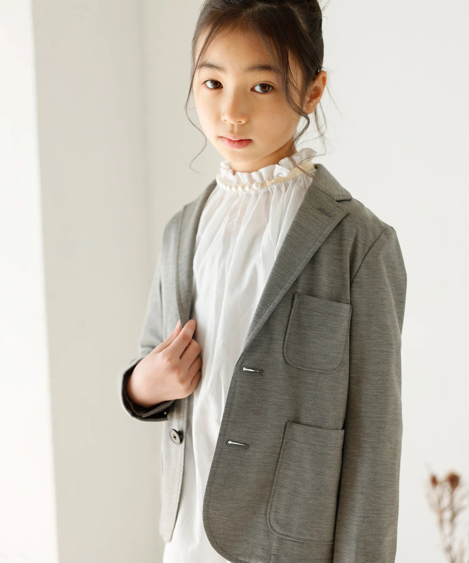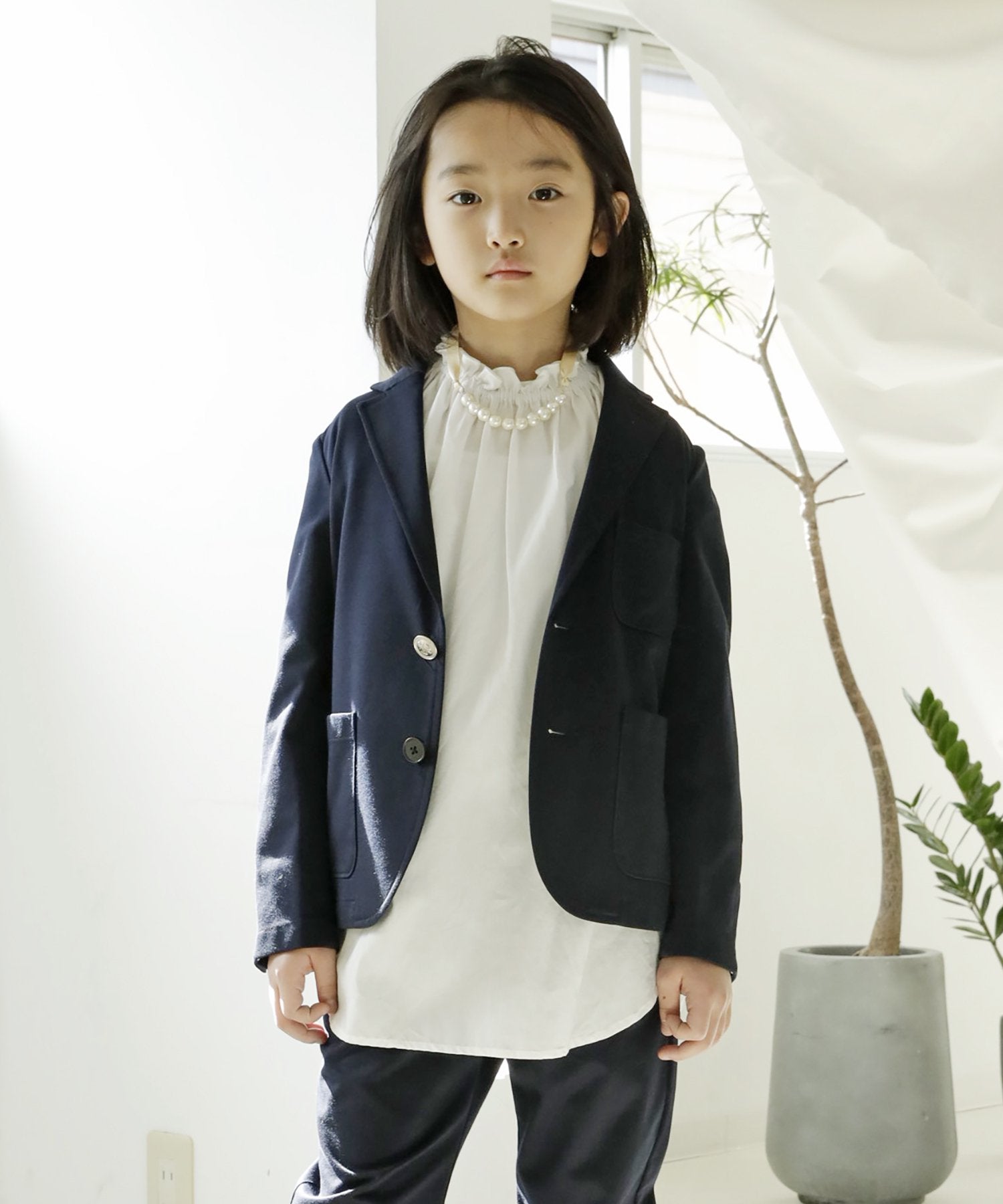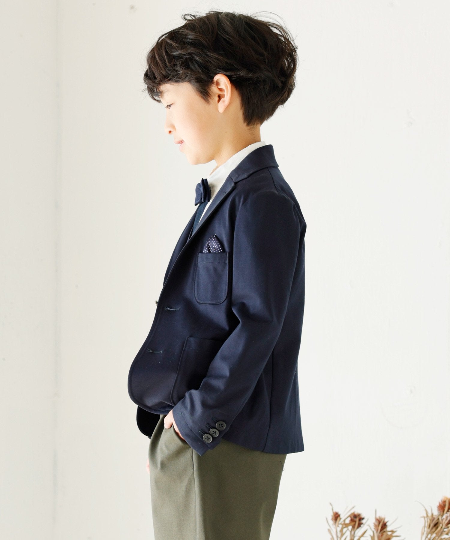 ■Material This high gauge jersey jacket is made of fabric woven from T400 fiber, which has moderate stretch. This fabric is tailored to create a professional suit comparable to men's suits, and it stretches and contracts with the movement of your body, providing a comfortable fit. Even small children can feel comfortable even if they are not used to wearing suits.