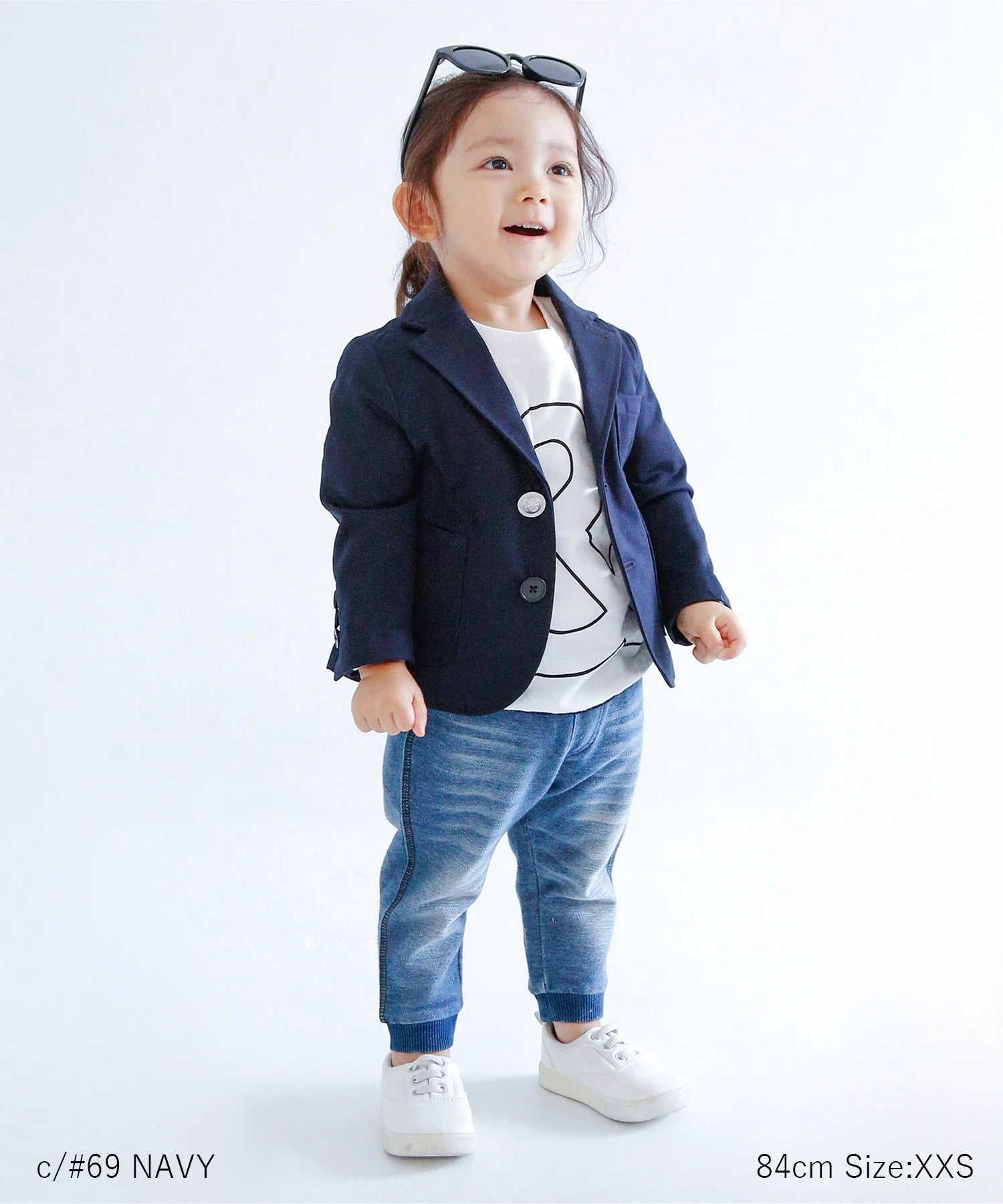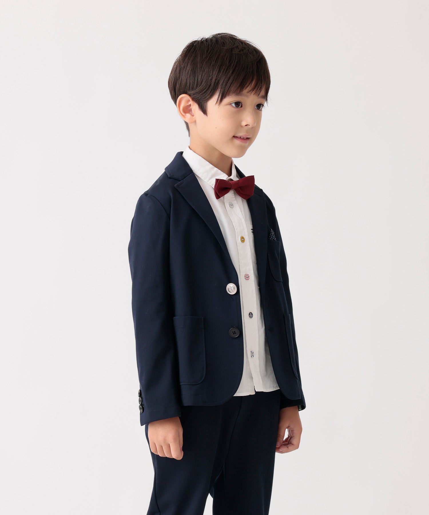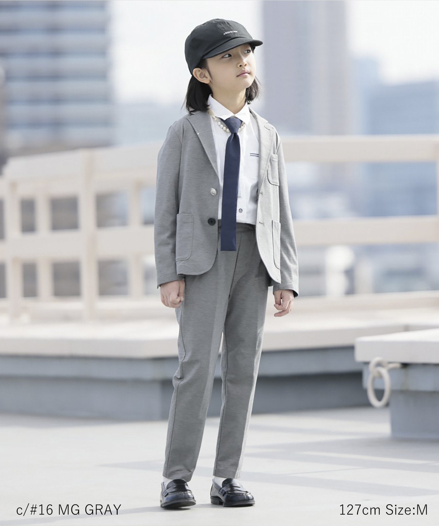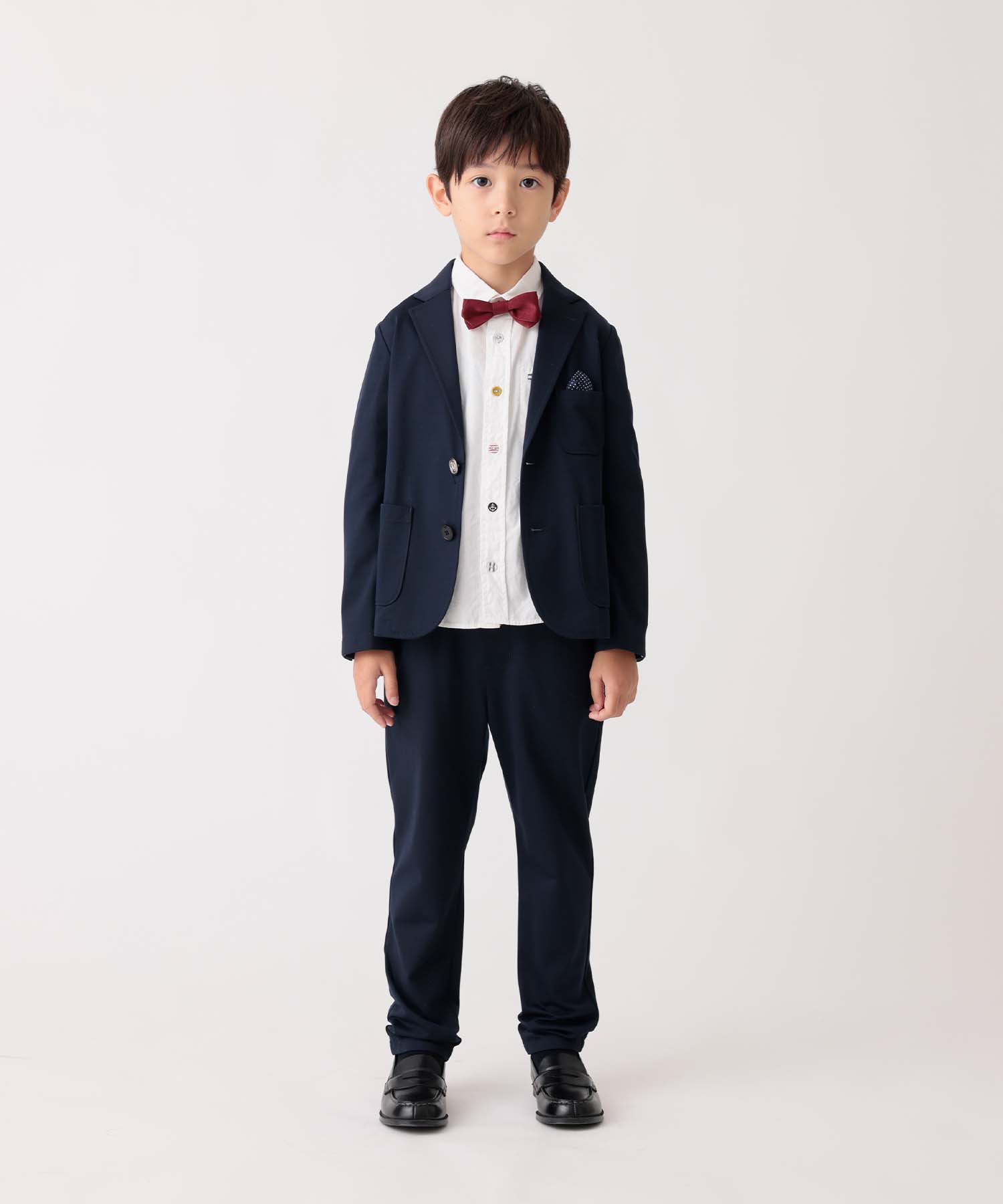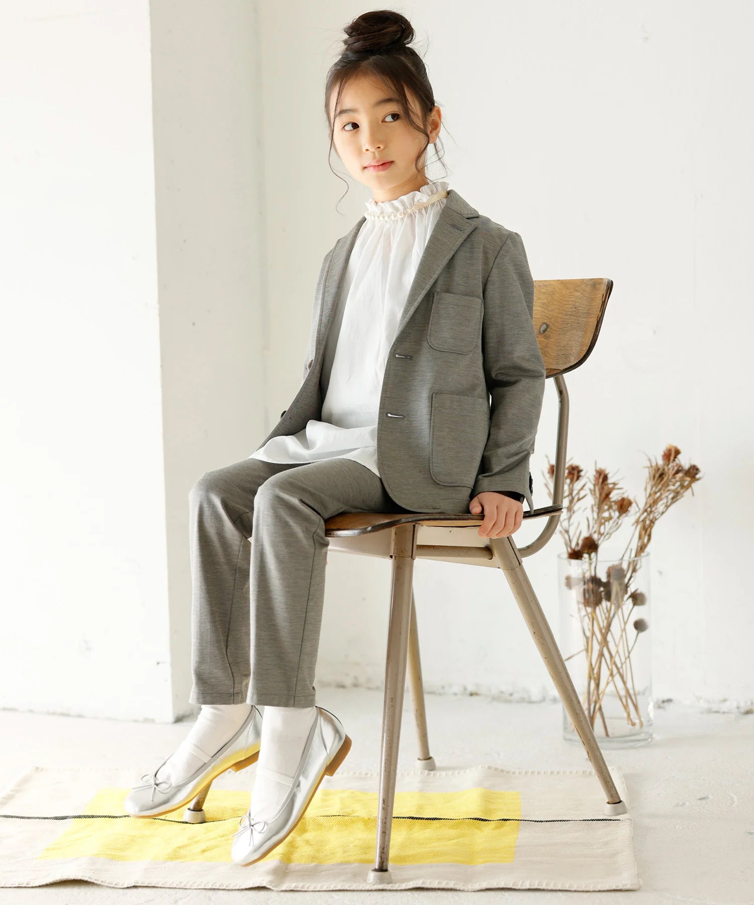 ■Material This high gauge jersey jacket is made of fabric woven from T400 fiber, which has moderate stretch. This fabric is tailored to create a professional suit comparable to men's suits, and it stretches and contracts with the movement of your body, providing a comfortable fit. Even small children can feel comfortable even if they are not used to wearing suits.