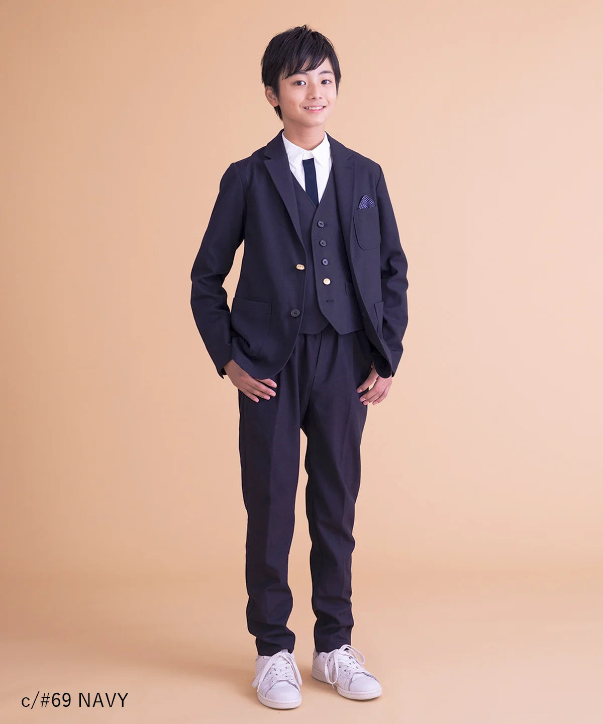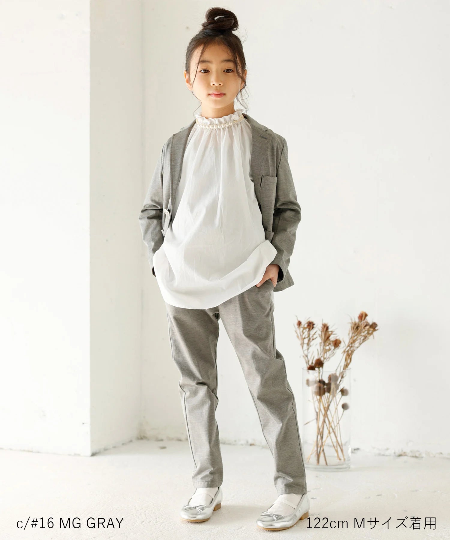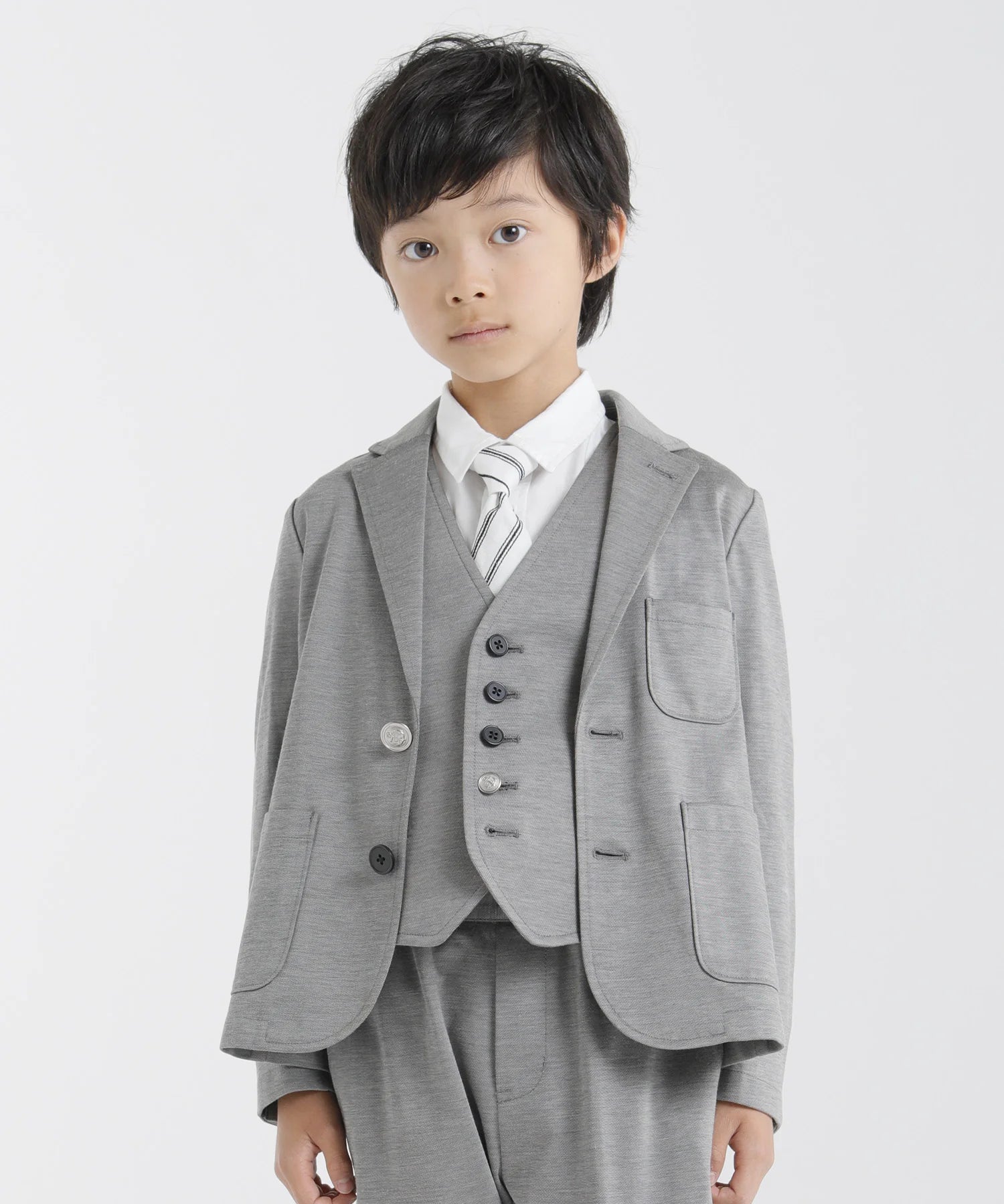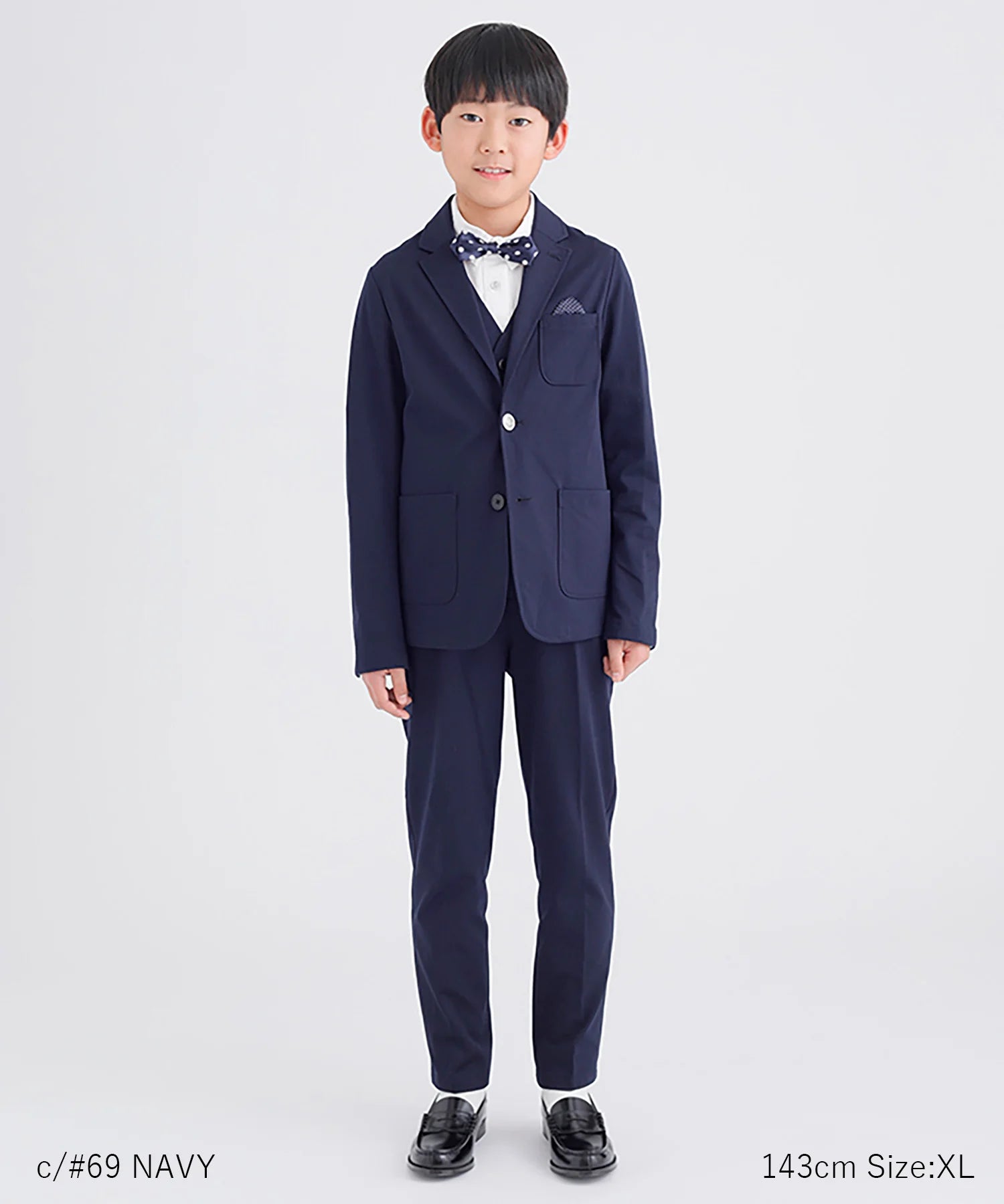 ■Material This high gauge jersey jacket is made of fabric woven from T400 fiber, which has moderate stretch. This fabric is tailored to create a professional suit comparable to men's suits, and it stretches and contracts with the movement of your body, providing a comfortable fit. Even small children can feel comfortable even if they are not used to wearing suits.