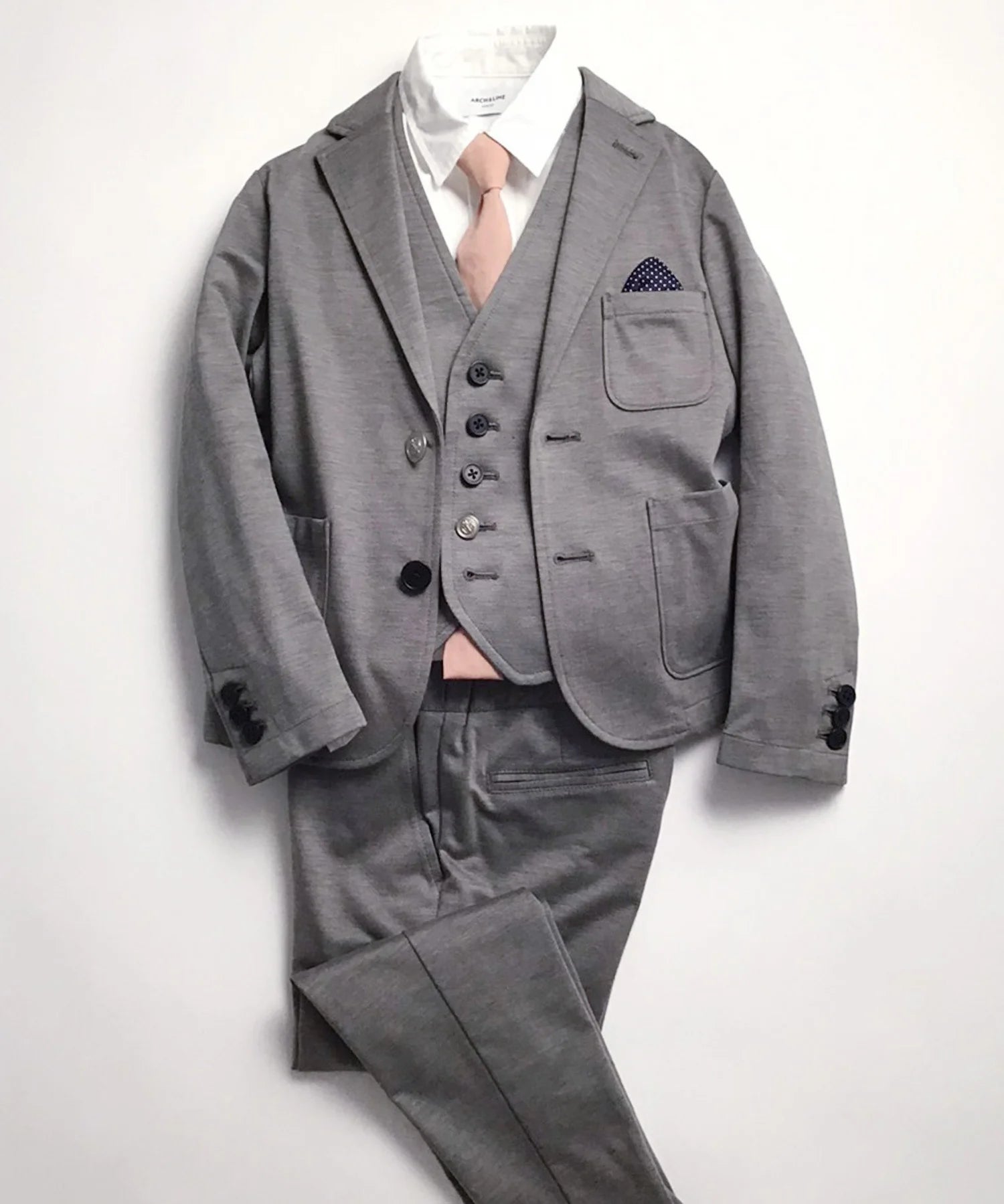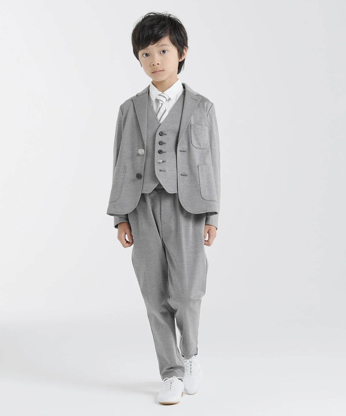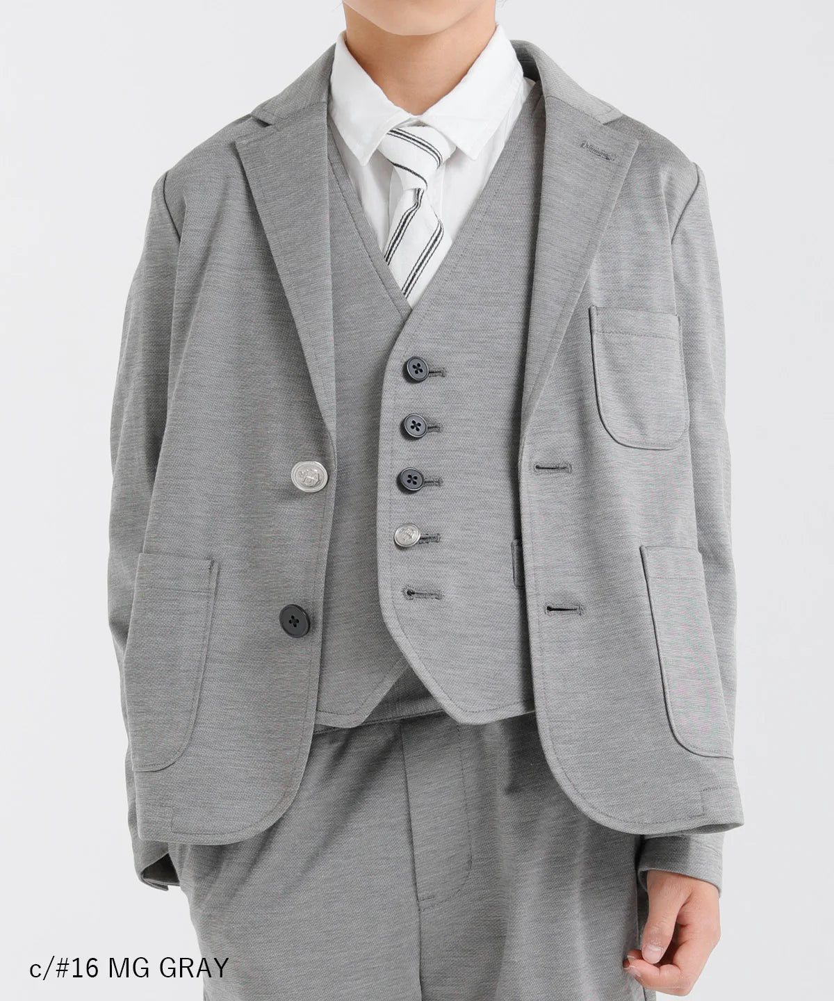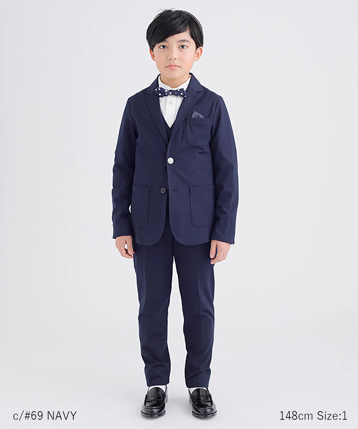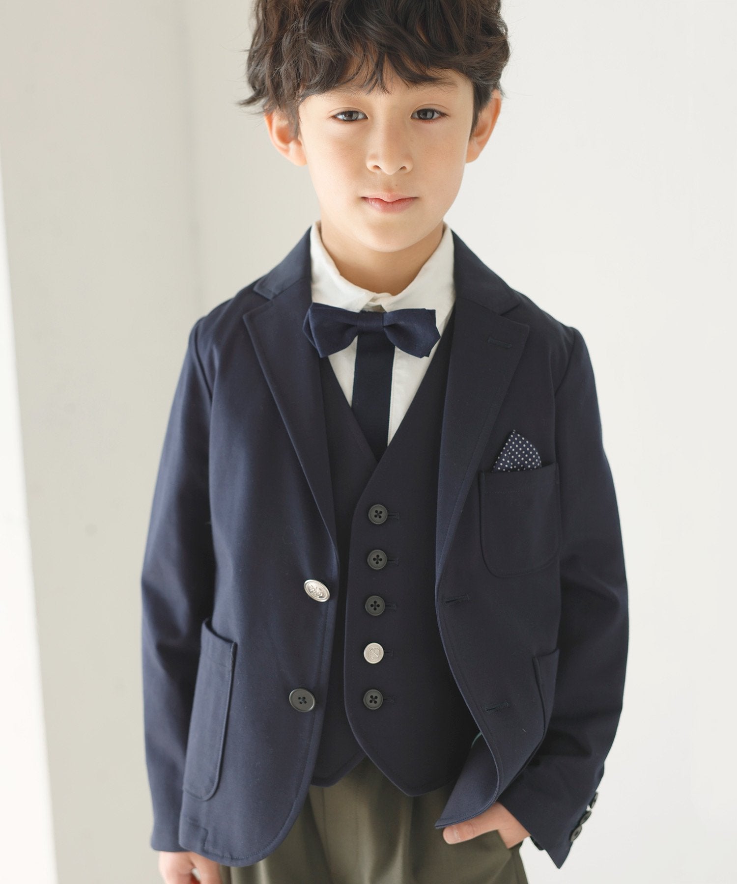 ■Material This high gauge jersey jacket is made of fabric woven from T400 fiber, which has moderate stretch. This fabric is tailored to create a professional suit comparable to men's suits, and it stretches and contracts with the movement of your body, providing a comfortable fit. Even small children can feel comfortable even if they are not used to wearing suits.