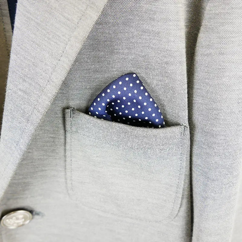 - The chest pocket has a polka dot pattern chief, giving it a casual and stylish look.