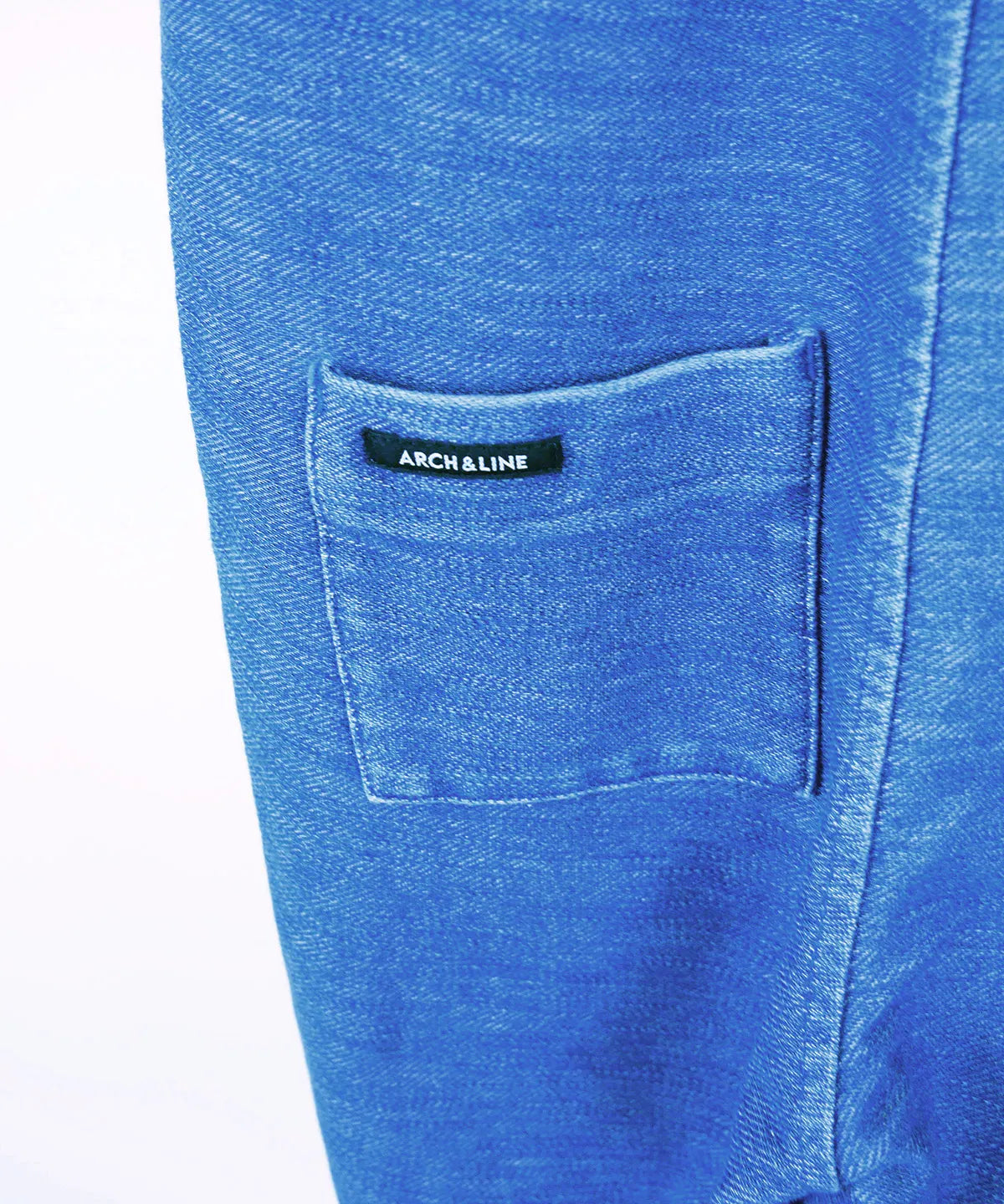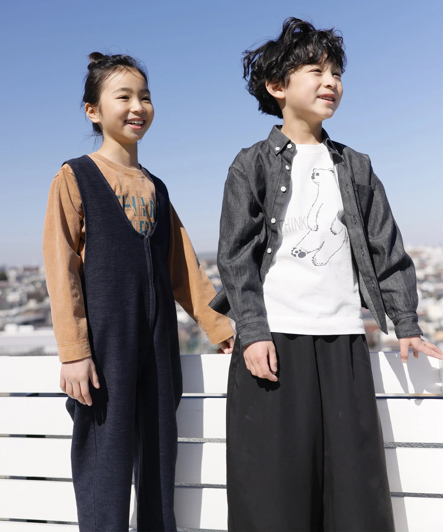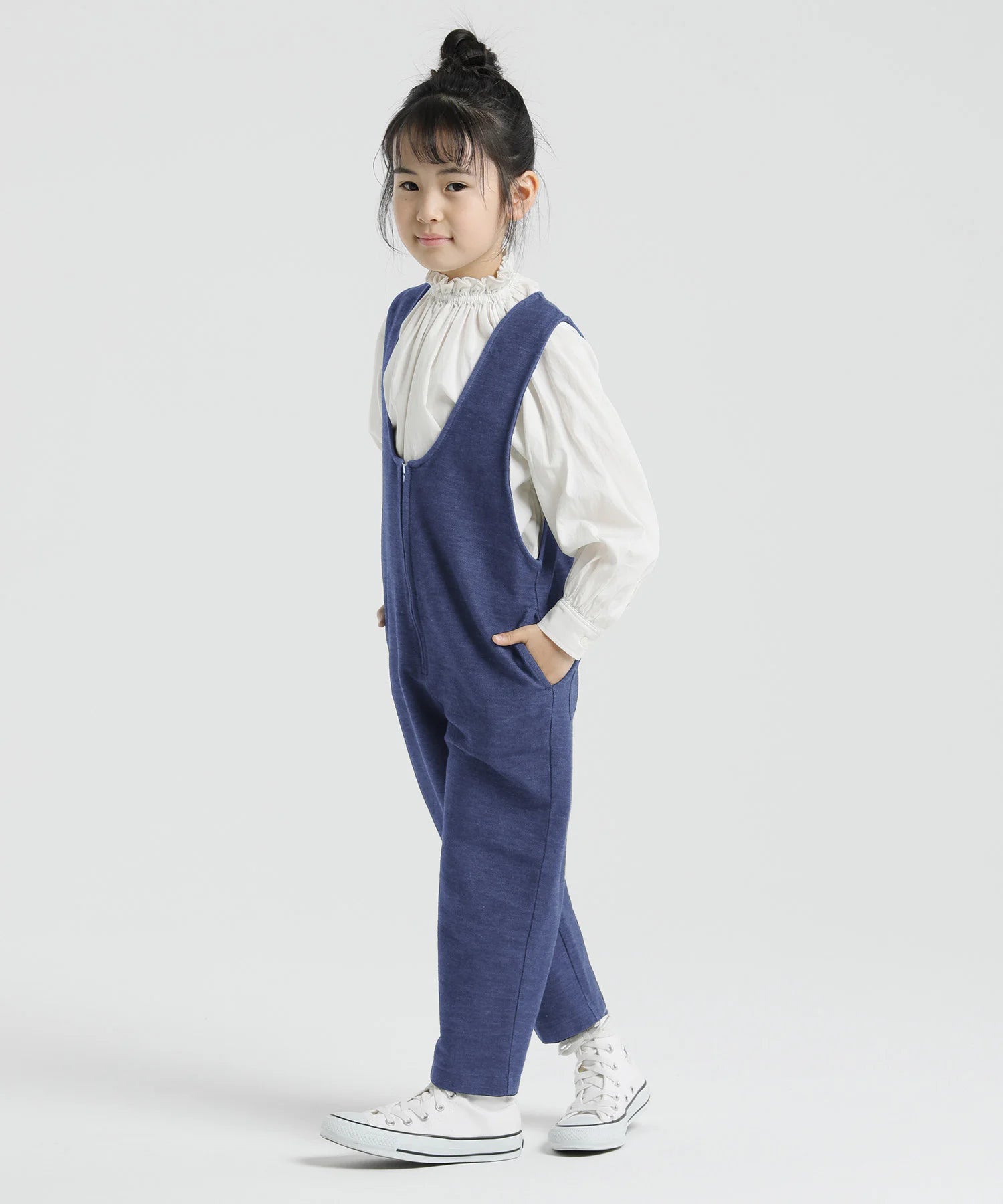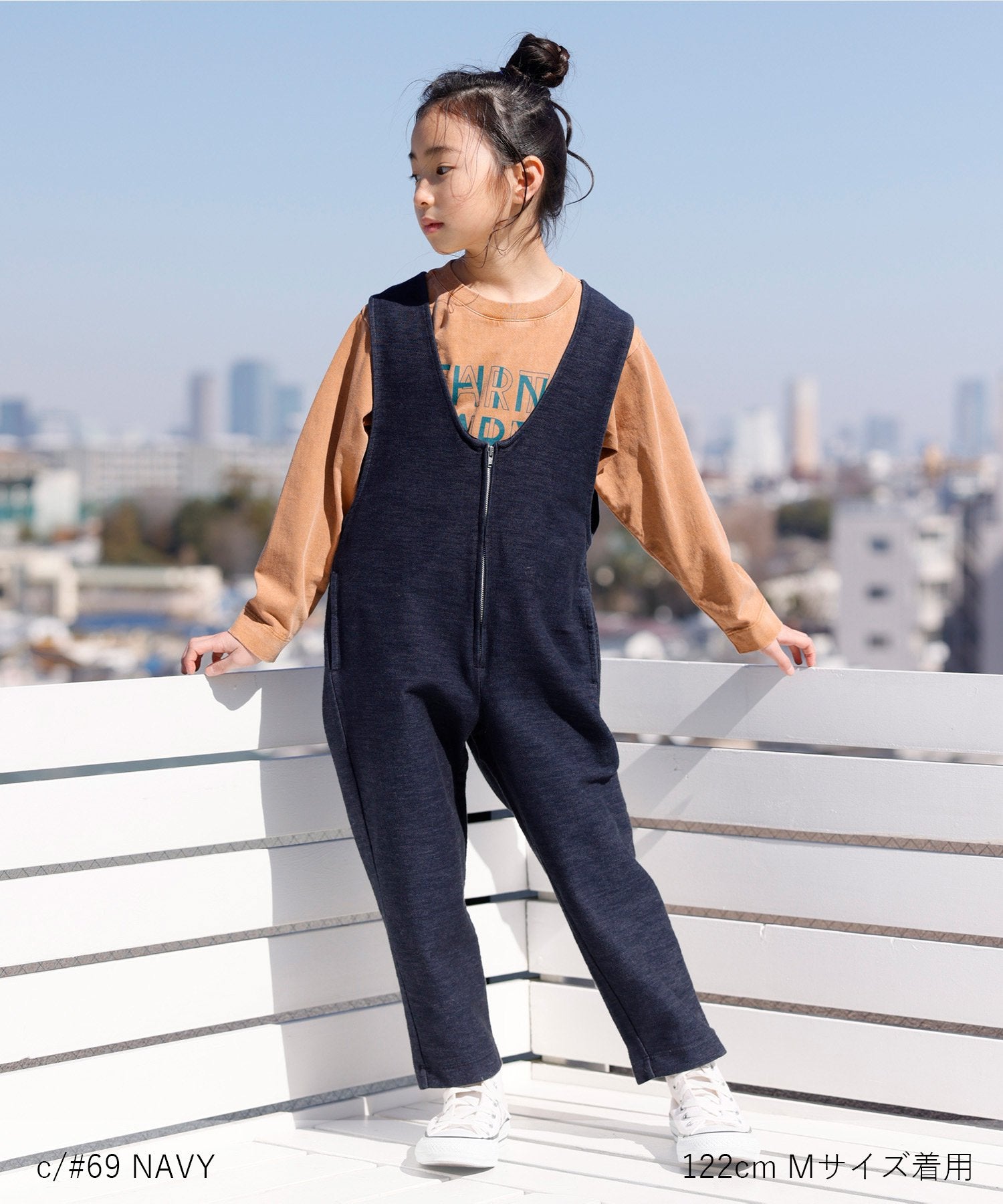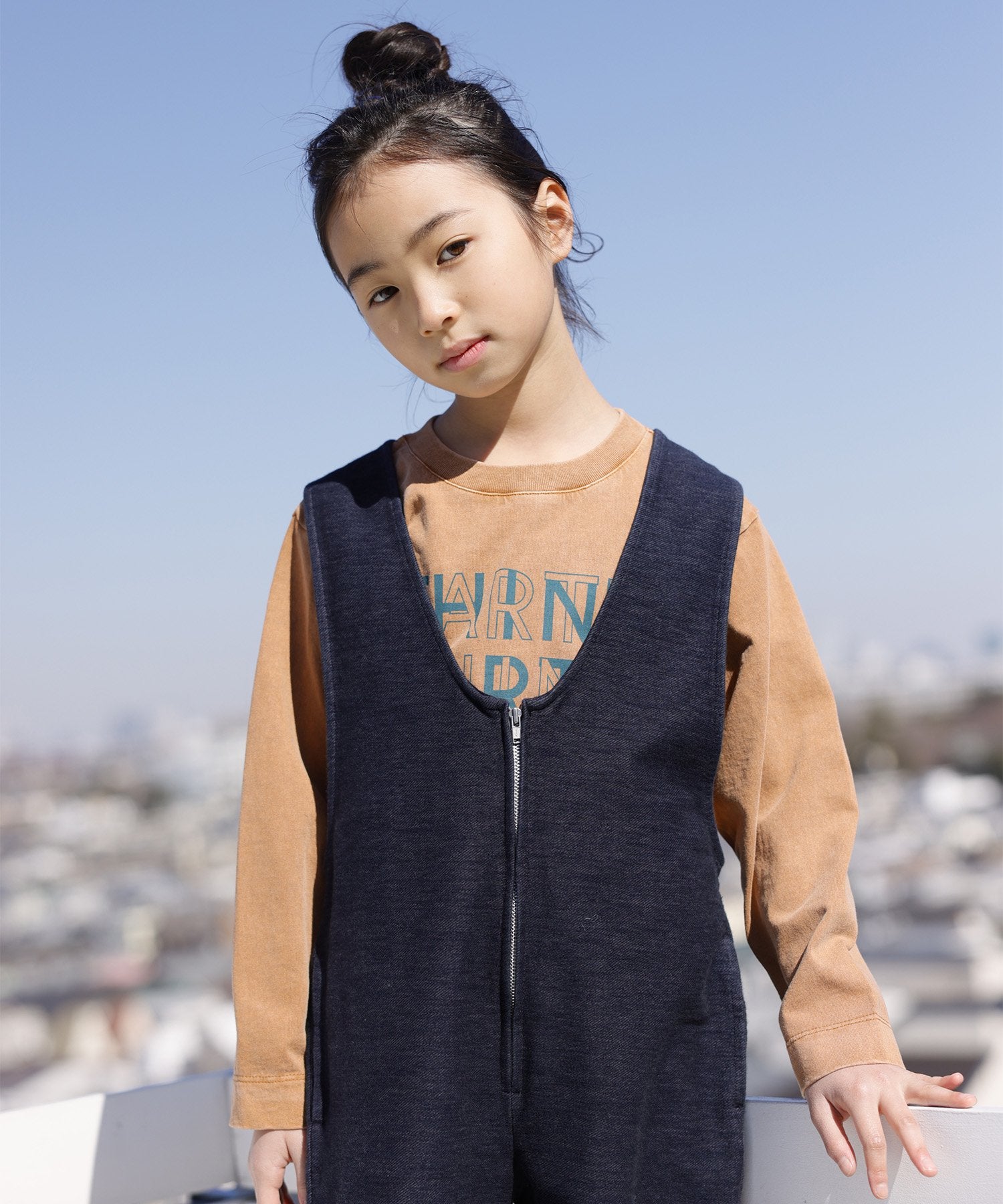 Overalls that can be worn all year round, using classic SOFT DENIM JERSEY. Although it looks like denim, the main point of this product is that it is cut and sewn. These overalls are made of this material that you will become addicted to once you wear them, and are perfect for active children as they will relieve the feeling of tightness in your stomach. Putting on and taking it off is as easy as raising and lowering the zip, so it's not difficult to use the bathroom. This item is dyed with indigo, so you can enjoy it as it changes over time. It has a design that can be worn by both children and adults.