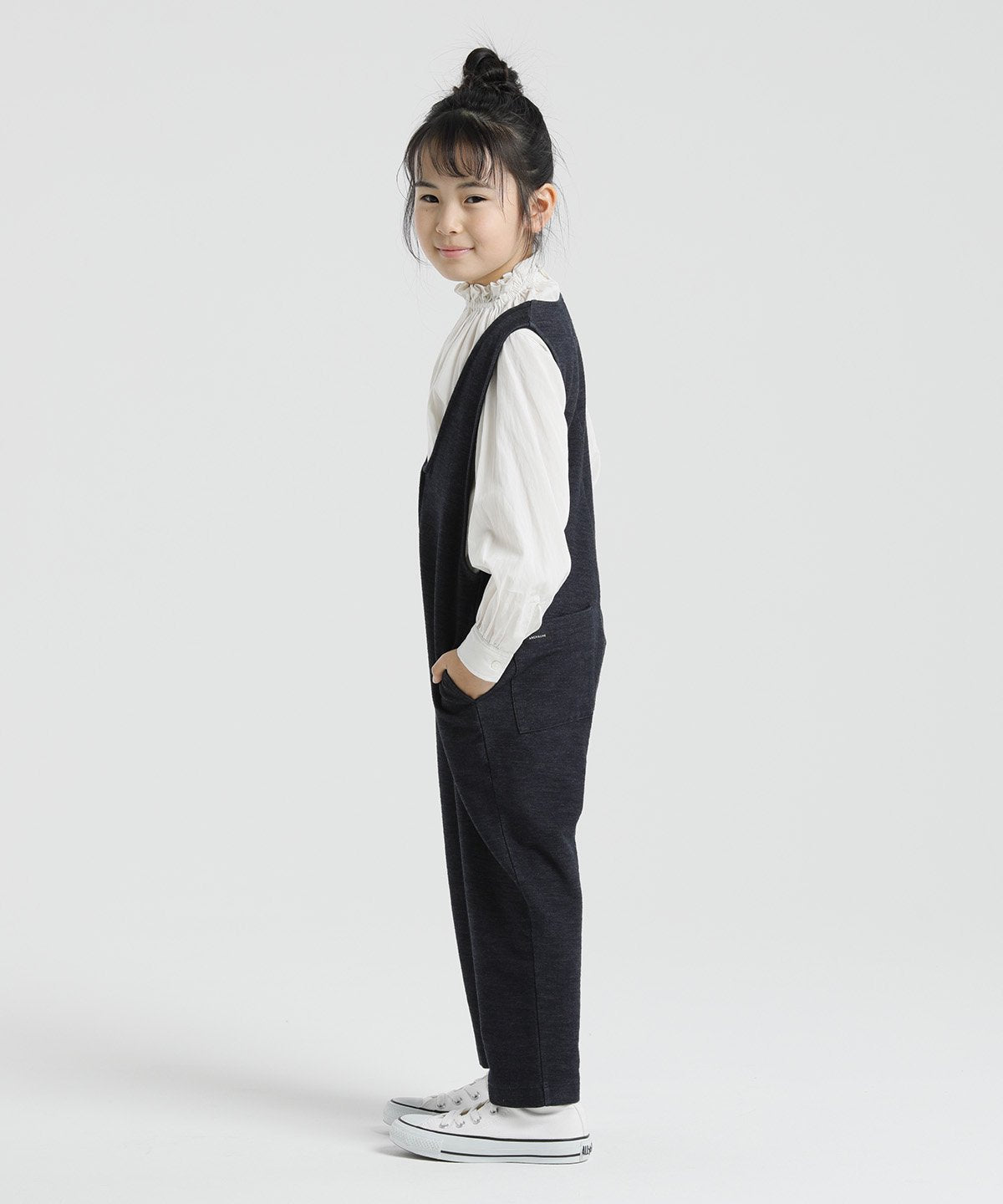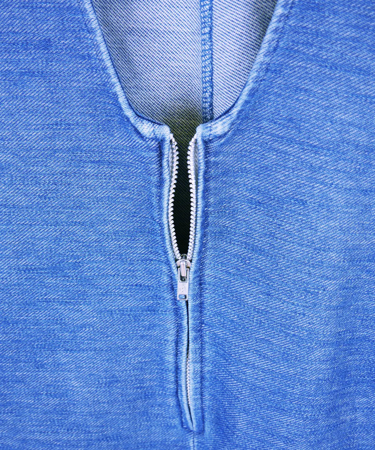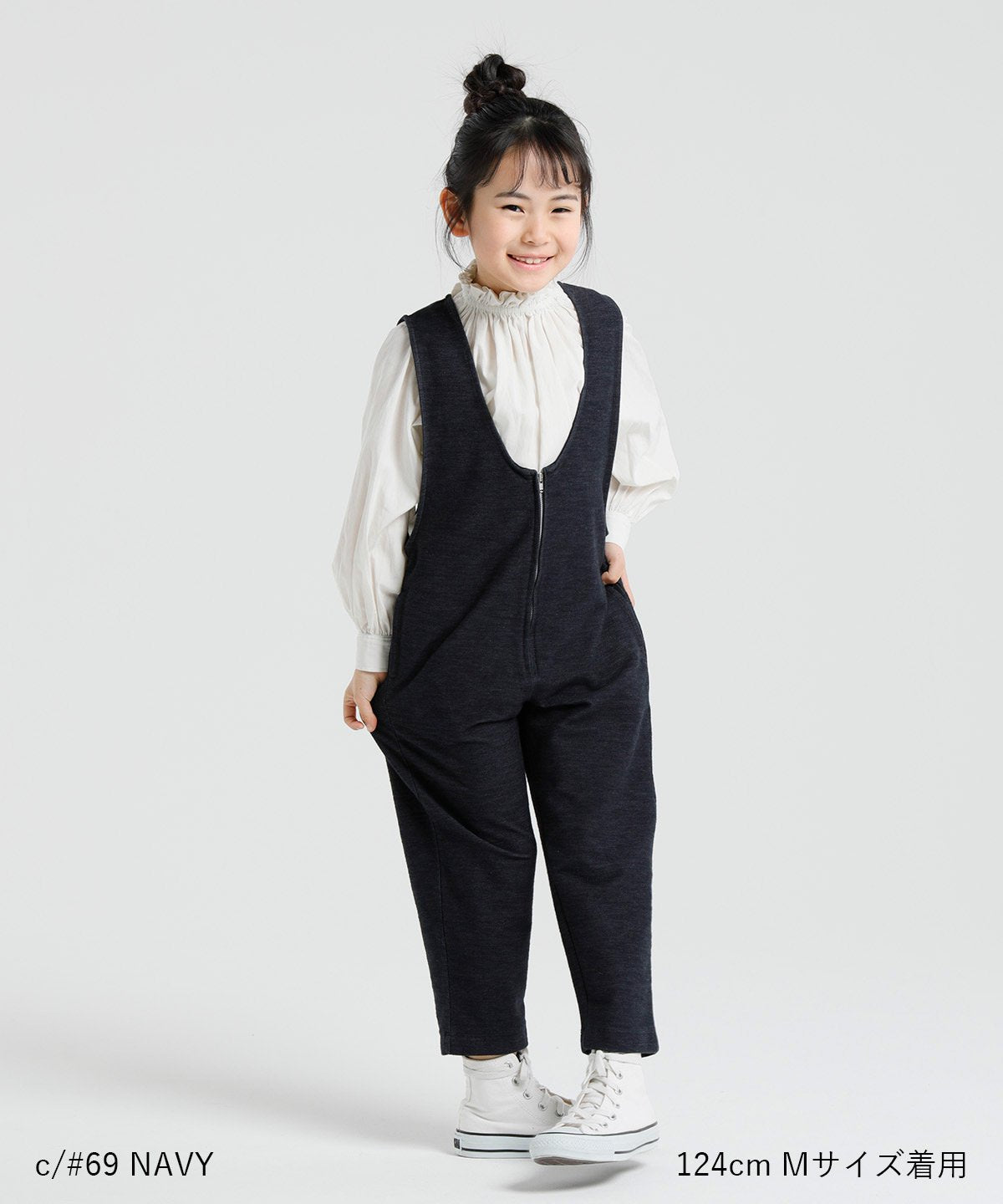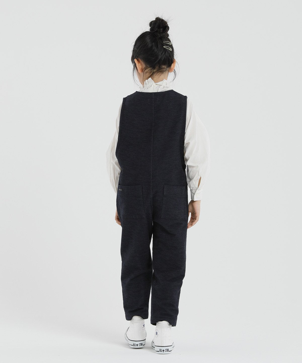 Overalls that can be worn all year round, using classic SOFT DENIM JERSEY. Although it looks like denim, the main point of this product is that it is cut and sewn. These overalls are made of this material that you will become addicted to once you wear them, and are perfect for active children as they will relieve the feeling of tightness in your stomach. Putting on and taking it off is as easy as raising and lowering the zip, so it's not difficult to use the bathroom. This item is dyed with indigo, so you can enjoy it as it changes over time. It has a design that can be worn by both children and adults.