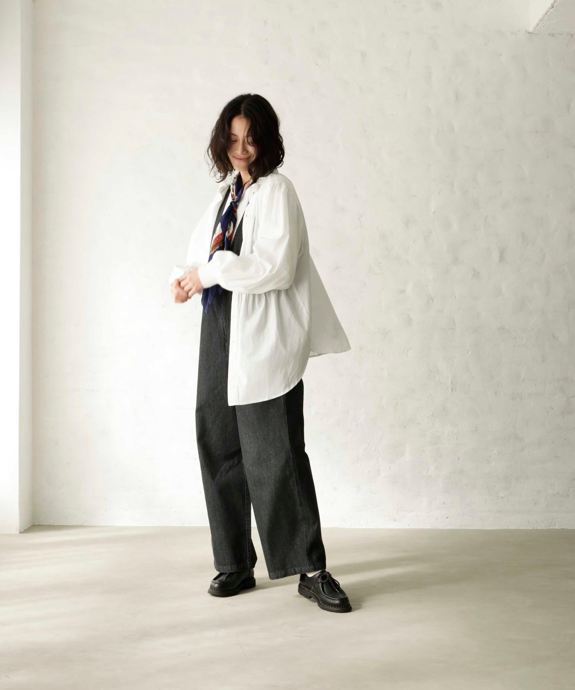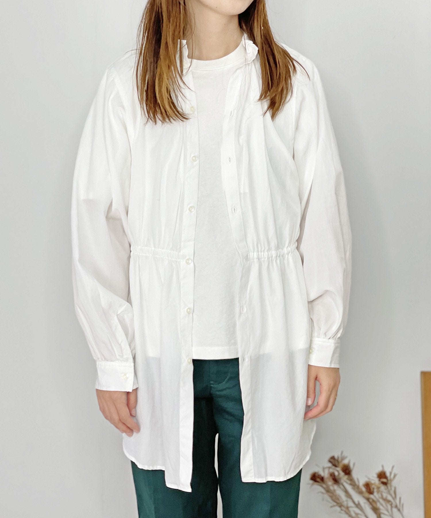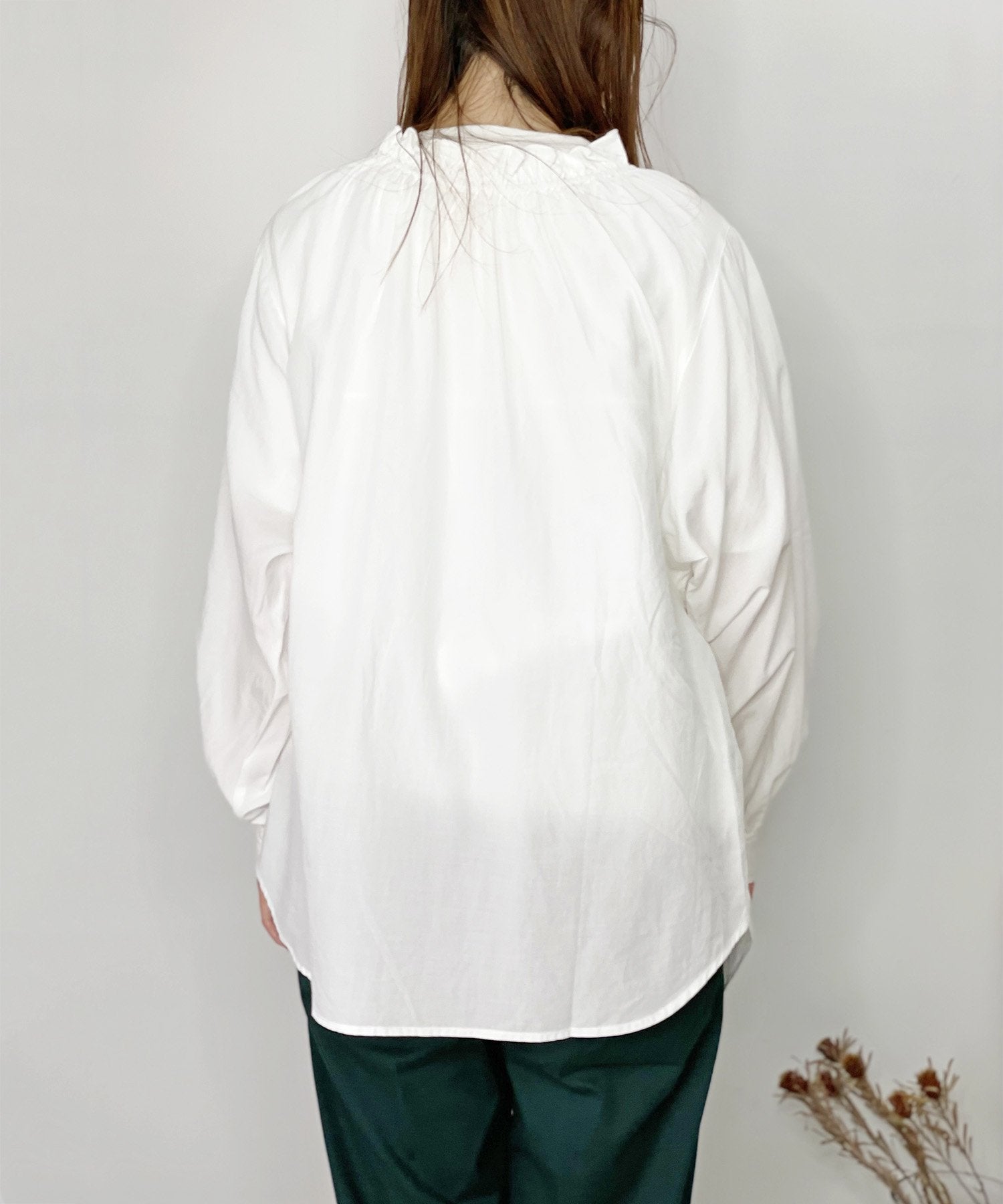■Material A blend of lyocell and cotton yarn that is natural, yet has a beautiful and moist feel. Due to the lyocell content, the generous amount of gathers does not add bulk and blends in beautifully. Lyocell, a recycled fiber, is attracting attention as a plant-based and sustainable material.