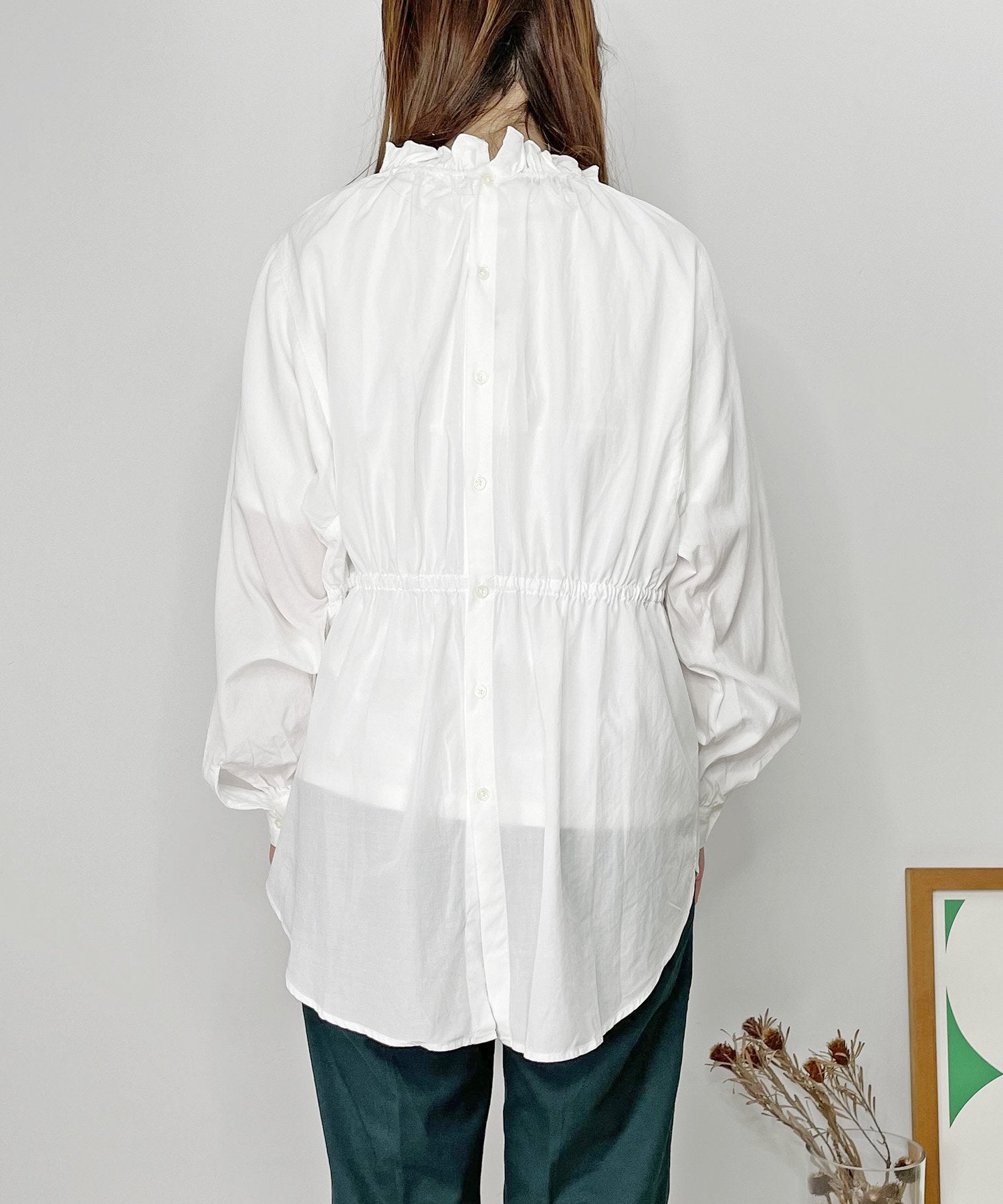 ARCH&LINE's classic 2WAY frilled blouse now available in new colors <c/#11>. The white color is easier to match and is sure to be useful all year round.