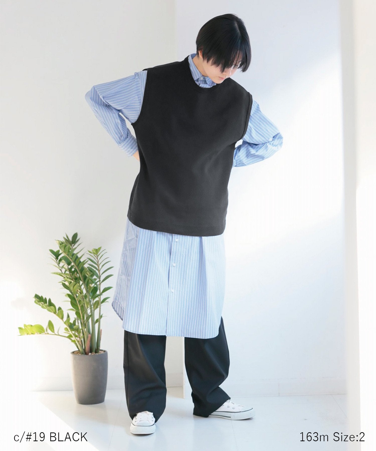 ■Styling It has a just-loose silhouette that is not too formal, so it can be worn for a wide range of purposes, from layering it with a shirt or blouse to accompany you at a ceremony, to wearing it with a T-shirt for school occasions. The adult size is an item that many people wear as work clothes.