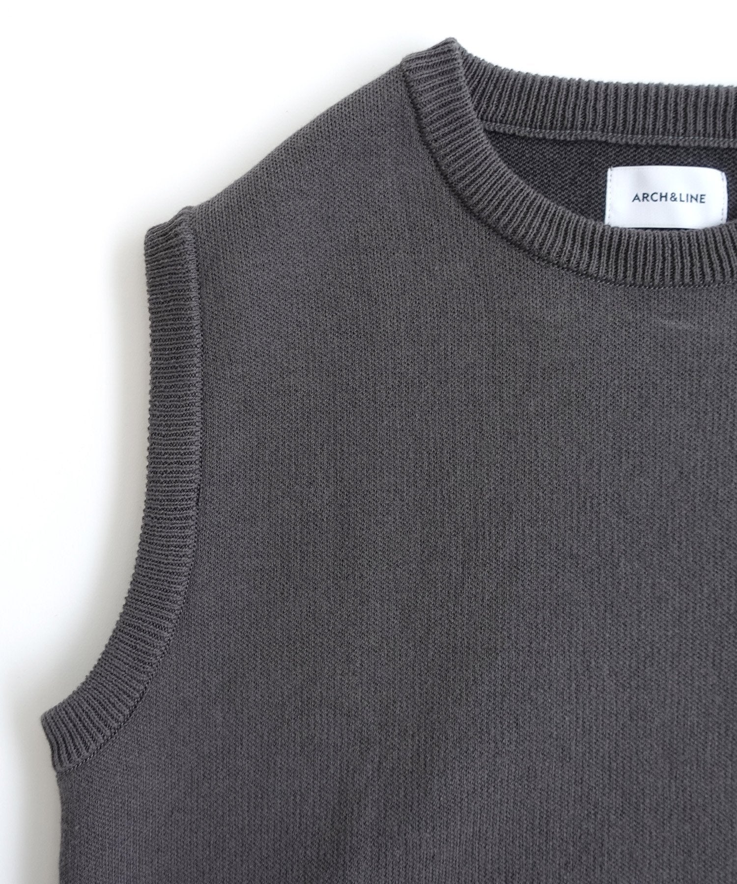 ■Details/Materials ARCH&LINE's popular cotton knit vest is now made from organic cotton. The well-established model (dimensions) remains the same. The knitting is lightly finished with the theme of being able to be worn all year round. It maintains the touch and plumpness that are the benefits of a double face. Vests are also very useful for regulating body temperature, and having one is sure to come in handy. Available in 3 colors that are easy to match with anything. You can wash it at home (hand washing recommended. If using a washing machine, put it in a laundry net for a shorter wash time/gentle spin/dry flat).