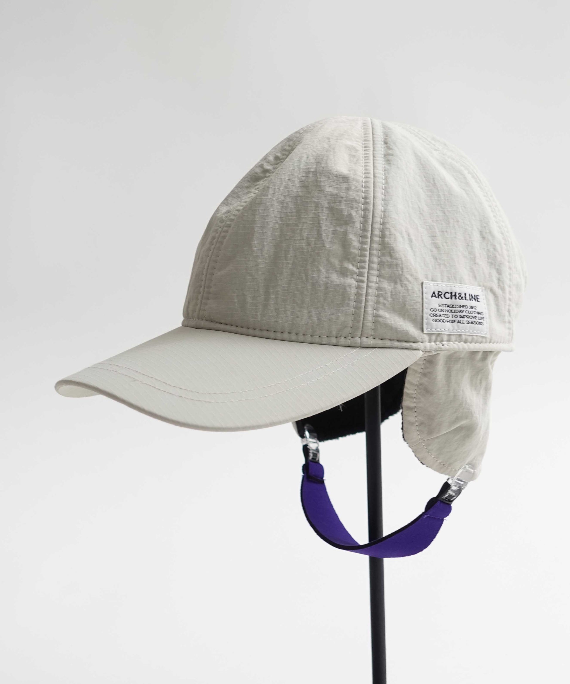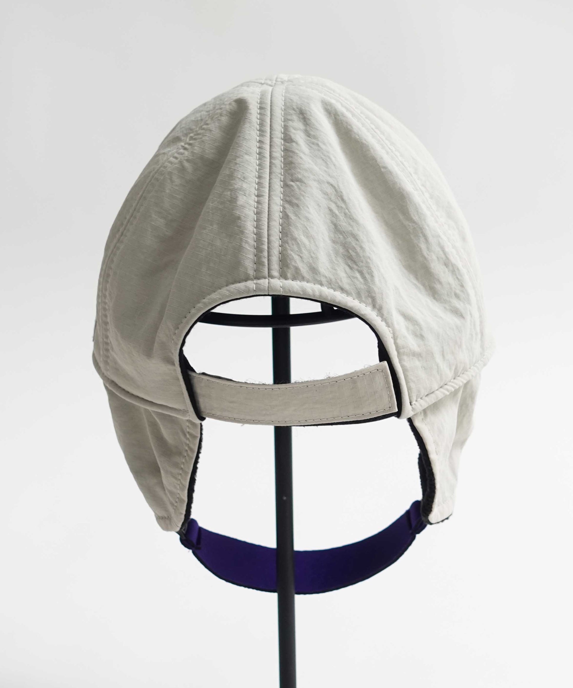リサイクルナイロンを使用した新型のハイキングキャップ。リップストップ素材にフリース生地を裏打ちしていてあたたか。ツバの芯は硬めの設定。耳当て部分に取り外し可能なあご紐パーツが付いており、スタイリングのポイントになりそう。弱撥水加工付き。