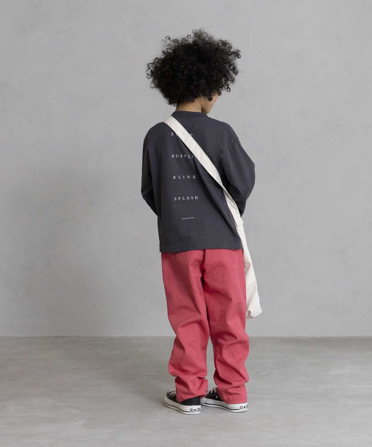 ジャストルーズなサイズ感の長袖TEE。 長くご愛用いただけるように、タコバインダー始末にしています。 動きを妨げないよう、アームホールをやや大きめに設定。 左裾に付けたピスネームも効いています。 環境負荷を考えると、長袖ひとつとっても人の目線を気にして「春用の色」「秋用の色」と買い揃えることに疑問を感じます。 一日でも長く着まわしていただけるよう、一年中着やすい色展開に。