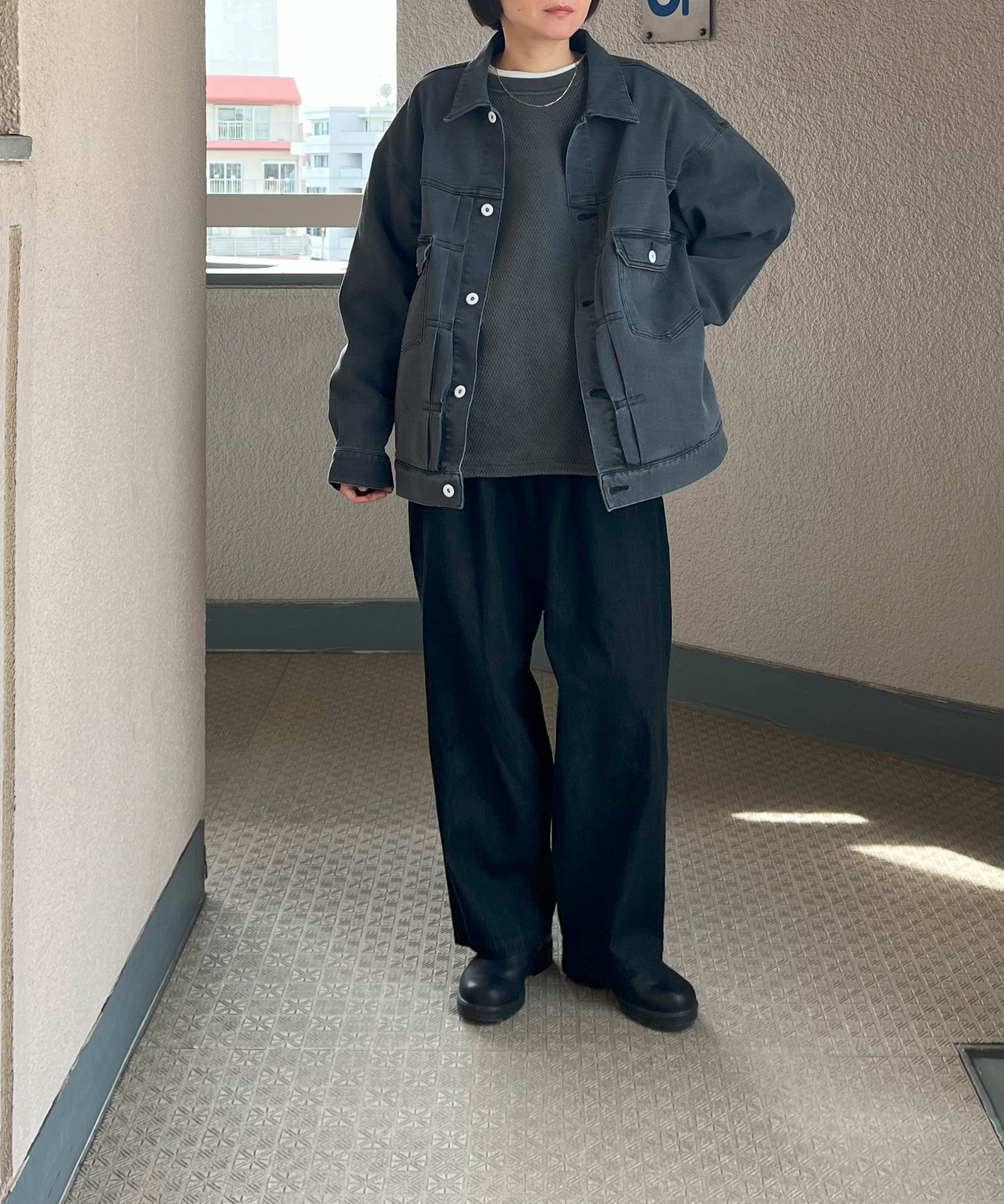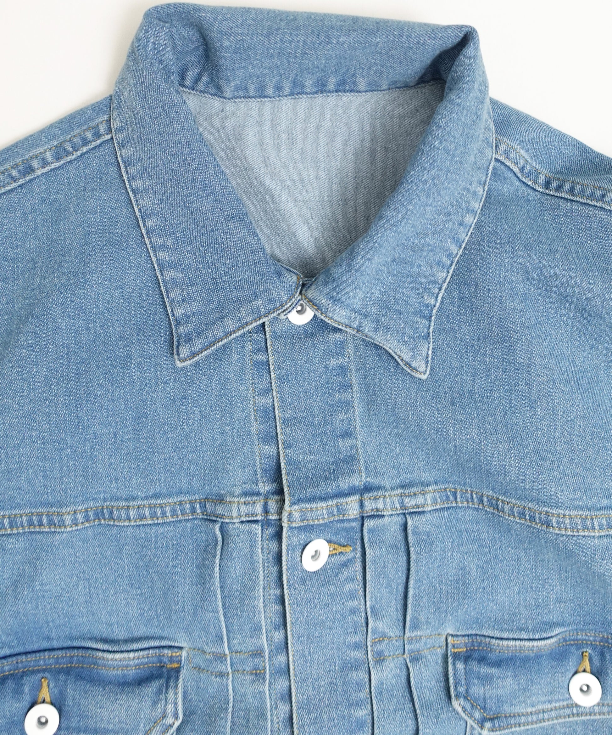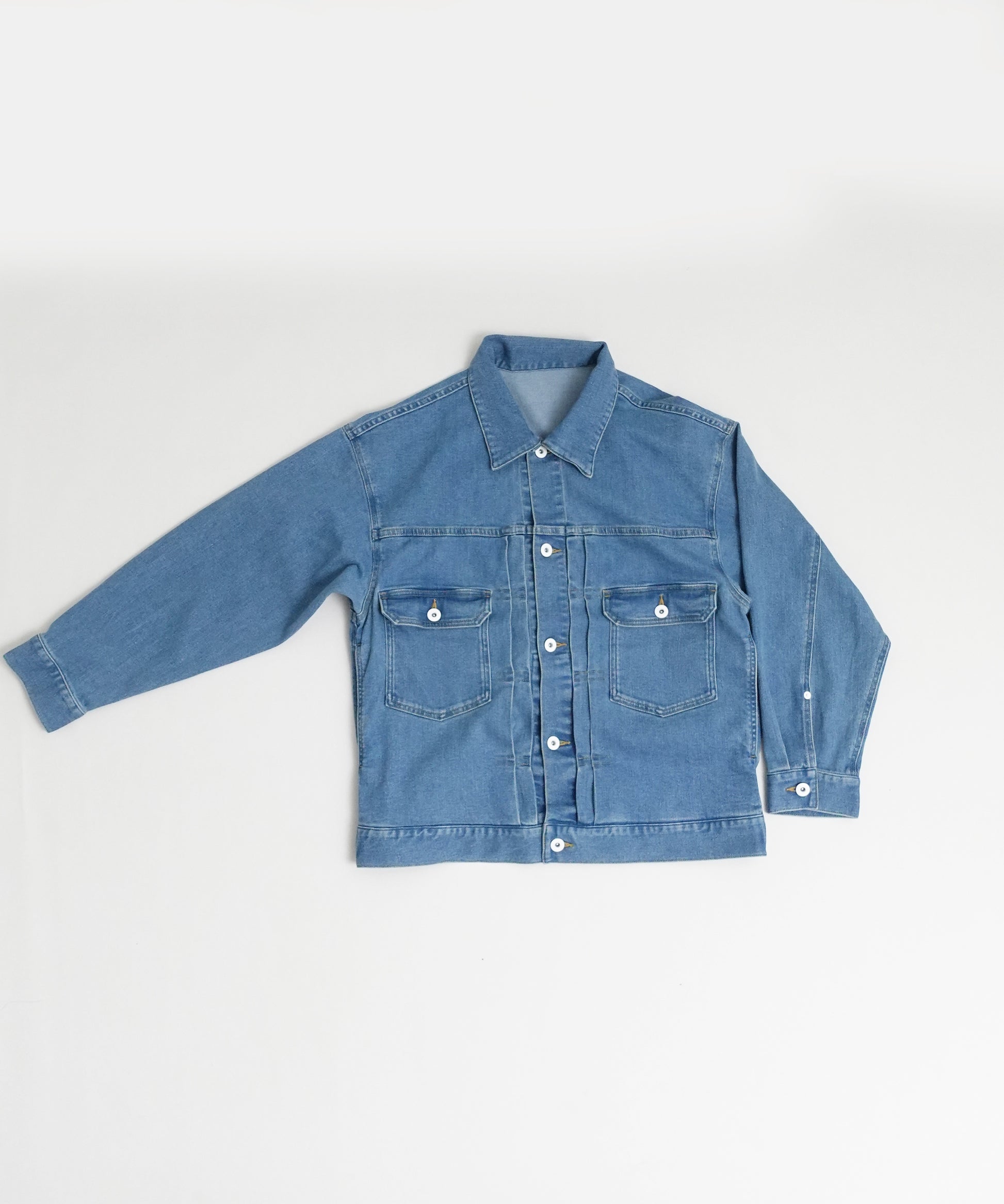 リサイクルデニムを使用したデニムジャケット。両脇にポケット付き。同素材のリサイクルデニムパンツと合わせたスタイリングもおすすめ。ストレッチ性もアップし履き心地が柔らかくなりました。