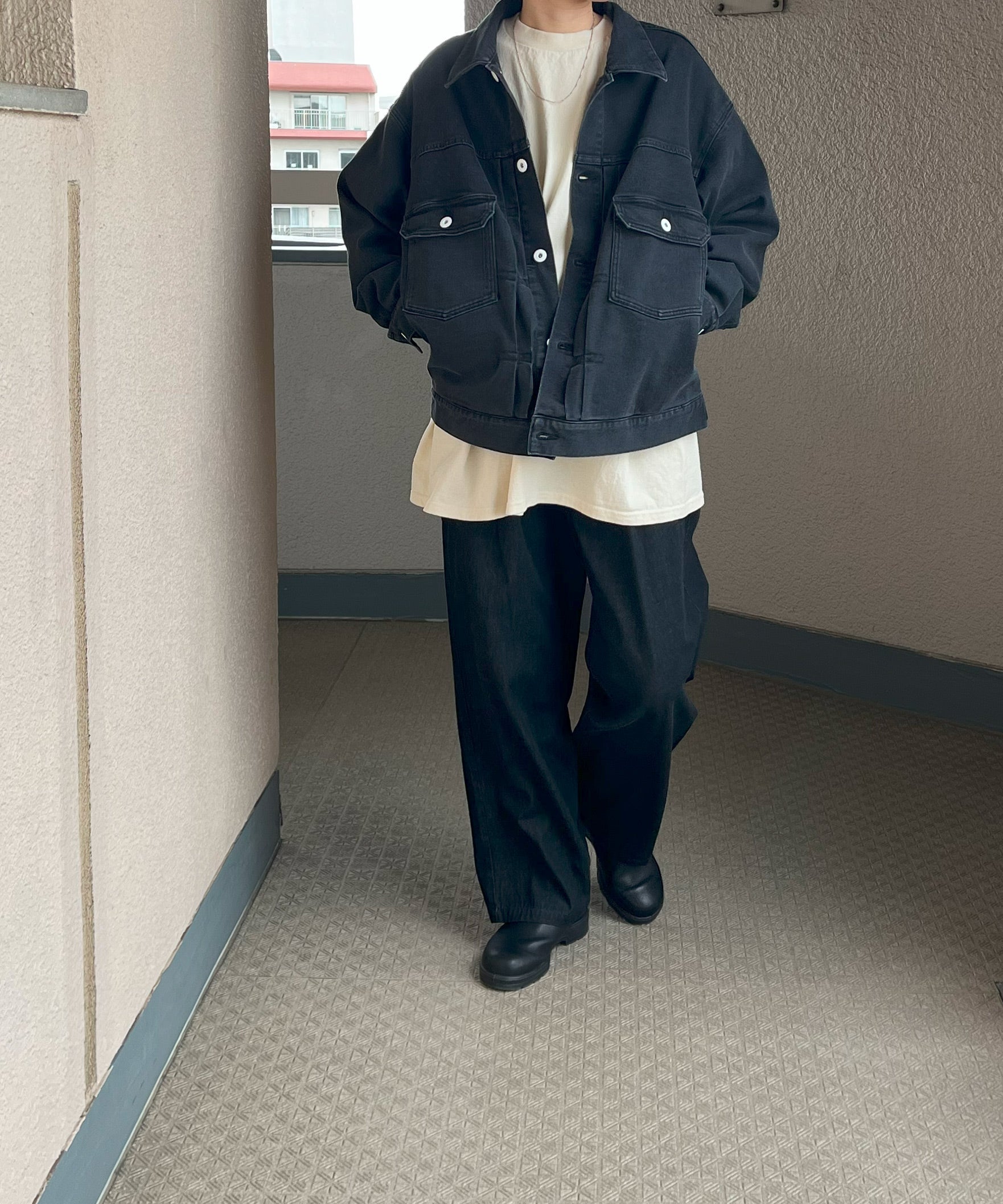 加工だけでなく、フロントのタック釦やリベットのひとつを白塗装するなど、細部にまで工夫を盛り込んだ一枚です。