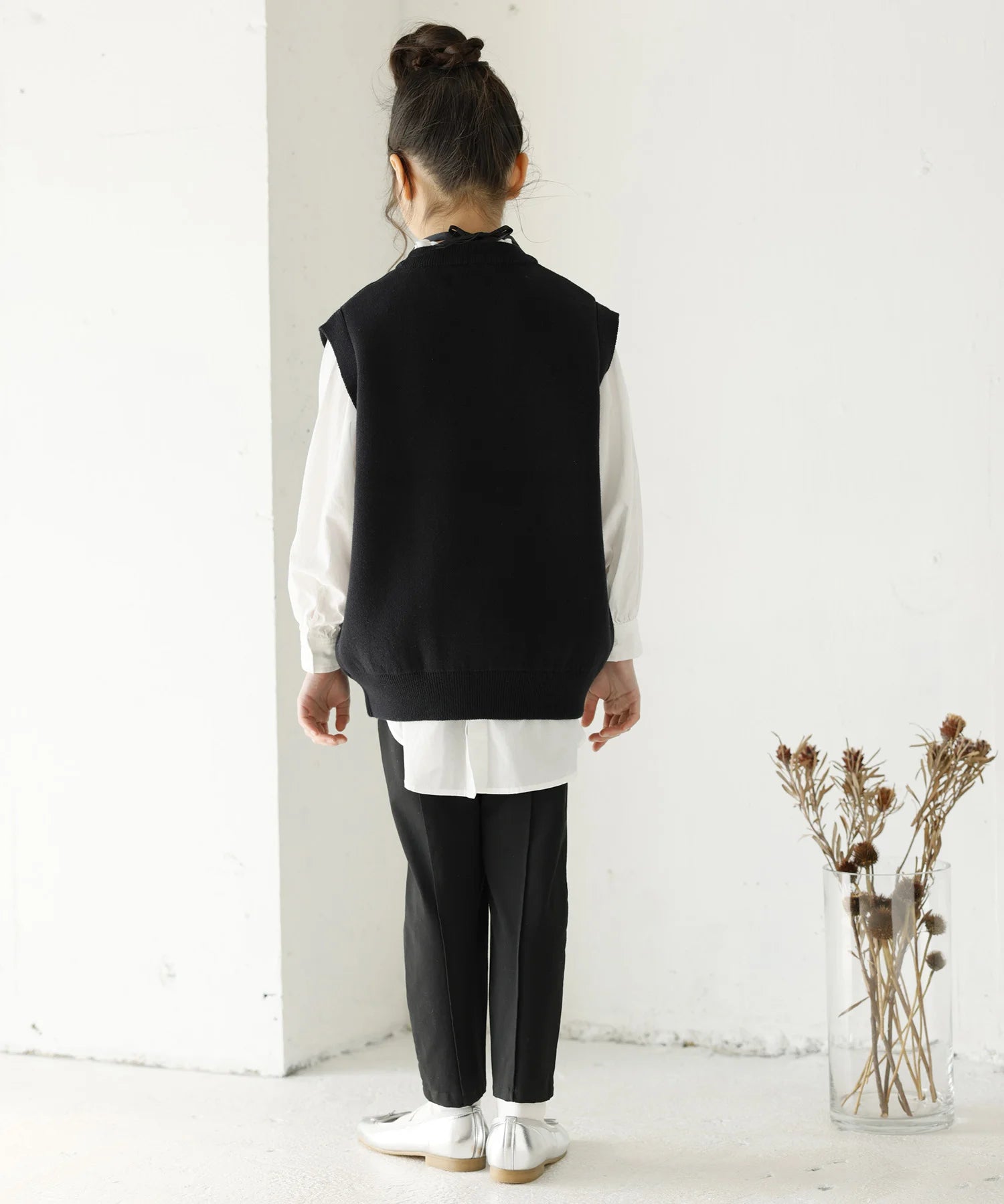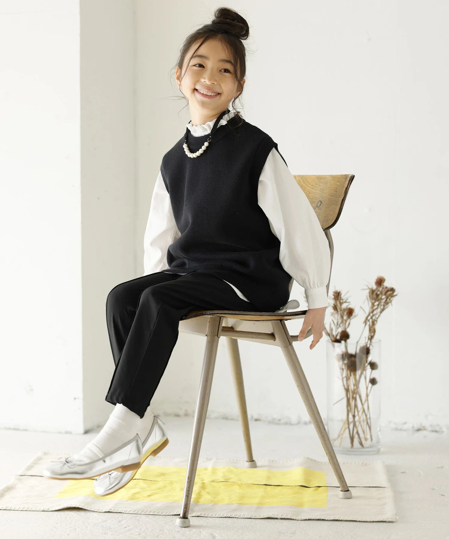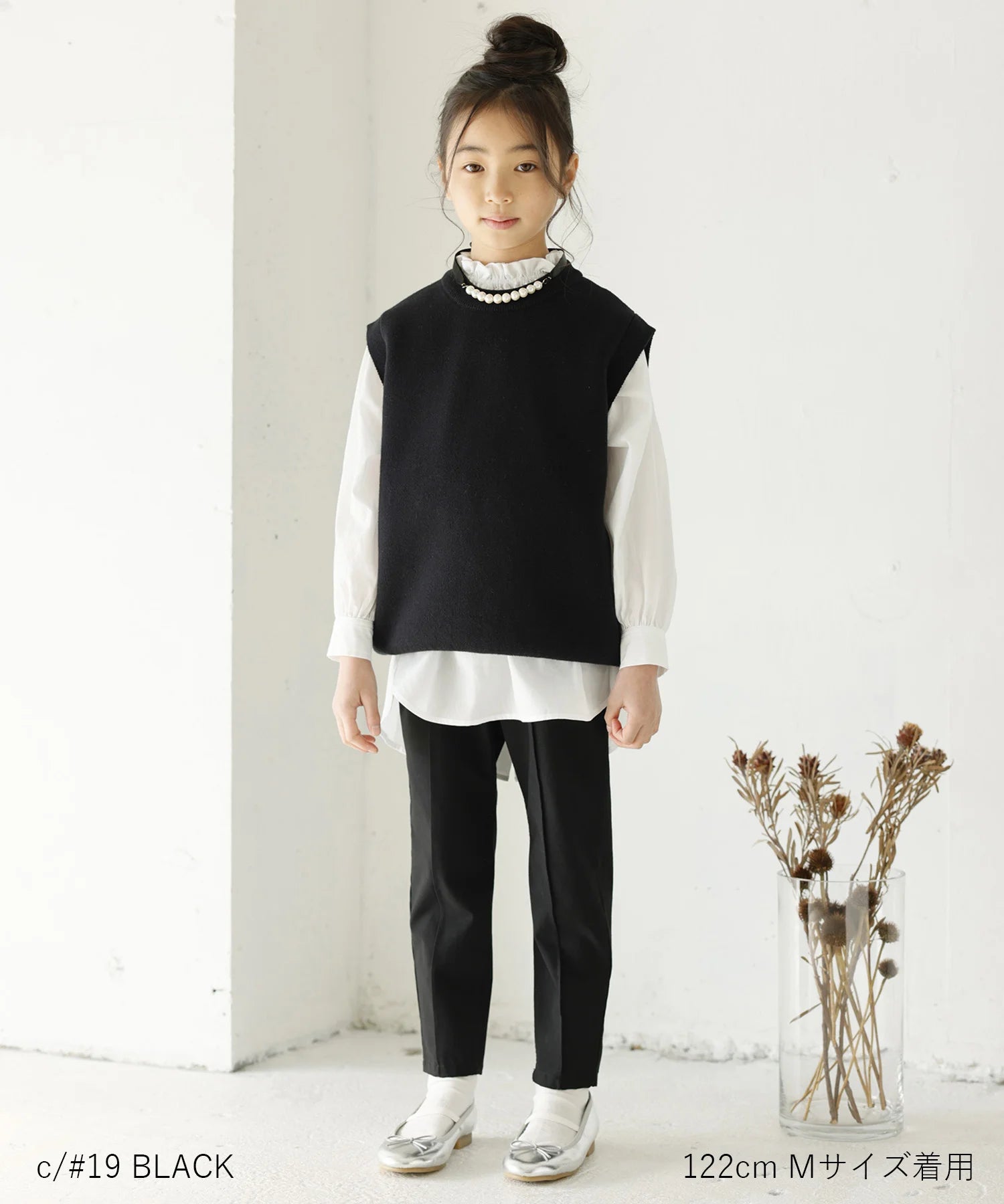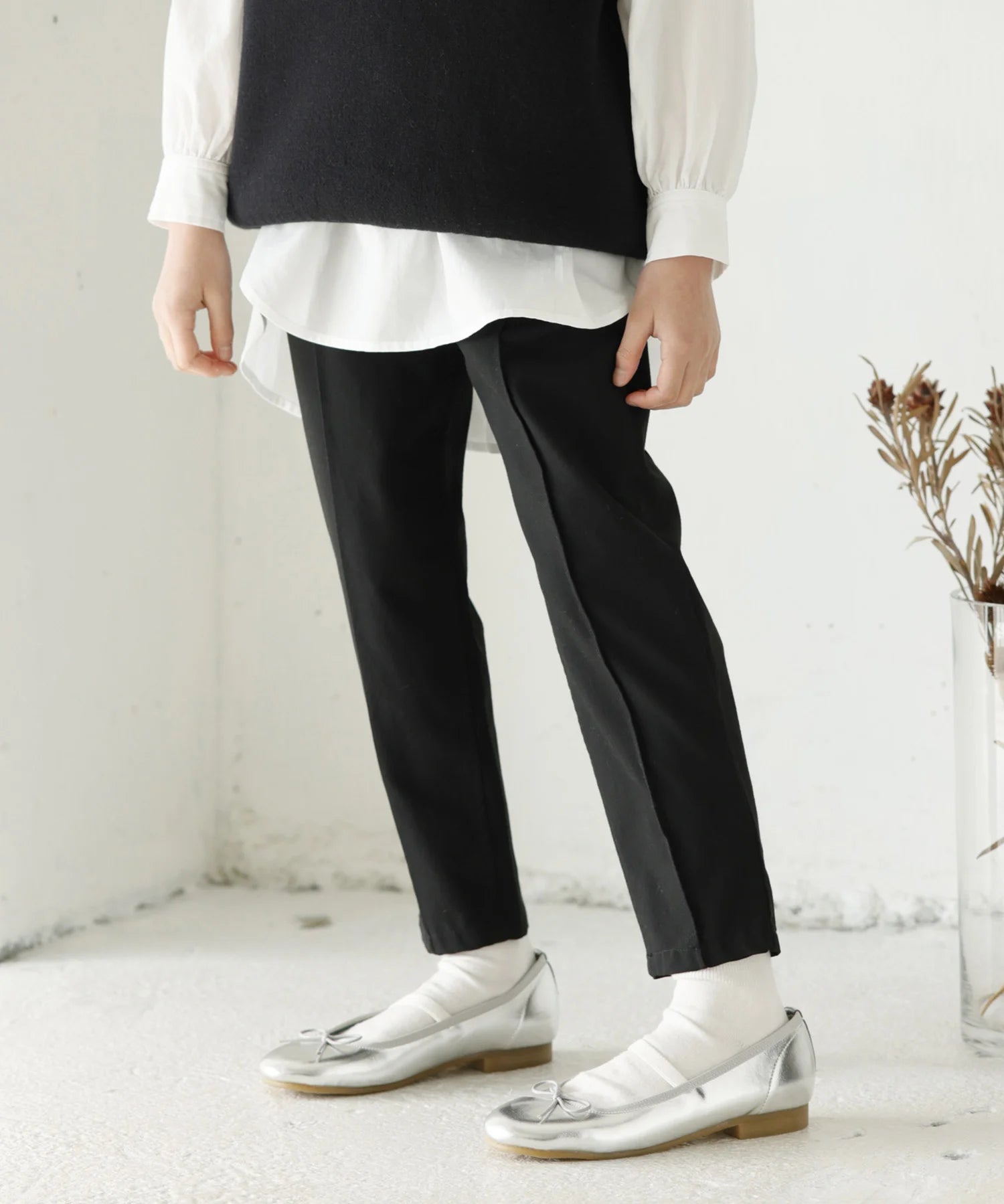 ■スタイリング 発表会や結婚式などのシーンに、シャツやベストを合わせたスタイル用として人気のある一本ですが、フーディや長袖TEEなどとのカジュアル合わせもとても可愛くまとまります。スッキリとしたシルエットなので、カジュアルアイテムの"ハズシ"として。ワンピースなど丈の長いアイテムの下のボトムとしてなどオールマイティにご利用いただけます。