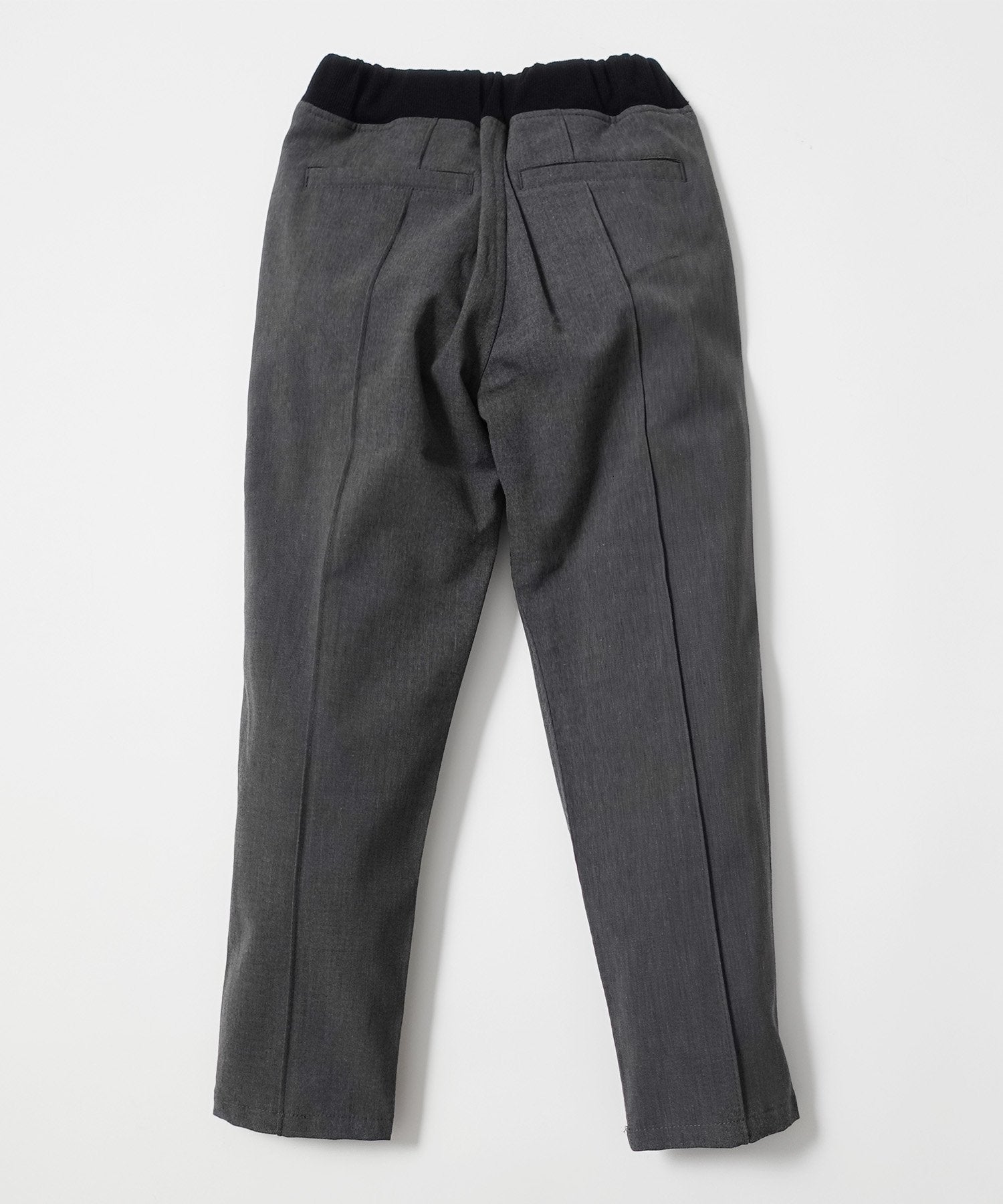 ■ディテール センタークリース入りで、式典から日常まで幅広く使えるキレイ目なイージーパンツ。スーツのボトムとしても使用しているパターン(型紙)をアレンジしたテーパード型の為、とてもスッキリとしたラインでバランスの取りやすい一着です。左脇にはゴム通し口があり、お好みや成長に合わせてゴムの入れ替えで調整していただけます(1サイズ)。<2サイズと3サイズはウエストにスピンドルを通してあり、調整が可能です。>ウエストはリブの仕様になっており、小さなお子様でも着脱しやすく仕上げています。