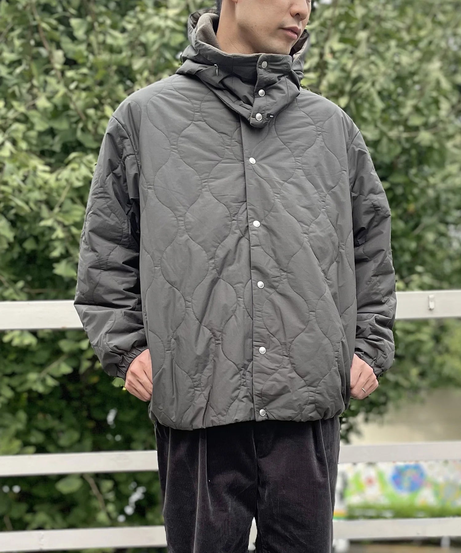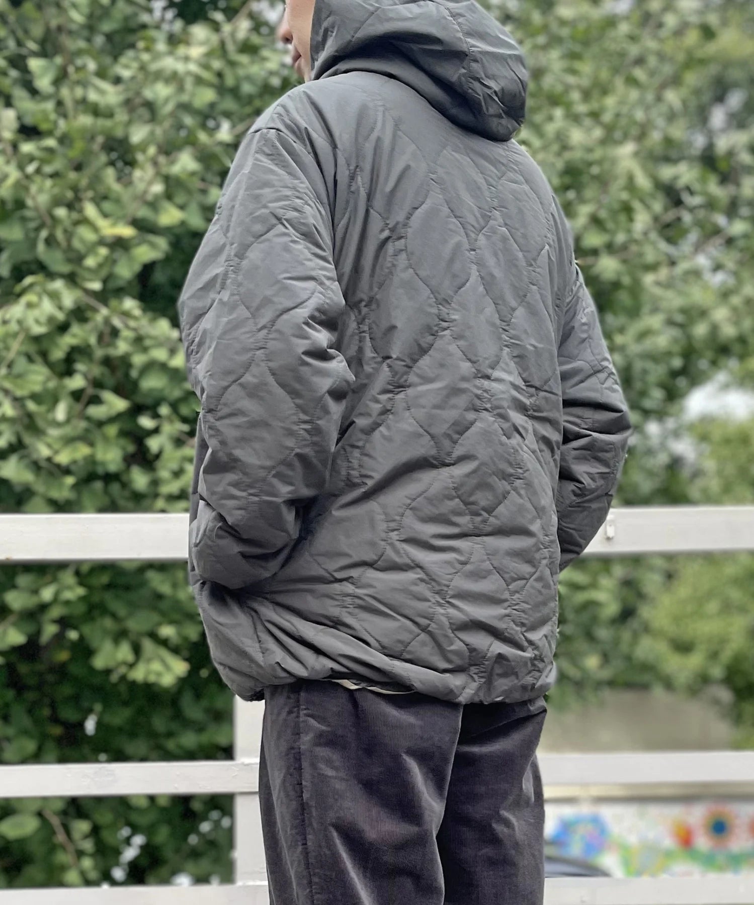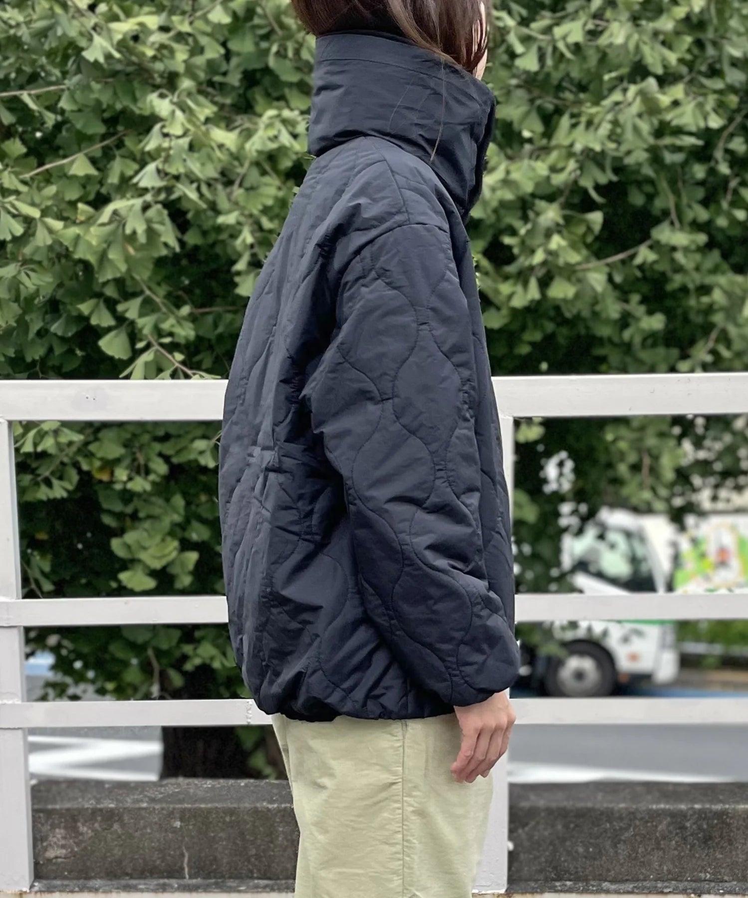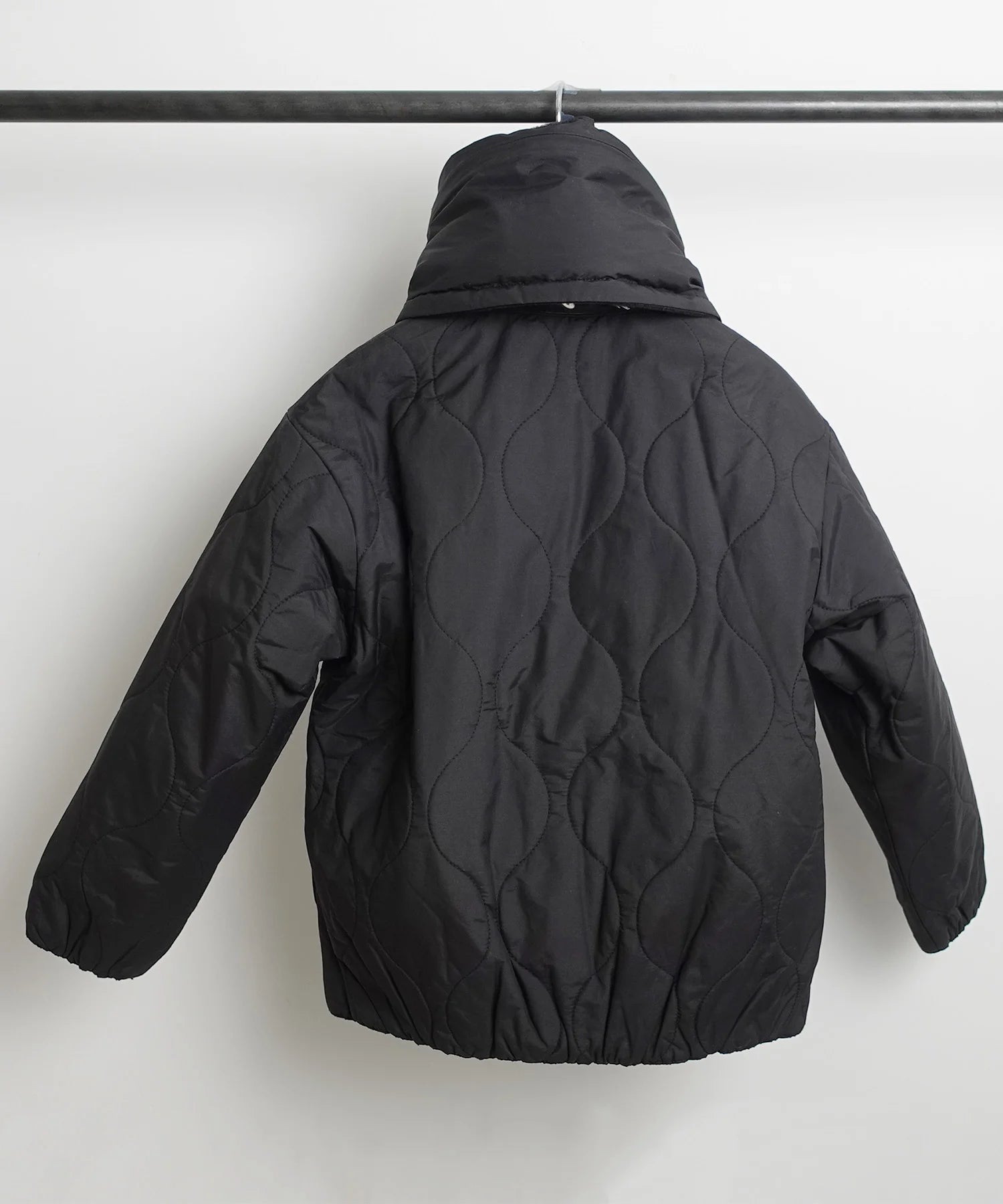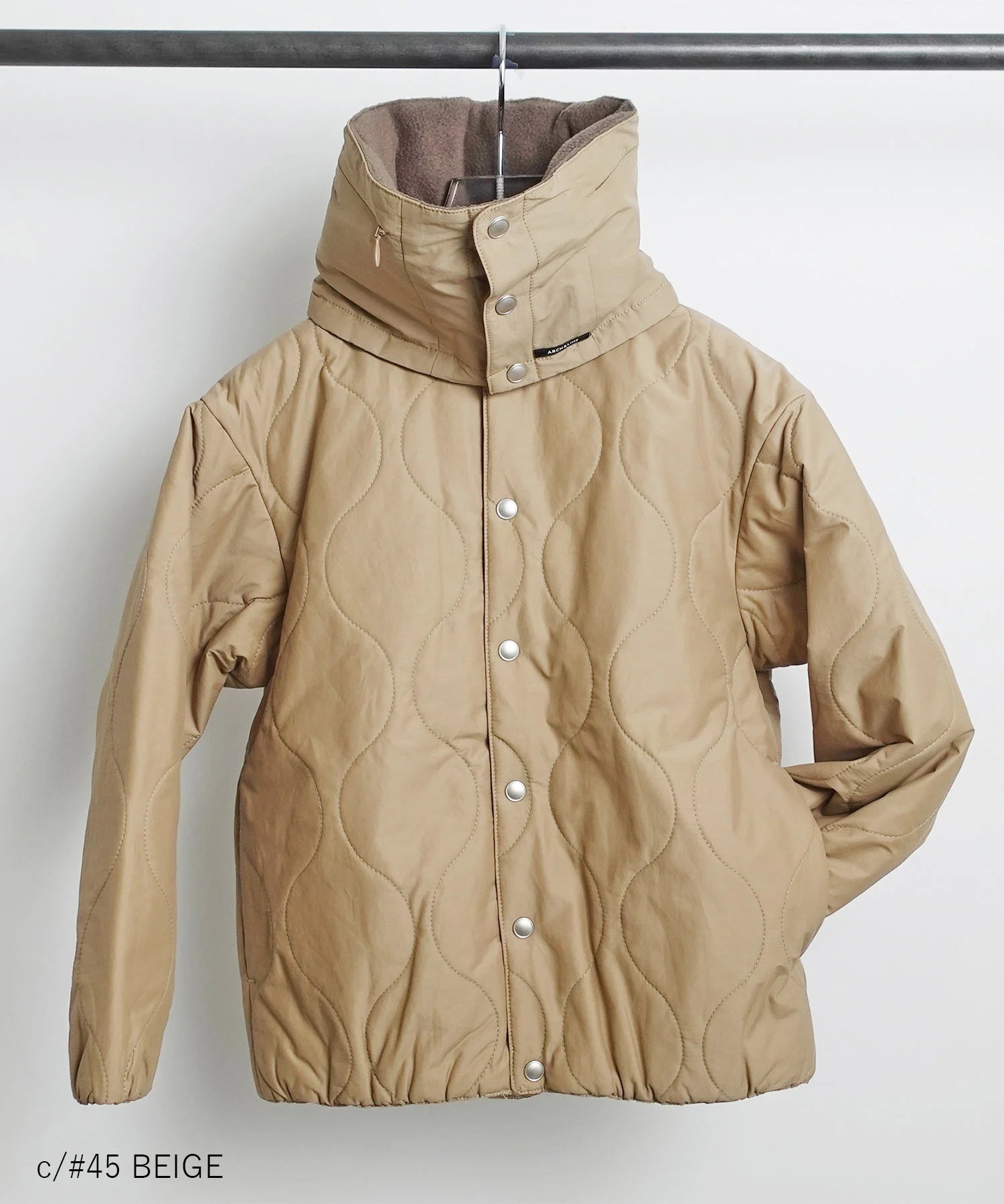■ディテール <本体> リバーシブル仕様のブルゾン。スヌーディがセットになっています。 ・表面はヘチマキルティング加工、裏面はキルティング加工無しのシンプルな仕様 ・アウターの下にインナーコートとしてもお召しいただけるよう、比較的スッキリとしたシルエットに。 ・薄すぎず暑過ぎない中綿分量で、真夏を除く一年の半分以上はお召しいいただけます。 ・両脇にポケット付き。 ・表地はマットな質感の為、スヌーディを外すとフォーマルにもお使いいただけます。 ・袖口に入れたゴムにより風が入り込むのを防ぎます。