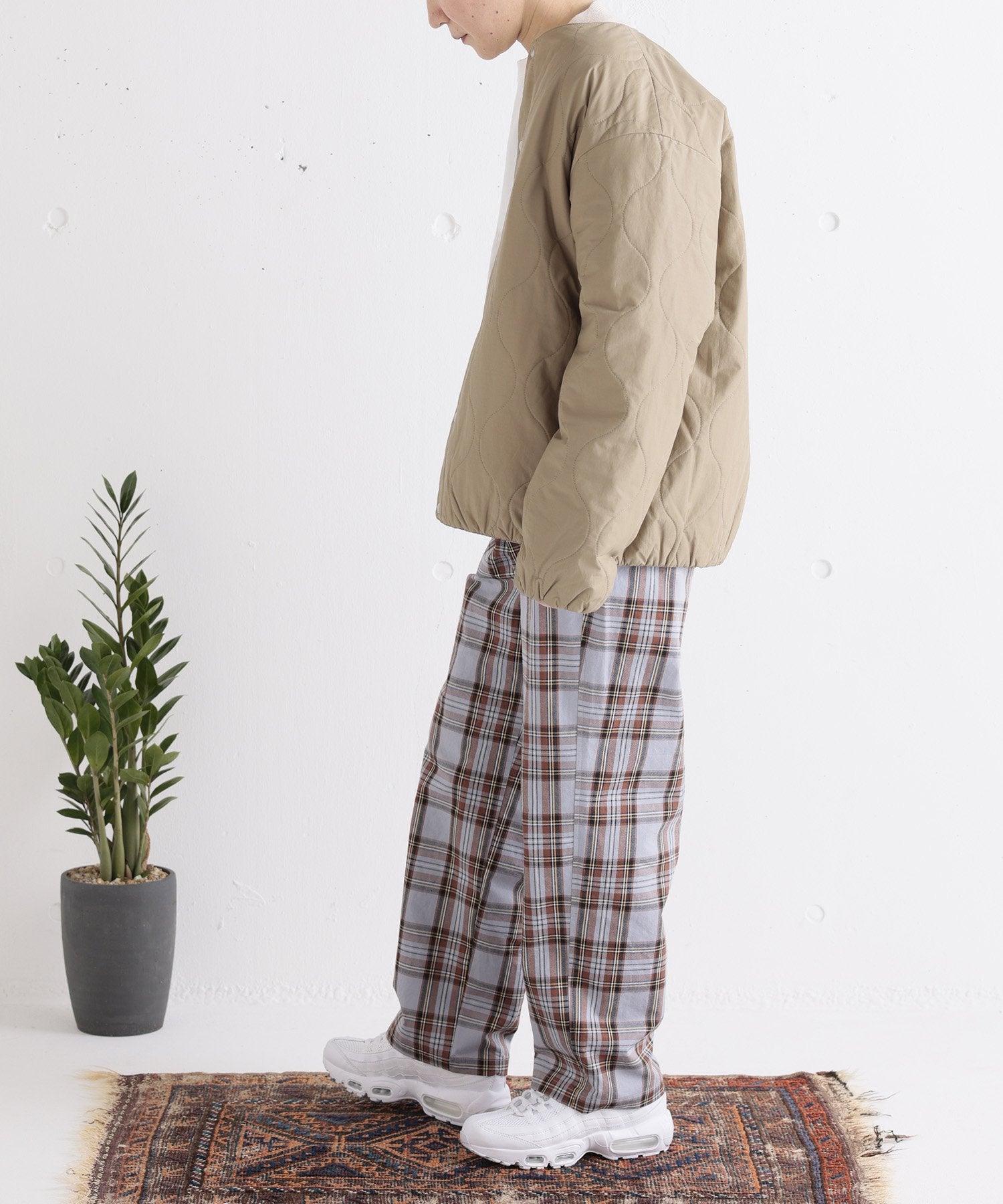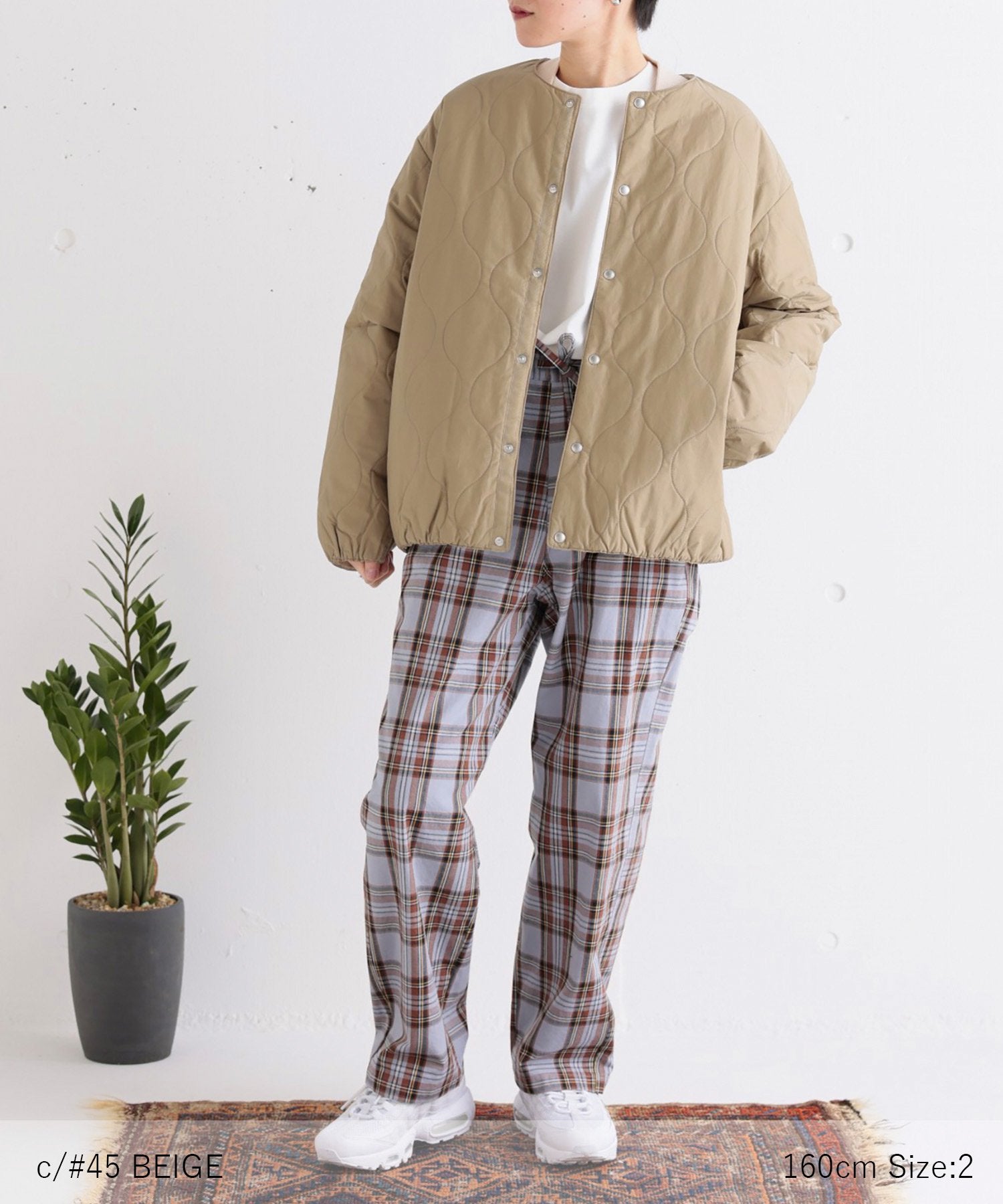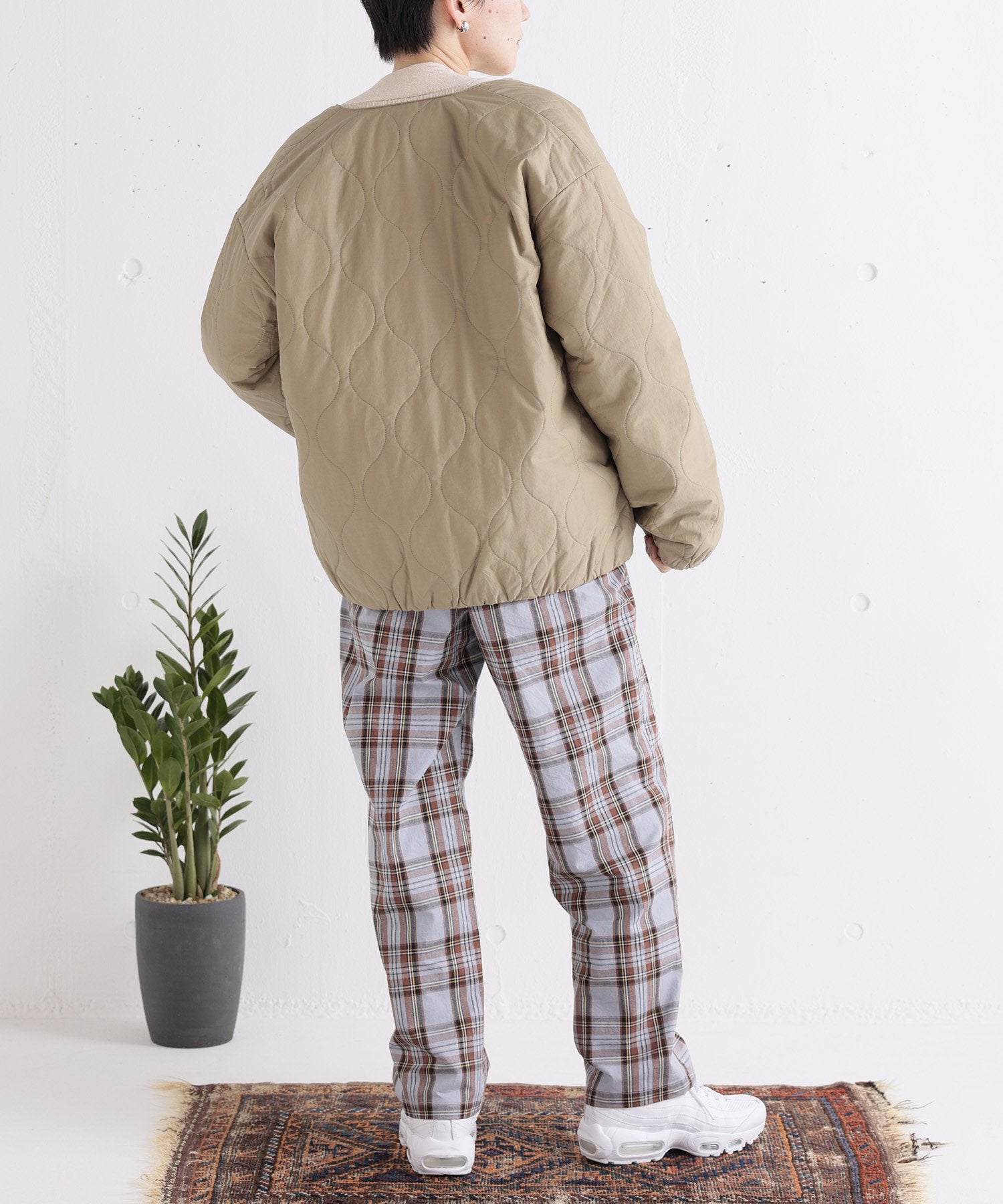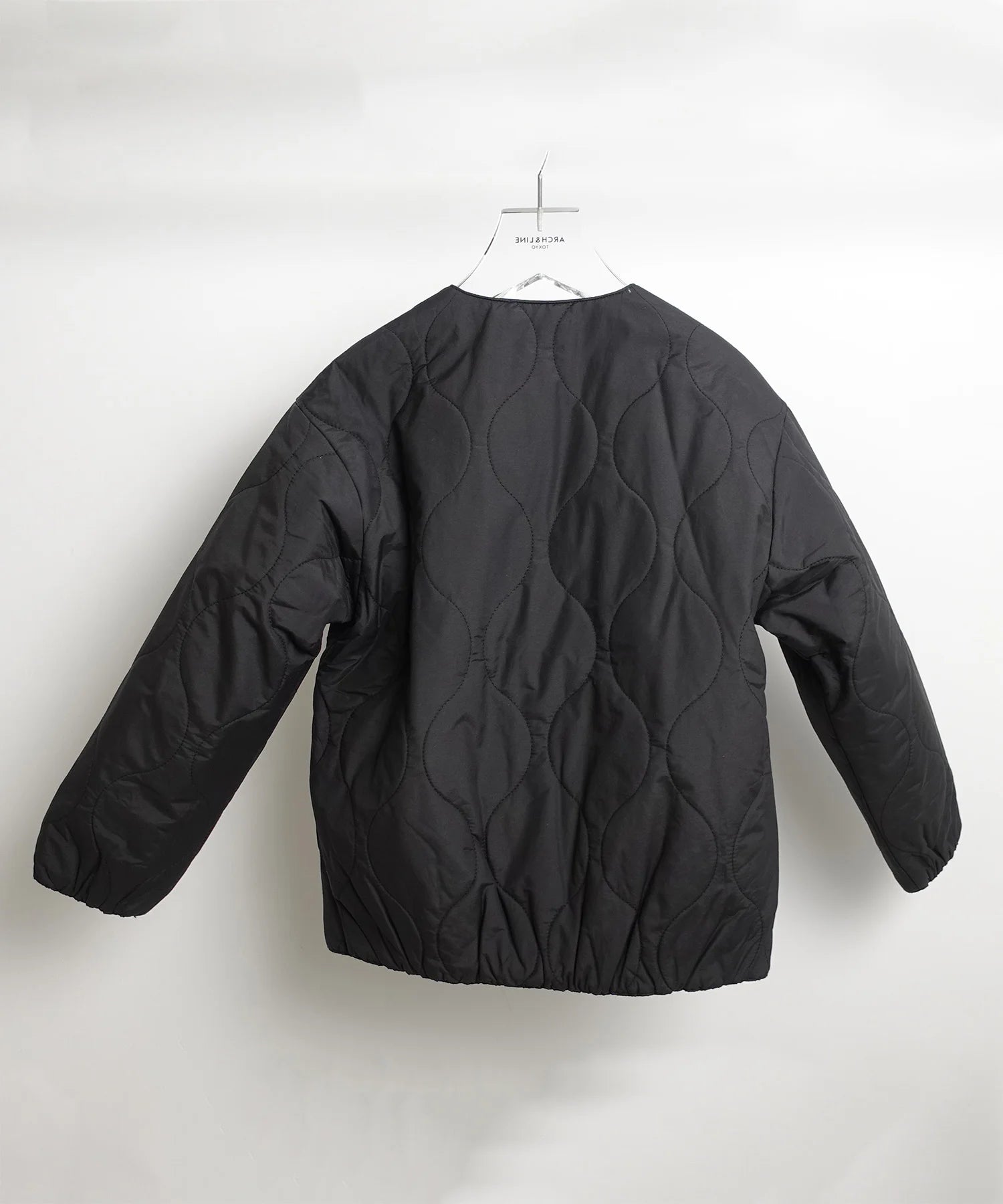 ■ディテール <本体> リバーシブル仕様のブルゾン。スヌーディがセットになっています。 ・表面はヘチマキルティング加工、裏面はキルティング加工無しのシンプルな仕様 ・アウターの下にインナーコートとしてもお召しいただけるよう、比較的スッキリとしたシルエットに。 ・薄すぎず暑過ぎない中綿分量で、真夏を除く一年の半分以上はお召しいいただけます。 ・両脇にポケット付き。 ・表地はマットな質感の為、スヌーディを外すとフォーマルにもお使いいただけます。 ・袖口に入れたゴムにより風が入り込むのを防ぎます。