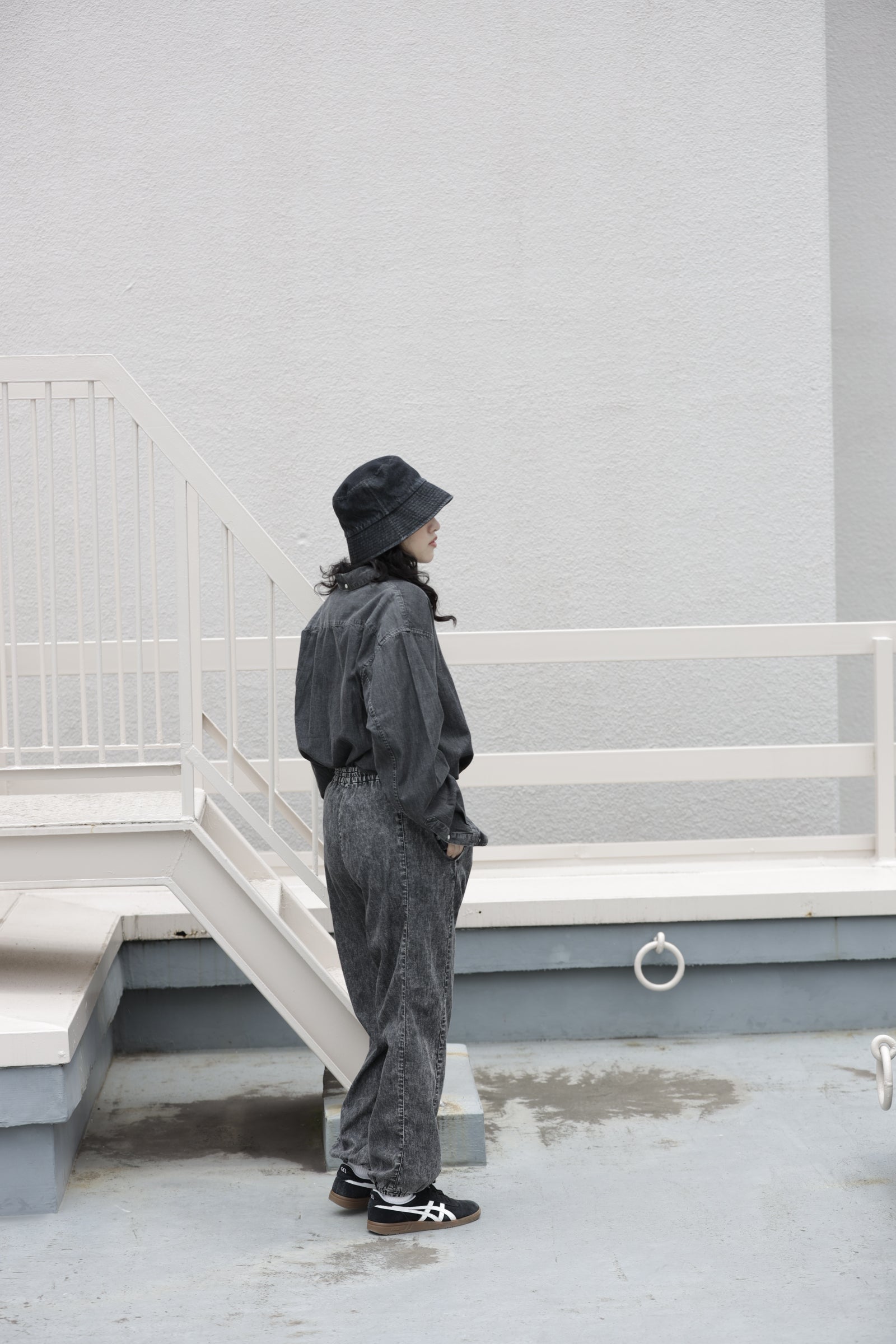 「ホワイトのハットは生成が多く、ほっこりしてしまう。ブラックのハットは山ほどあるけれど、真夏には重い。今回見つけた生地は最適!また、ブラックデニム生地はなかなか無いので希少性が高い!自信作です!」