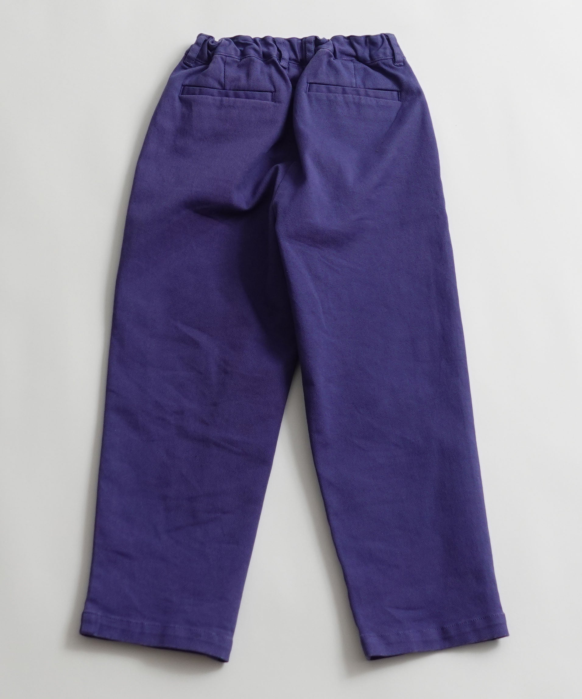 人気のクルーパンツのカラータイプが登場。ウエストのタックでキレイめな印象を持たせ、裾にむかってテーパードをかけたスッキリとした仕上り。ピッタリしたものが苦手という方に人気の形です。オケージョンにも普段にも大活躍な一本です。オリジナルの製品染めがニュアンスを出しています。
