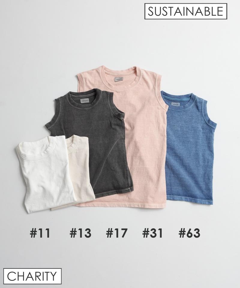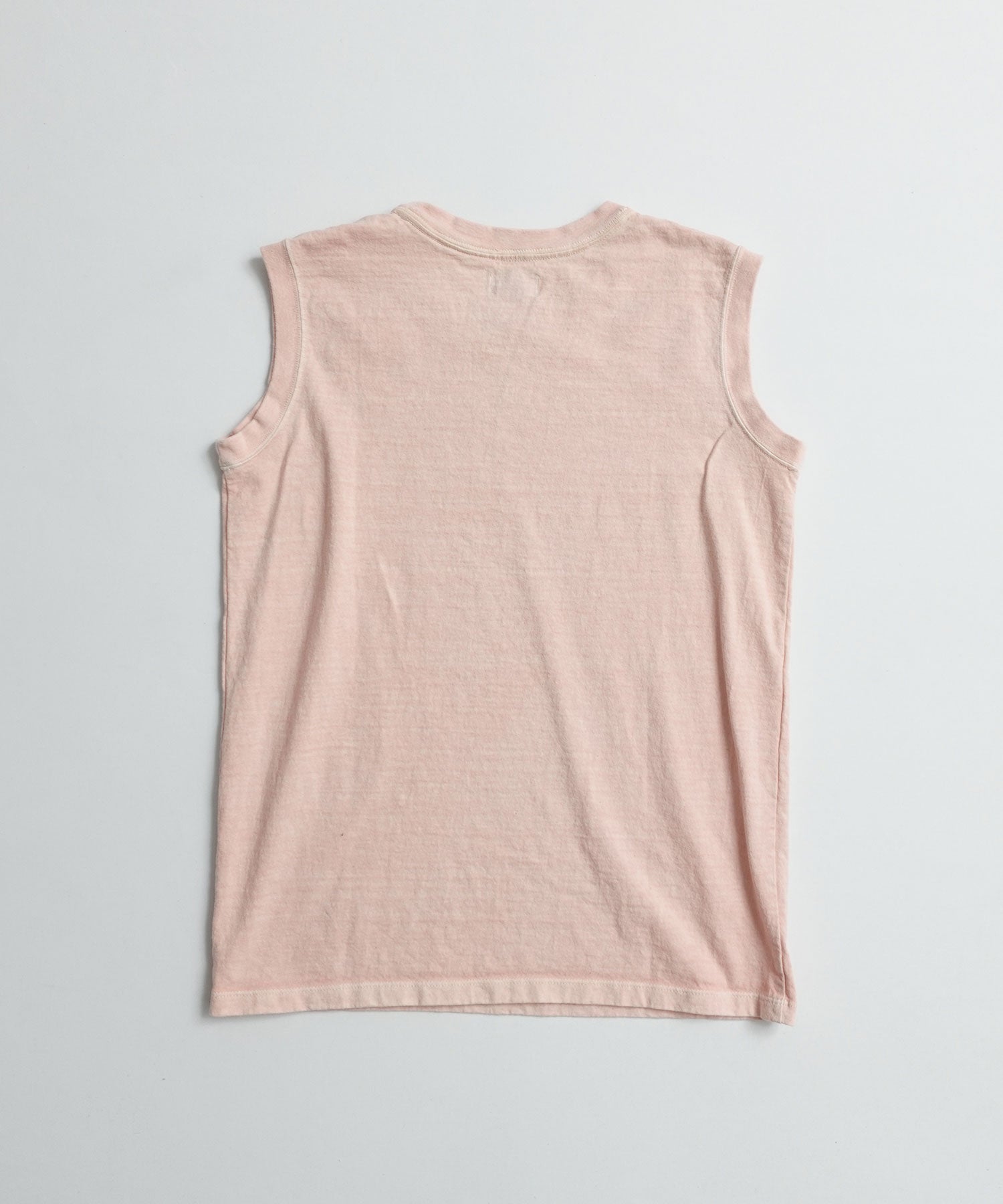 製品染めのタンクトップ。裁断クズなどを積極的に二次利用している日本の工場さんで生産していただきます。