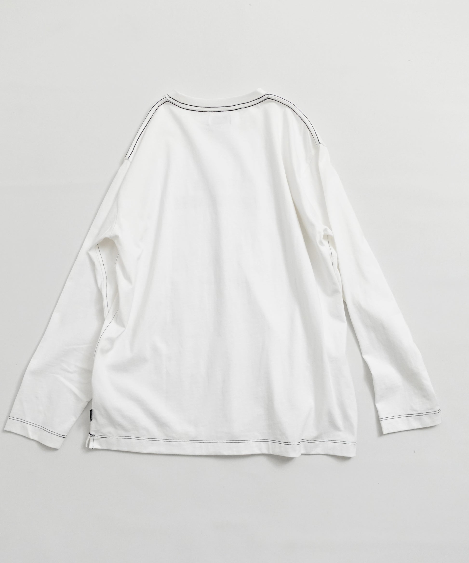 やや薄手で長い季節お召しいただきやすいオーガニックコットン天竺TEE。ステッチ配色が効いています。袖口はリブ付きでお子様ご自身でも腕まくりしやすくなっています。