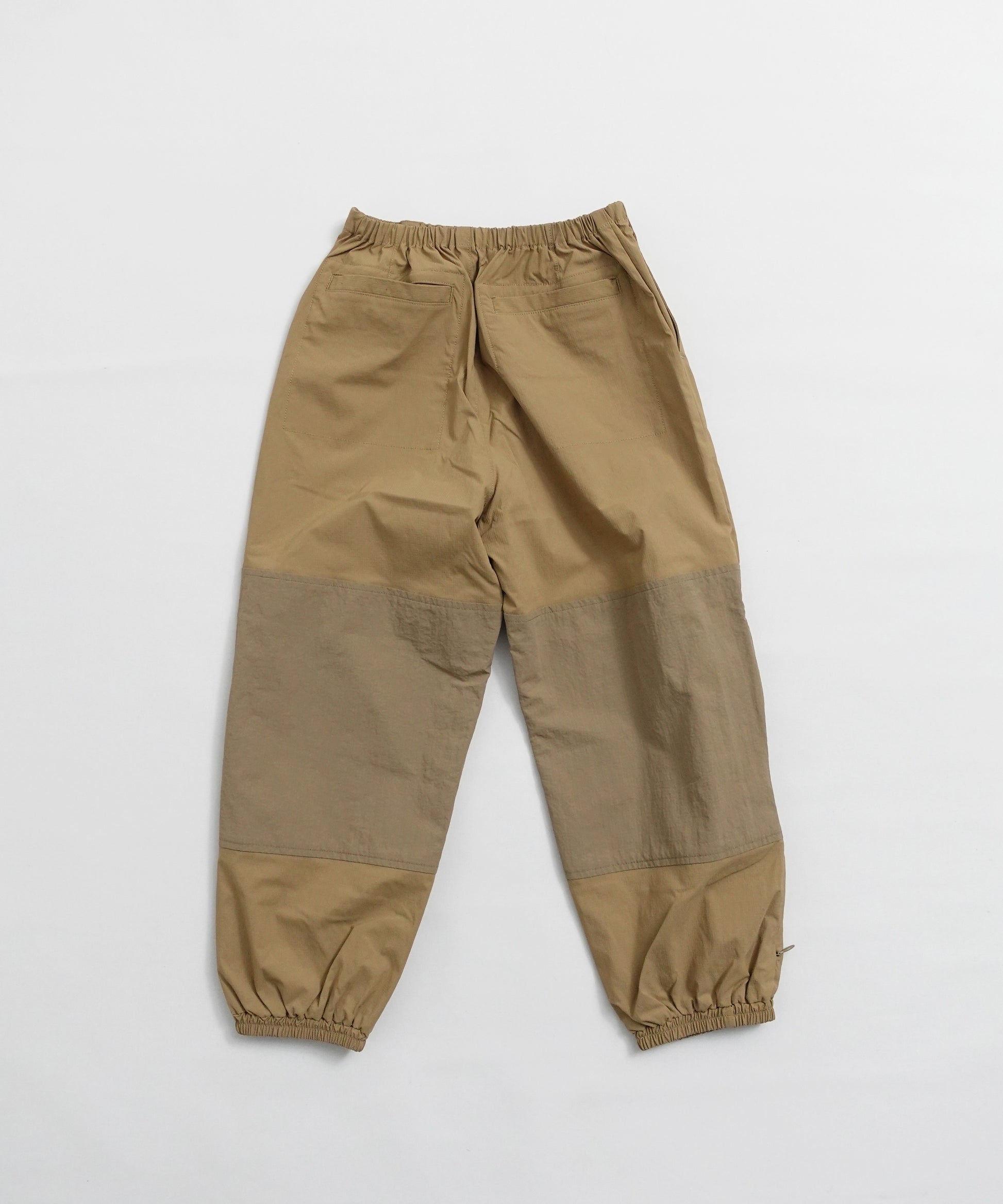 天然ライクなリサイクルナイロンを使用したアラジンパンツ。二種のリップストップを使った切替が存在感があり。フォルムも綺麗に出ます。両脇のファスナーを下げるとメッシュが出て来る仕様/脇ポケット、後ろにもポケットあり/フロント左側にはDカン付き。アラジンパンツはダンスを習っているキッズに特に人気です。合わせやすい3色展開。