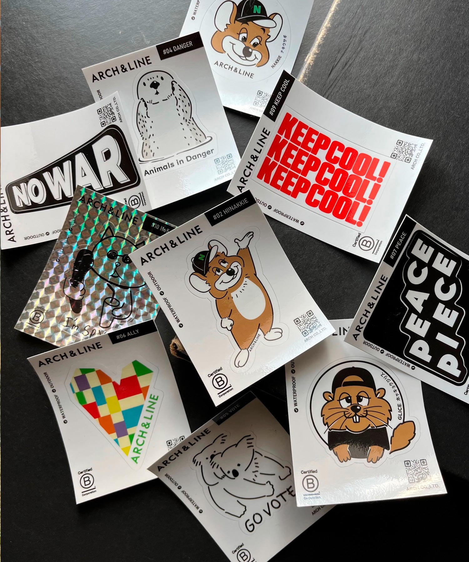 ステッカーが初登場!Tシャツにプリントしているグラフィックの中でも特に人気の高いものを厳選しステッカーにしました。