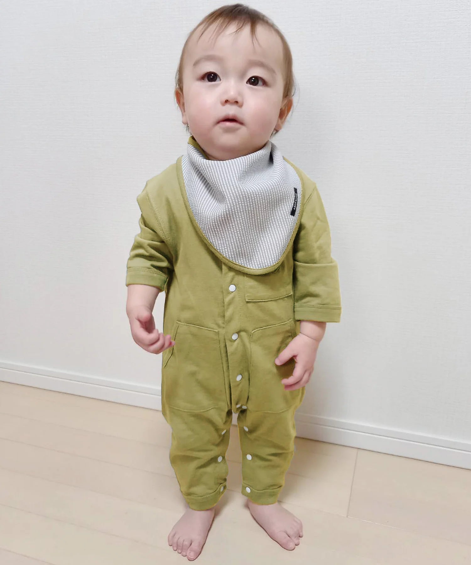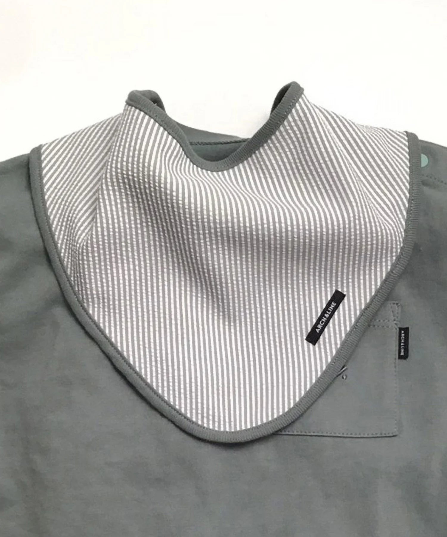 雙面使用的圍兜,一面由吸水快乾的泡泡紗製成,另一面由有機棉製成。