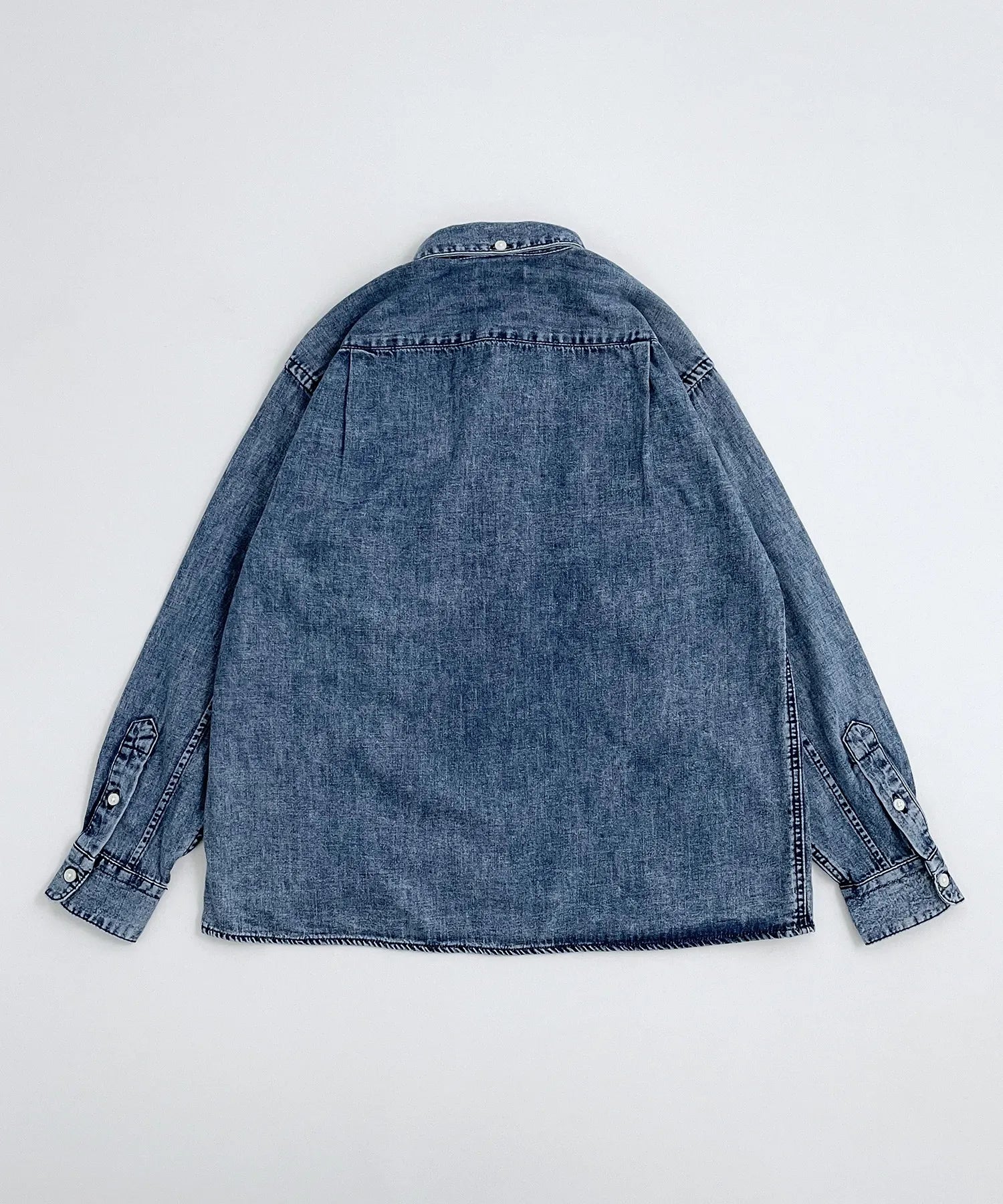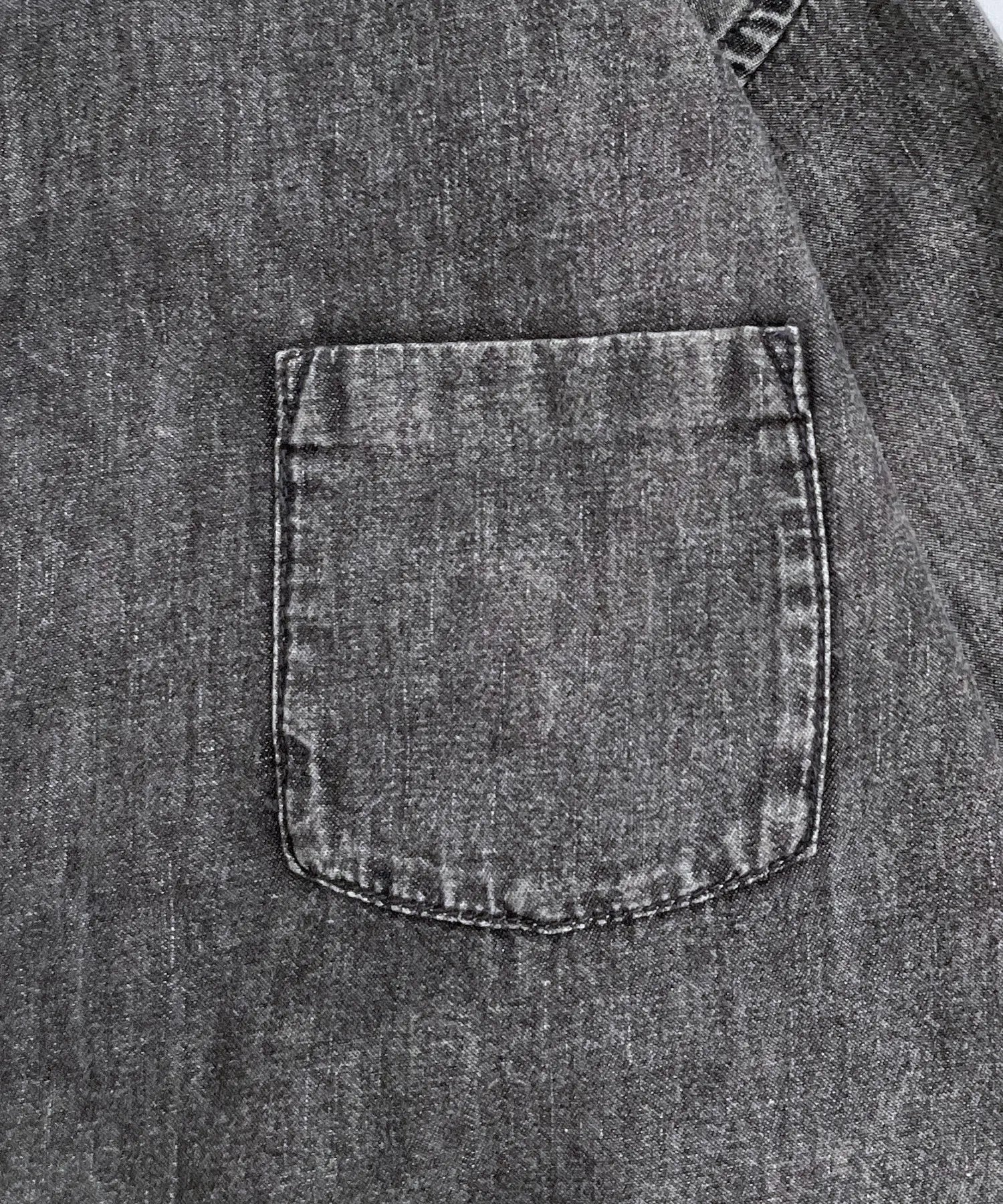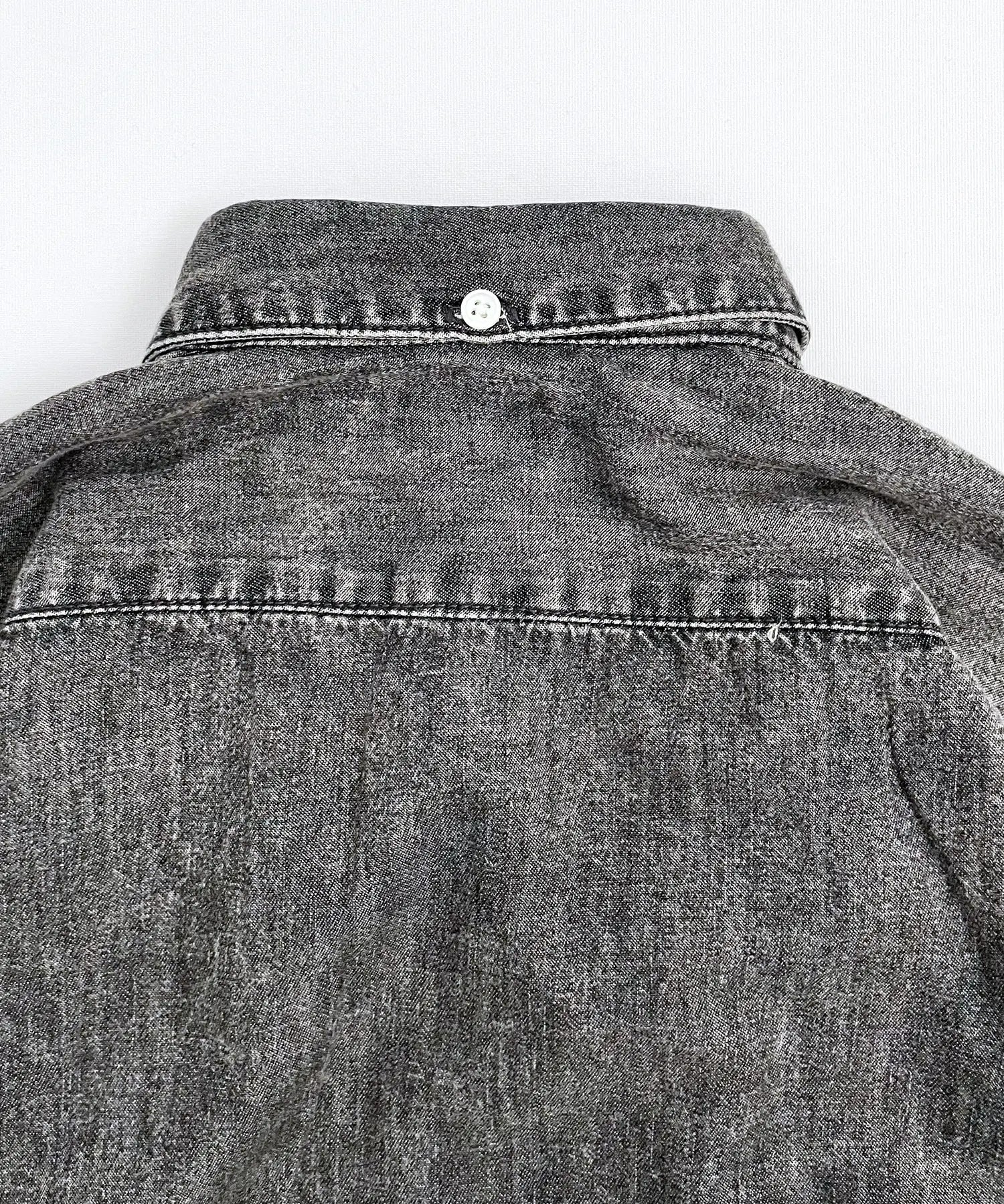 ■細節 有機棉淺色牛仔布製成的繫扣襯衫。略寬的輪廓和筆直的下擺,可以作為外套穿著的設計。經過加工處理,非常柔軟,所以一年四季都可以穿著。也推薦給媽媽和爸爸。