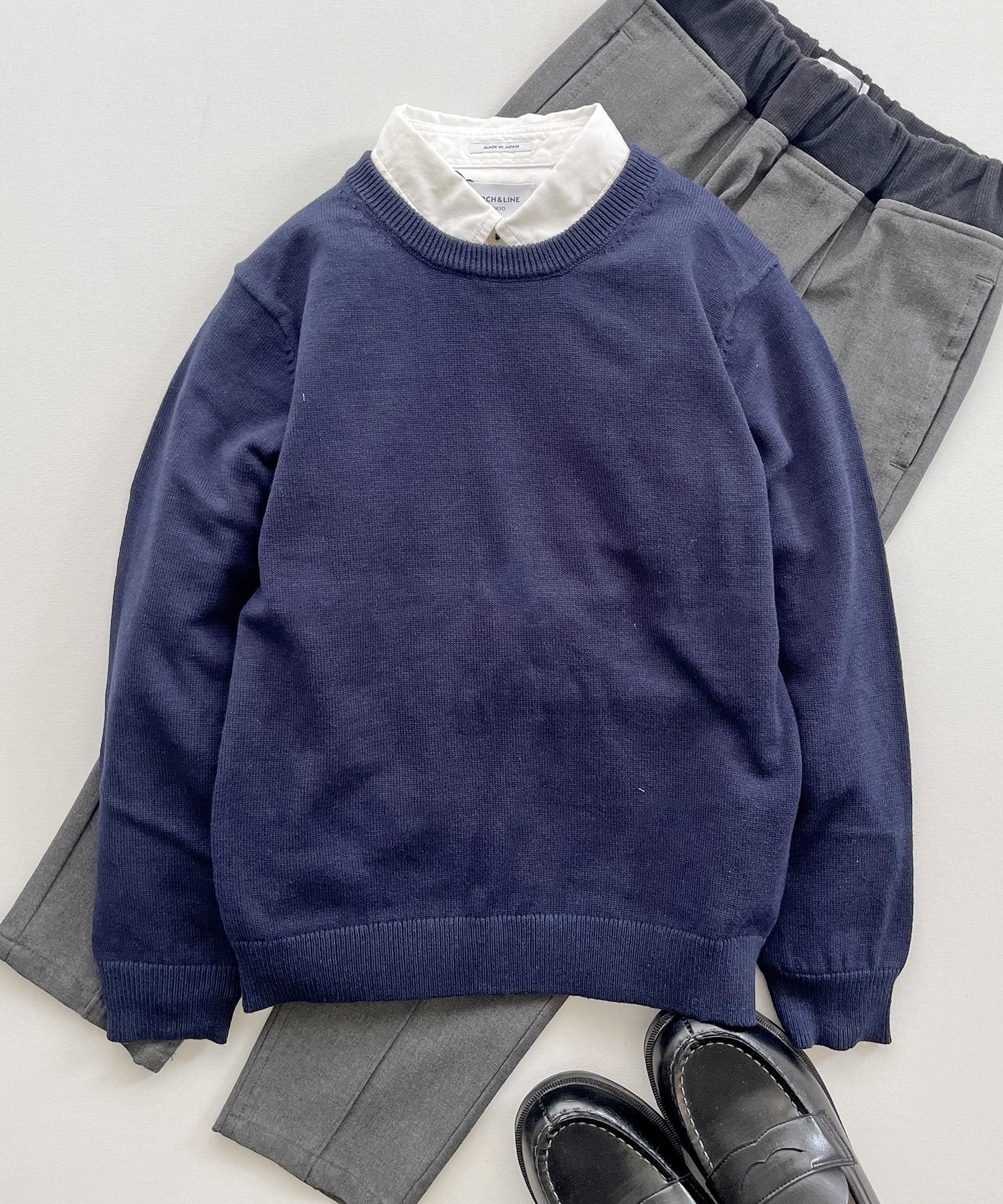 12G針織套頭衫。基本的設計使其深受那些想要穿不同於T恤和運動衫的人的歡迎。作為冬季造型的強調色,它也可以用於春季場合。尺寸剛好寬鬆,所以你甚至可以把襯衫塞進去。可在洗衣網中機洗(建議平鋪晾乾)。