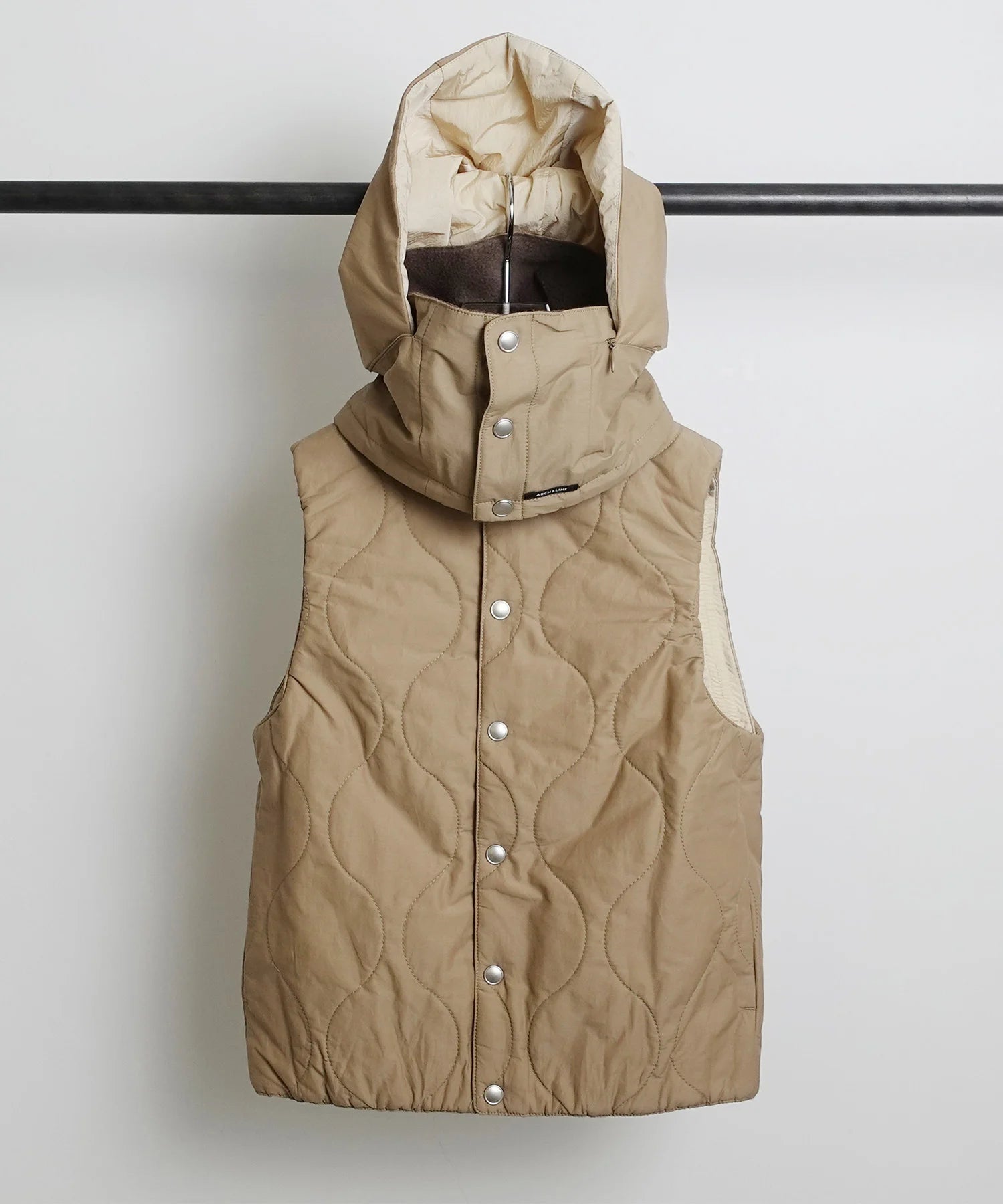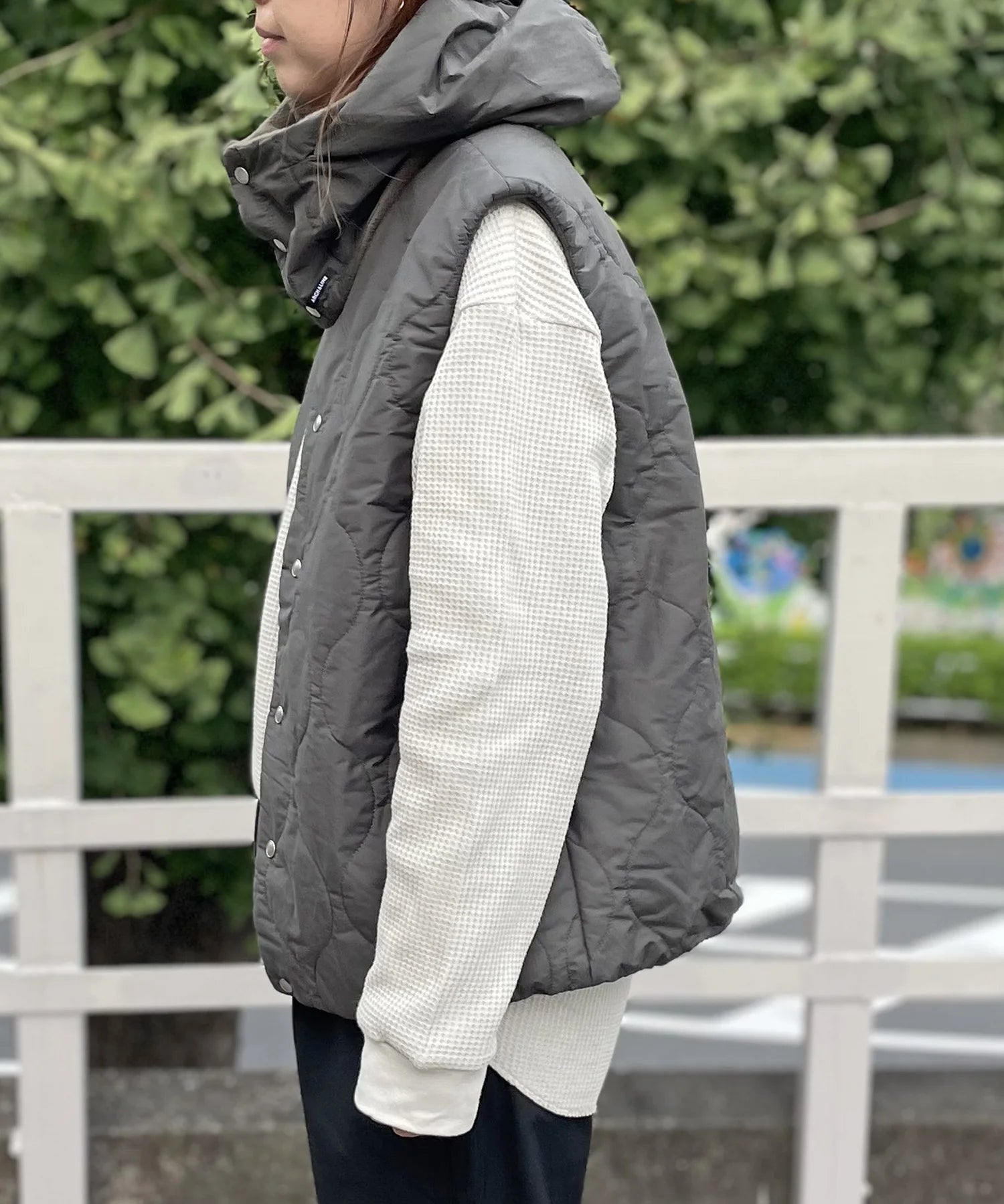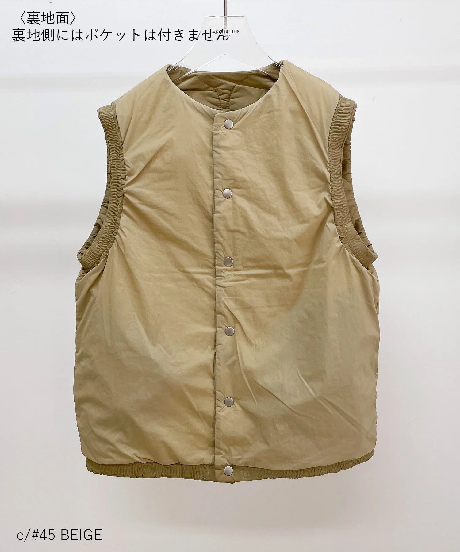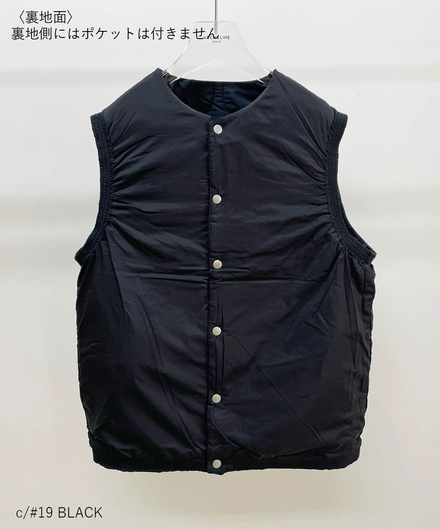 ■細部 <身體> 雙面背心。 Snudi 包含在套裝中。 - 簡單的設計,正面有絲瓜絡絎縫,背面沒有絎縫 - 相對乾淨的輪廓,可以作為外套內穿的內背心。 - 填充物既不太薄,也不太熱,可以穿大半年,不包括盛夏。・兩側有口袋。
