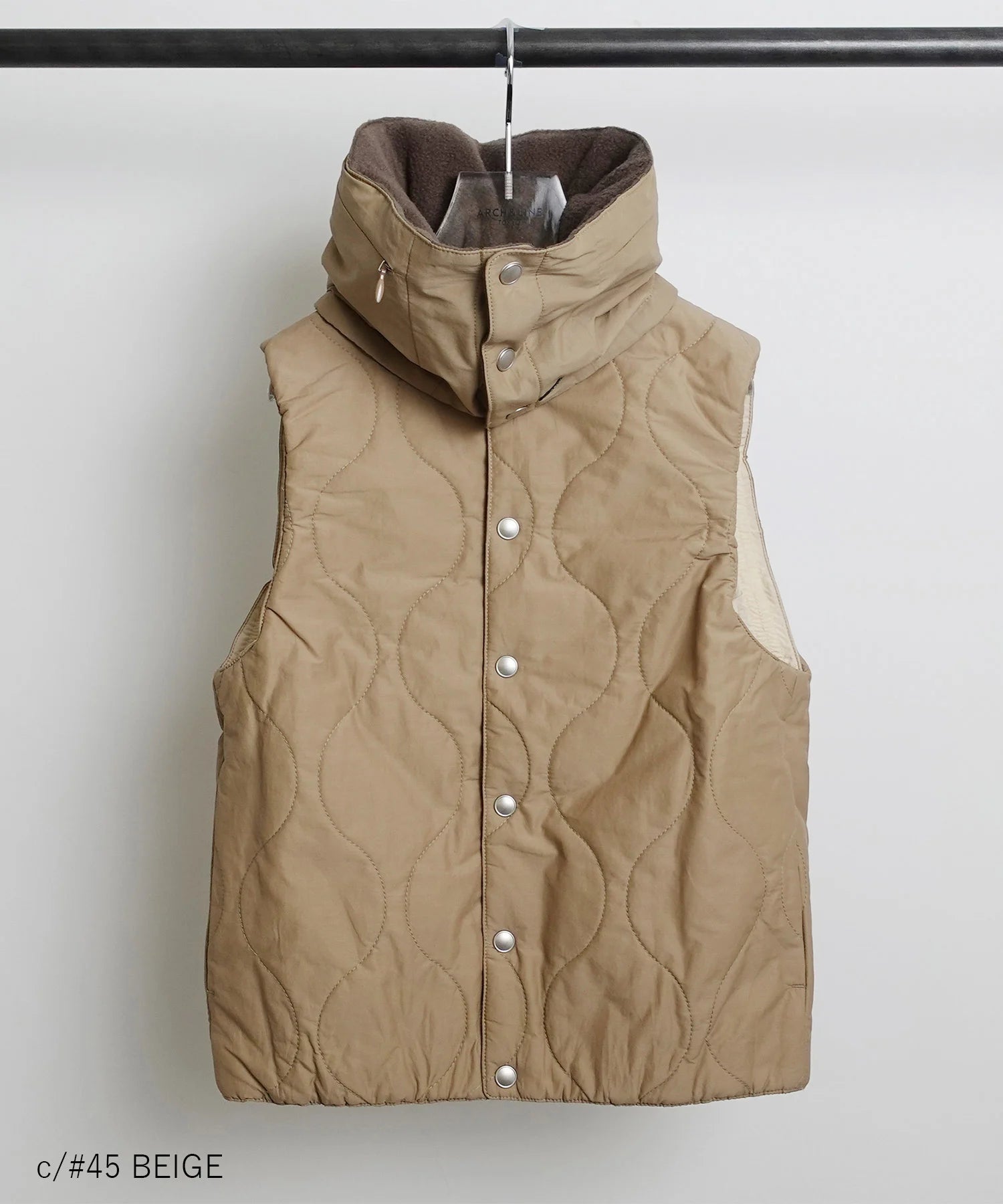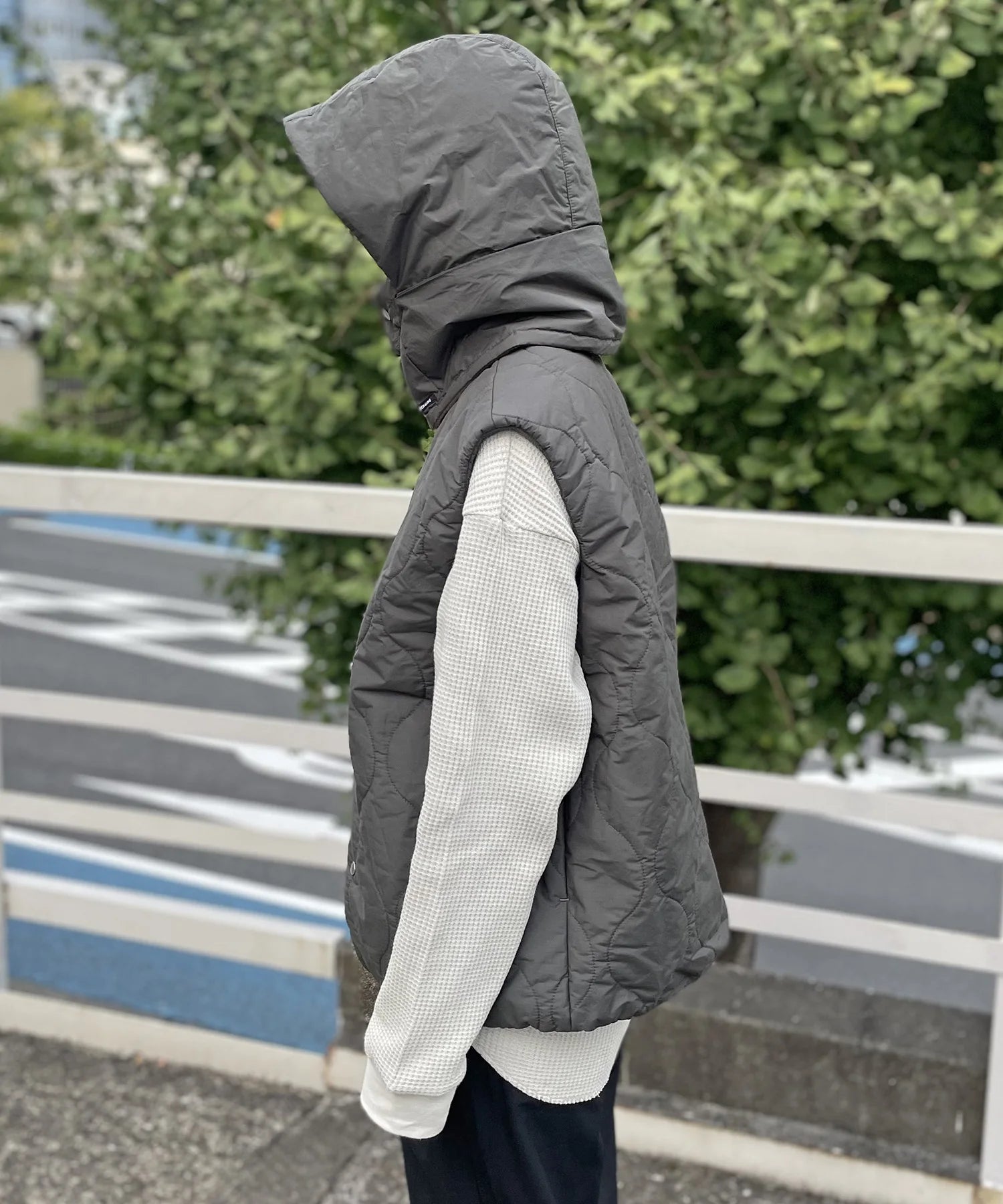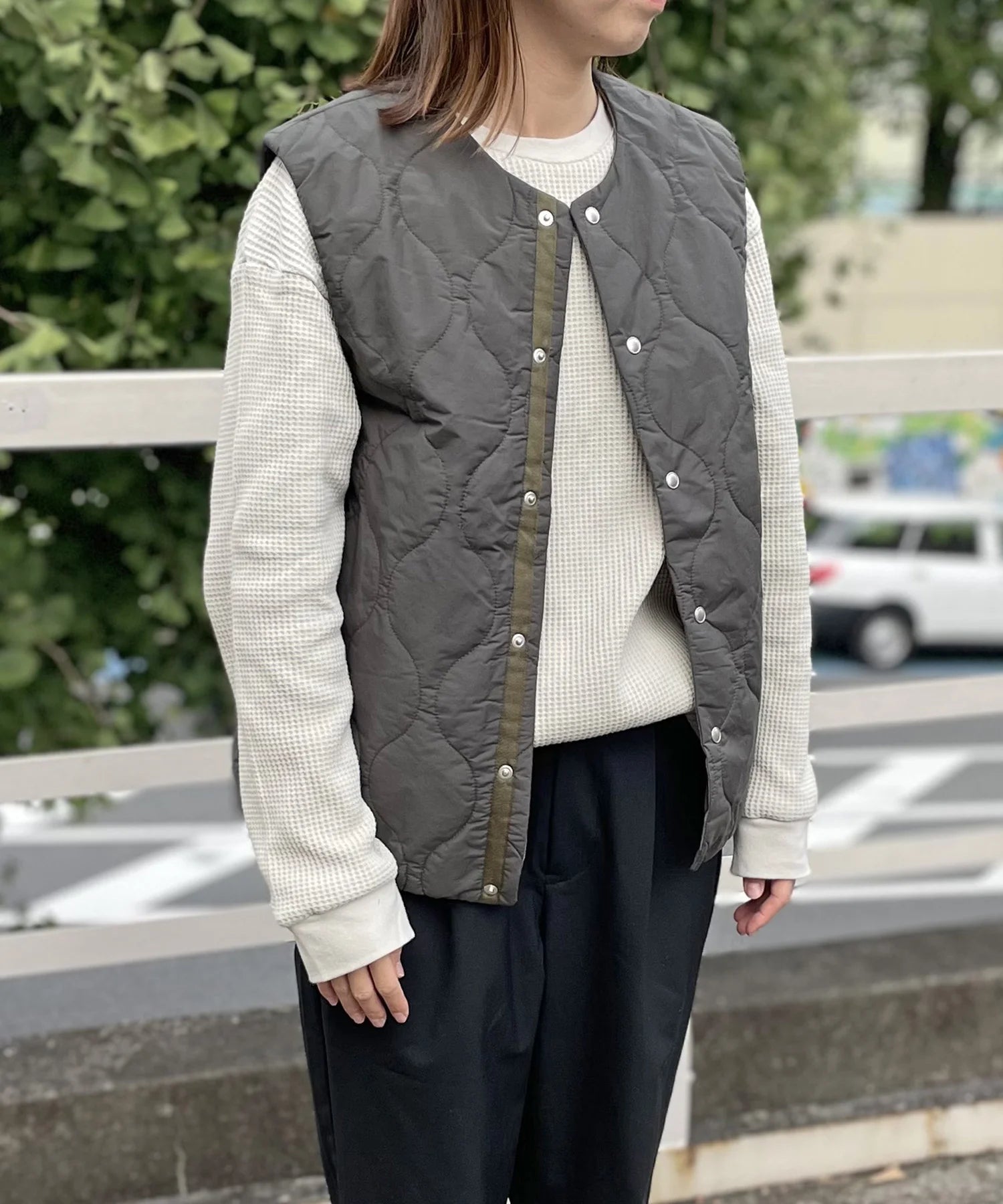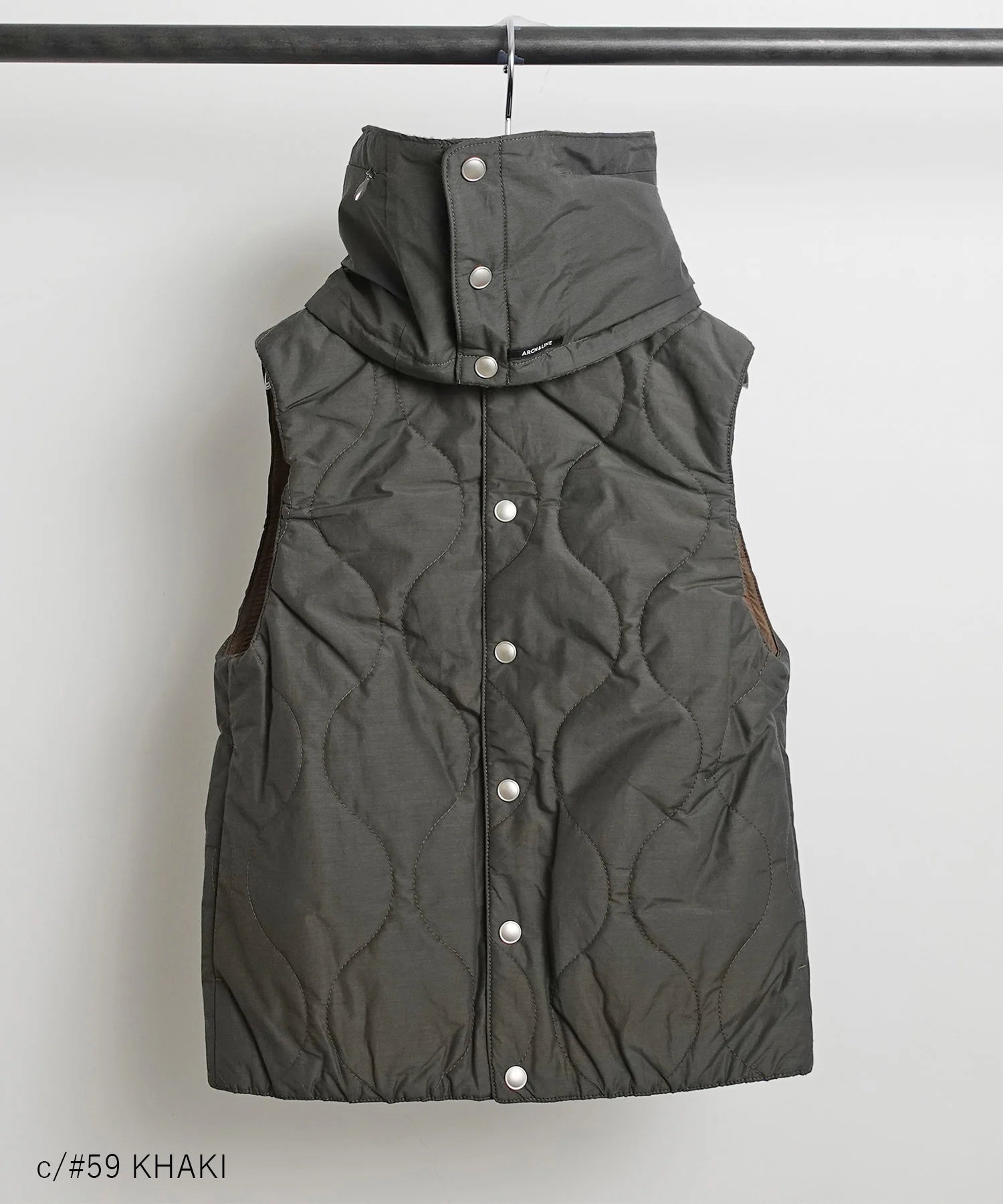 ■細部 <身體> 雙面背心。 Snudi 包含在套裝中。 - 簡單的設計,正面有絲瓜絡絎縫,背面沒有絎縫 - 相對乾淨的輪廓,可以作為外套內穿的內背心。 - 填充物既不太薄,也不太熱,可以穿大半年,不包括盛夏。・兩側有口袋。
