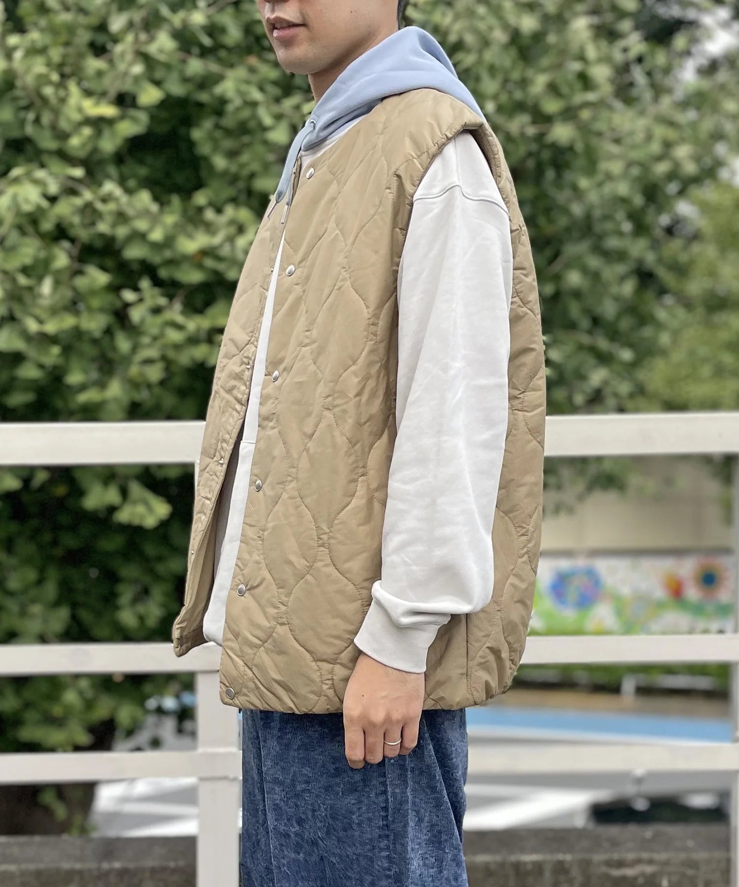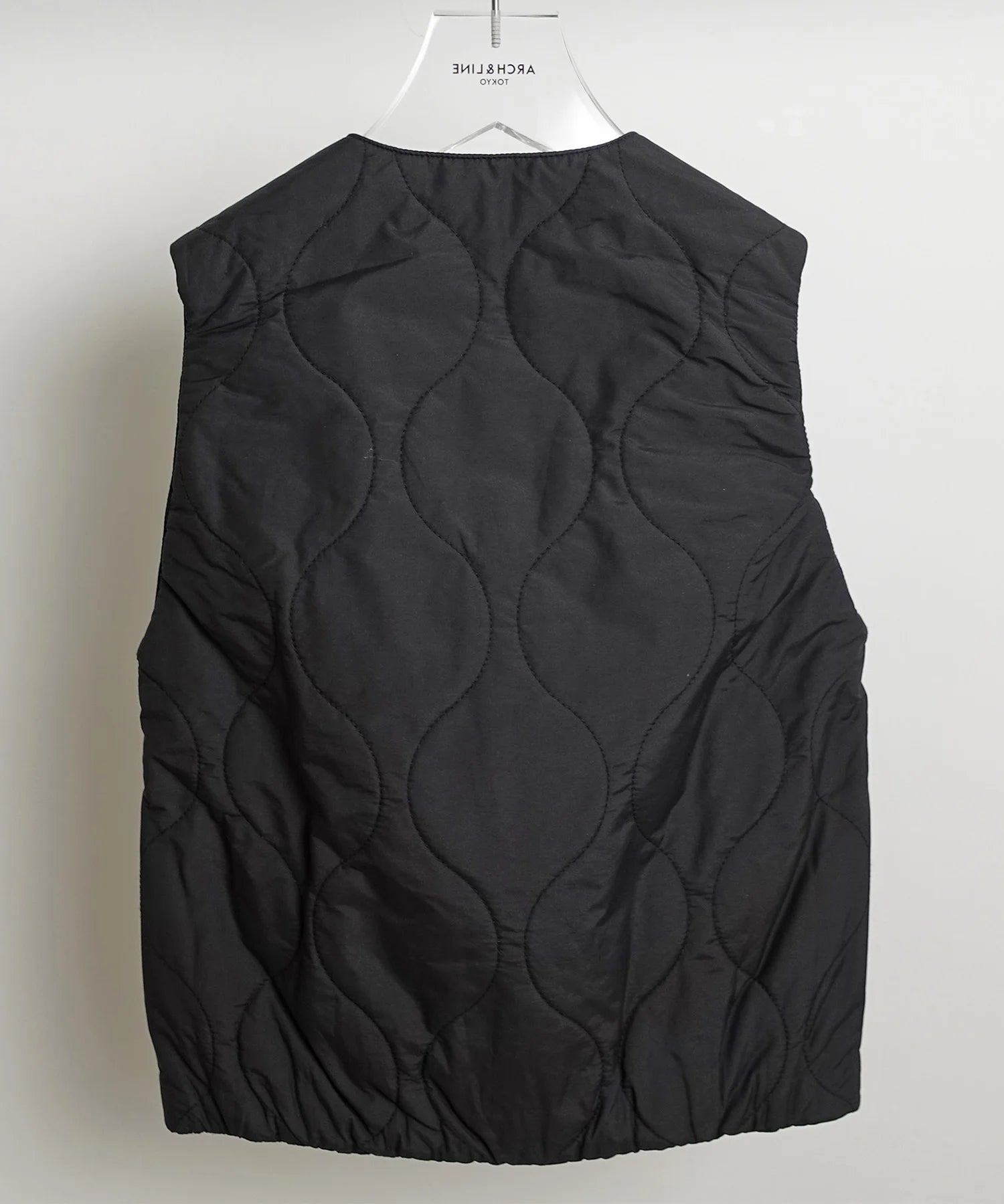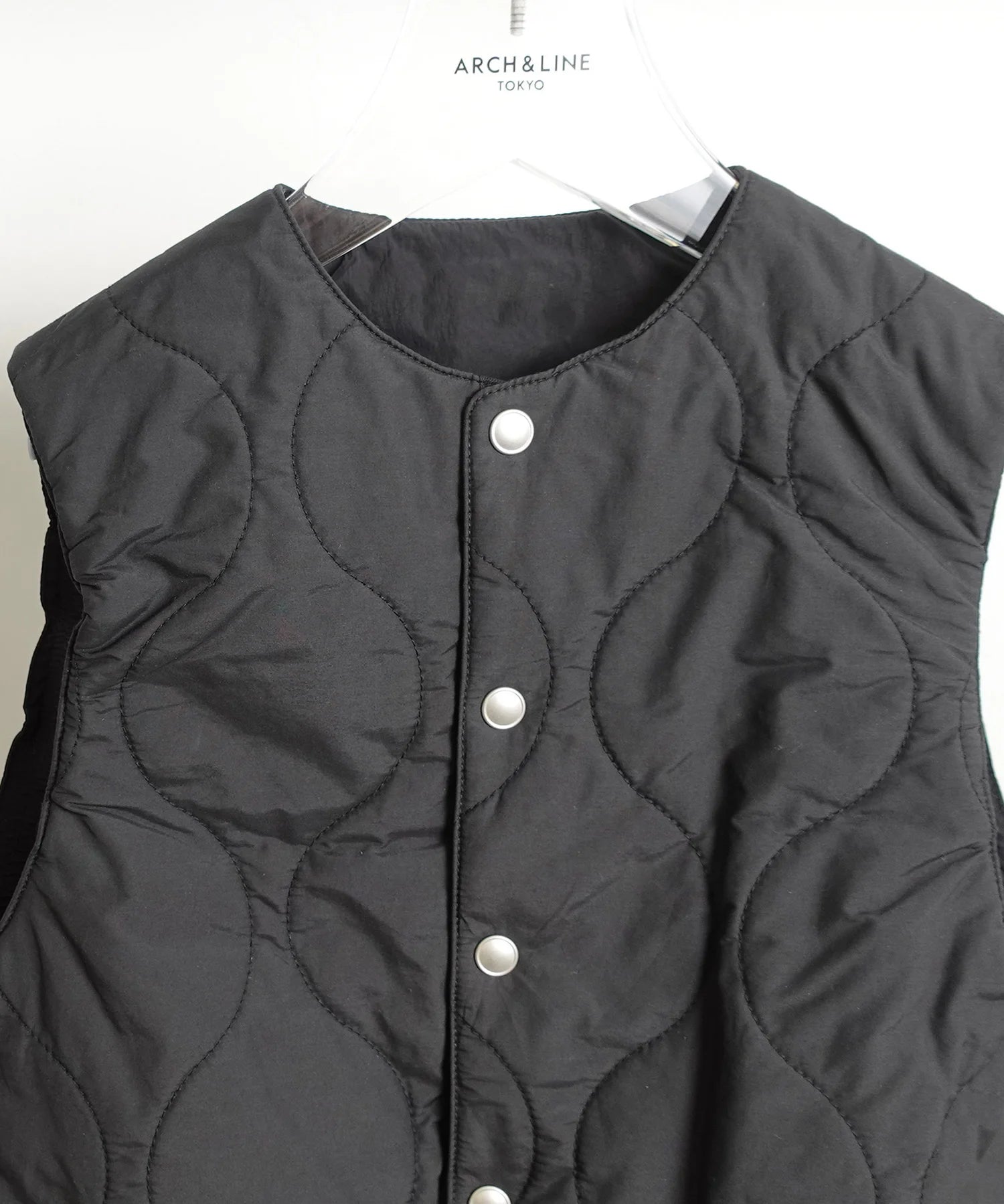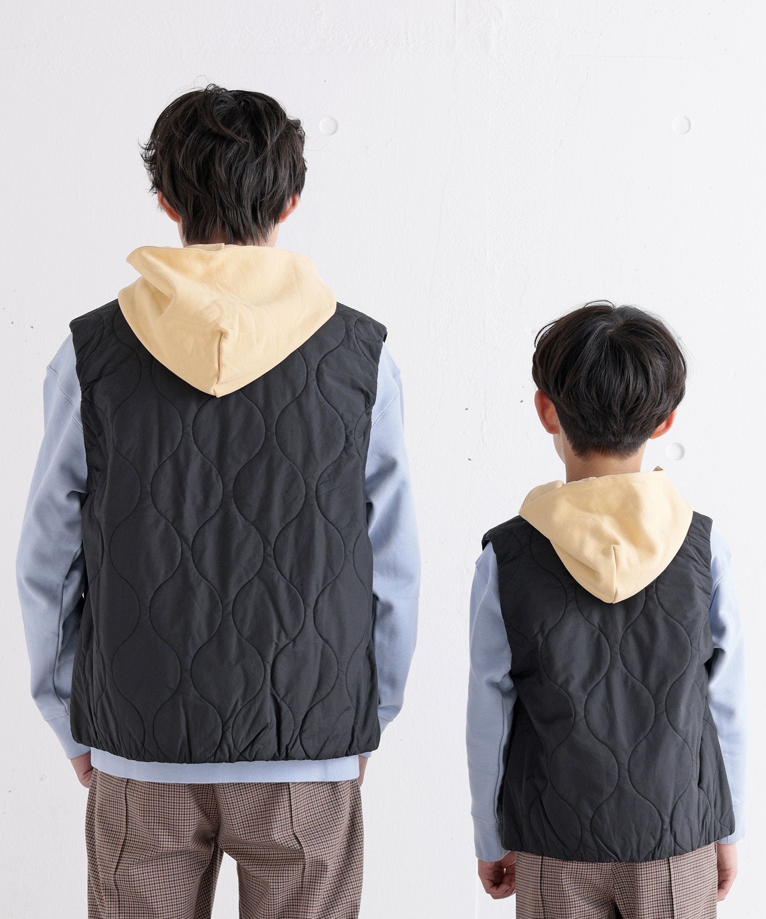 ■細部 <身體> 雙面背心。 Snudi 包含在套裝中。 - 簡單的設計,正面有絲瓜絡絎縫,背面沒有絎縫 - 相對乾淨的輪廓,可以作為外套內穿的內背心。 - 填充物既不太薄,也不太熱,可以穿大半年,不包括盛夏。・兩側有口袋。