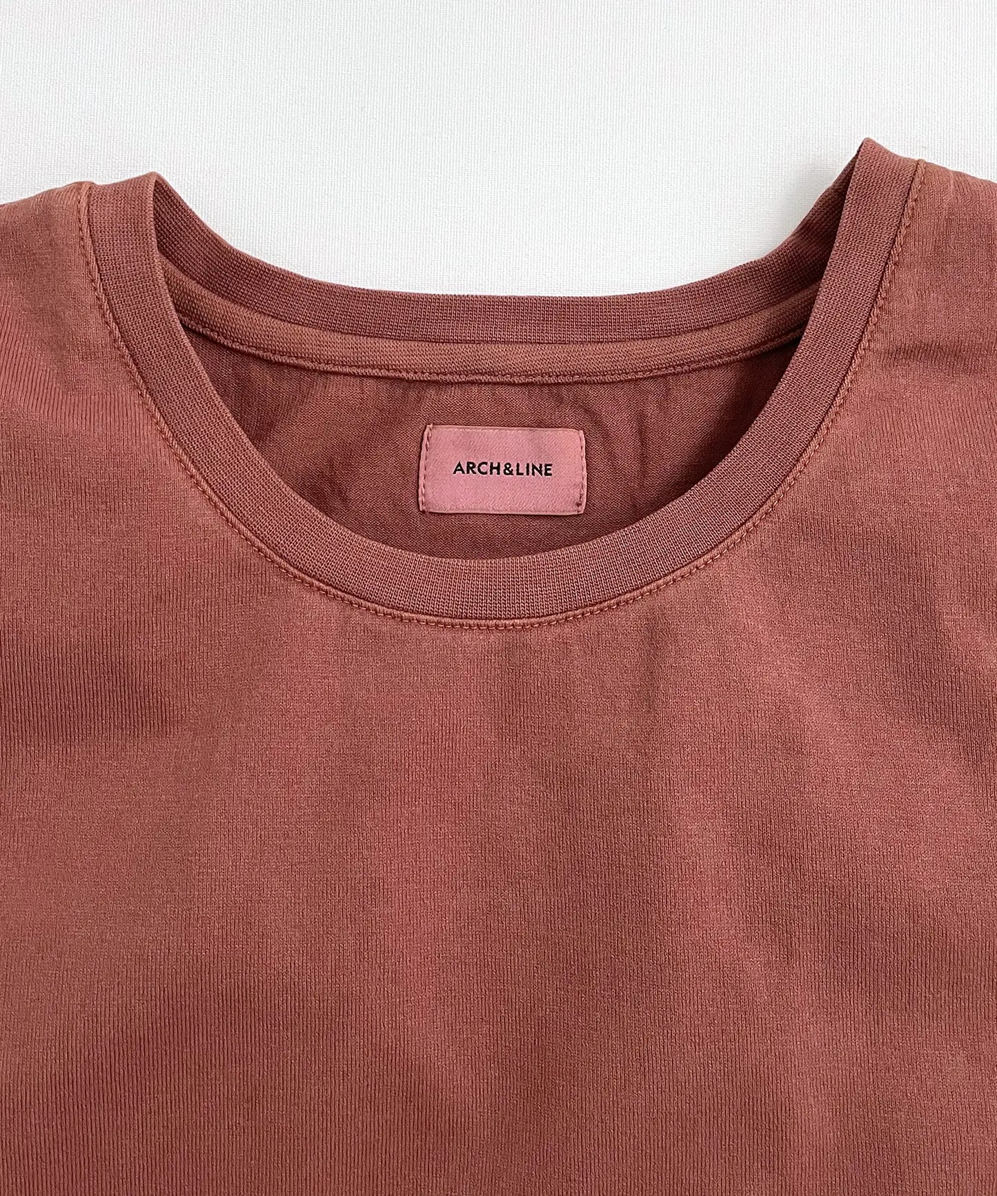 ■材質 原創有機棉汗布,原創面料,既鋒利又柔軟,這款T恤的要點是美觀的同時又保持了面料的厚度,雙線處理,面料穩定,不易磨損我們的目標是不太厚也不太薄的異常厚度。此外,染色時的水用量可以減半。使用固色劑(固定顏色的溶劑)。*減少量根據不同情況而變化。還可以節省染料並減少廢水負荷。