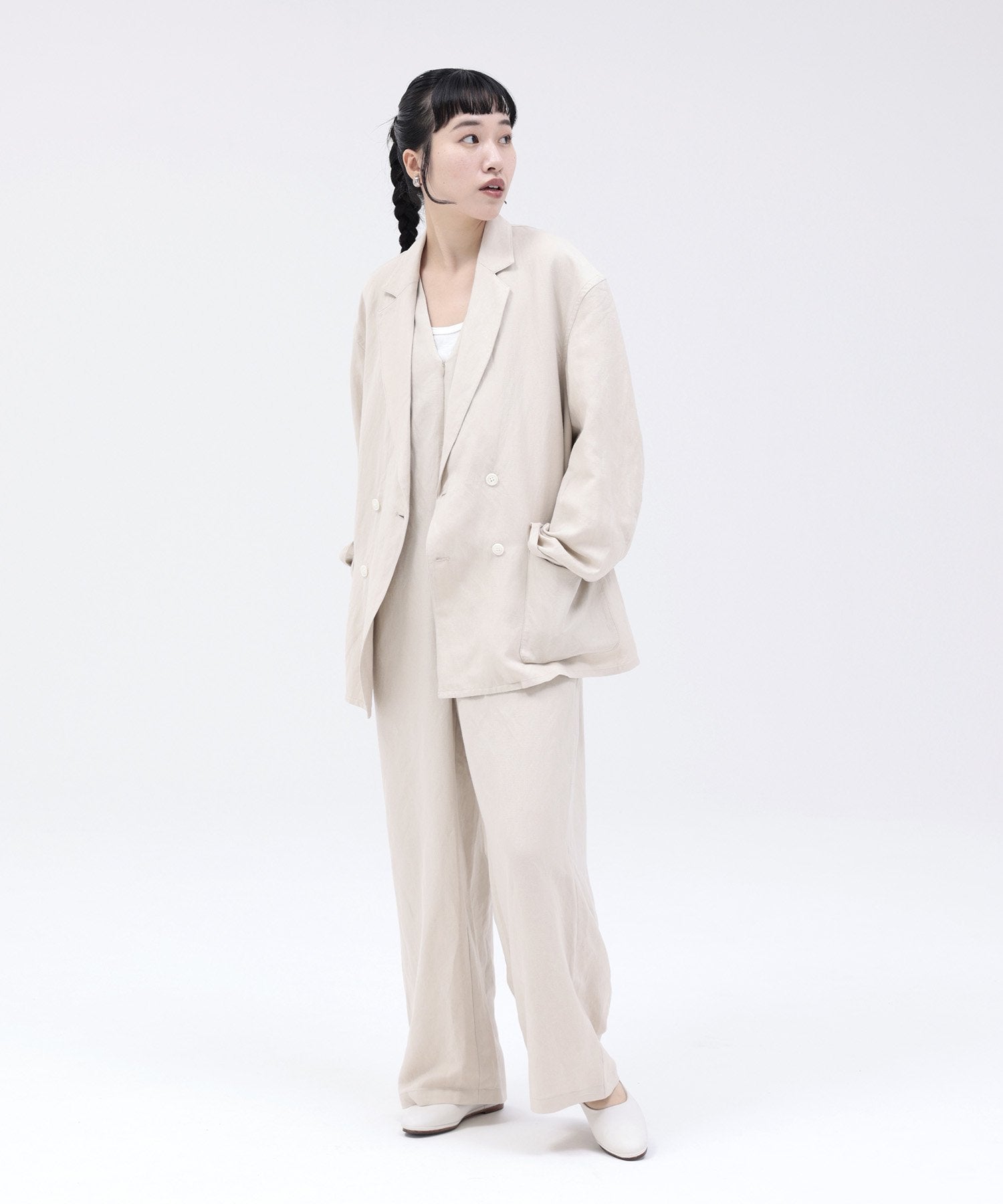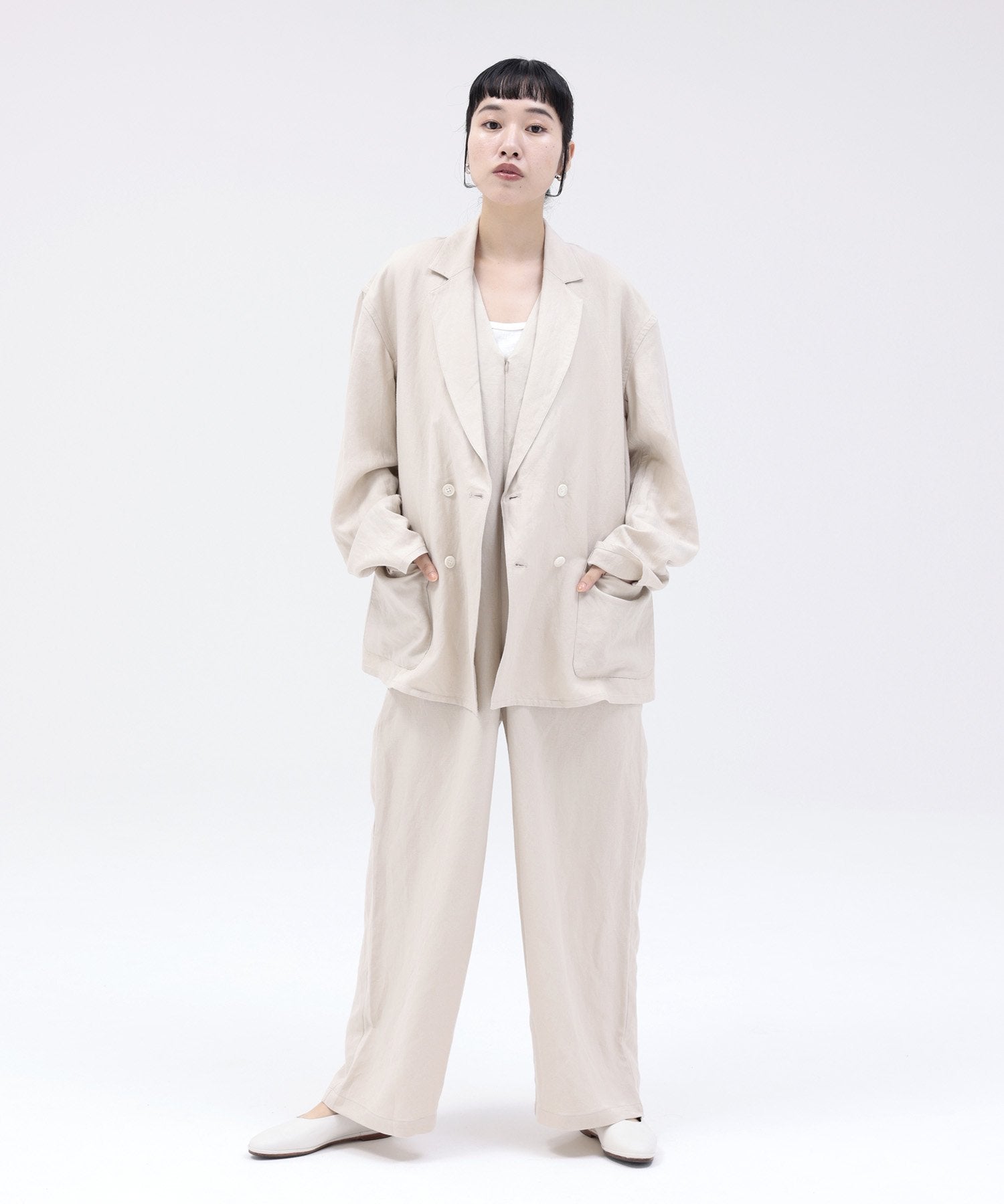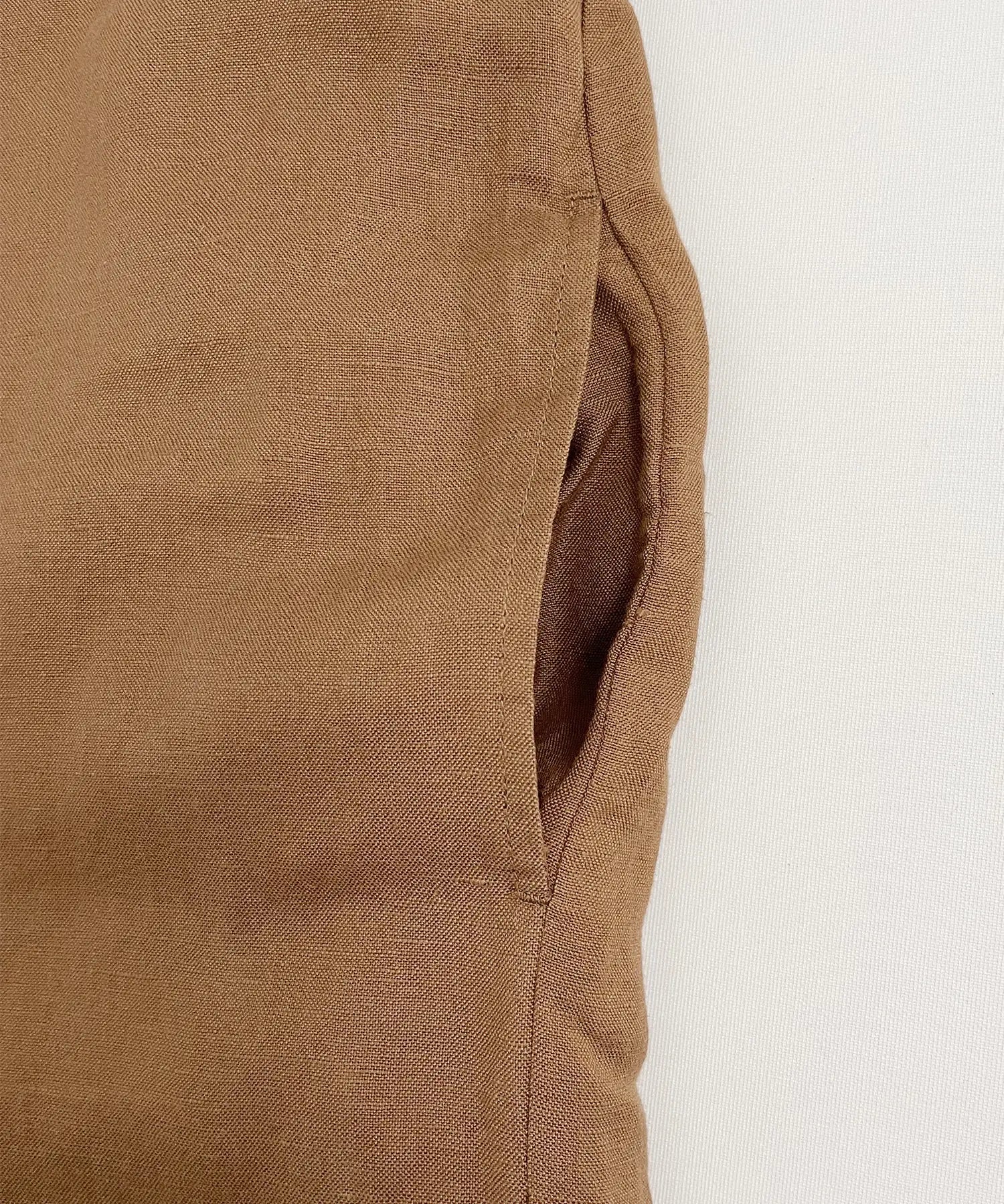■材質 使用厚的亞麻/人造絲材質。雖然休閒,但人造絲的垂感和亞麻獨特的線邊給人一種成熟的印象。亞麻是一種環保材料,使用較少的農藥和水,使其成為環保的選擇。