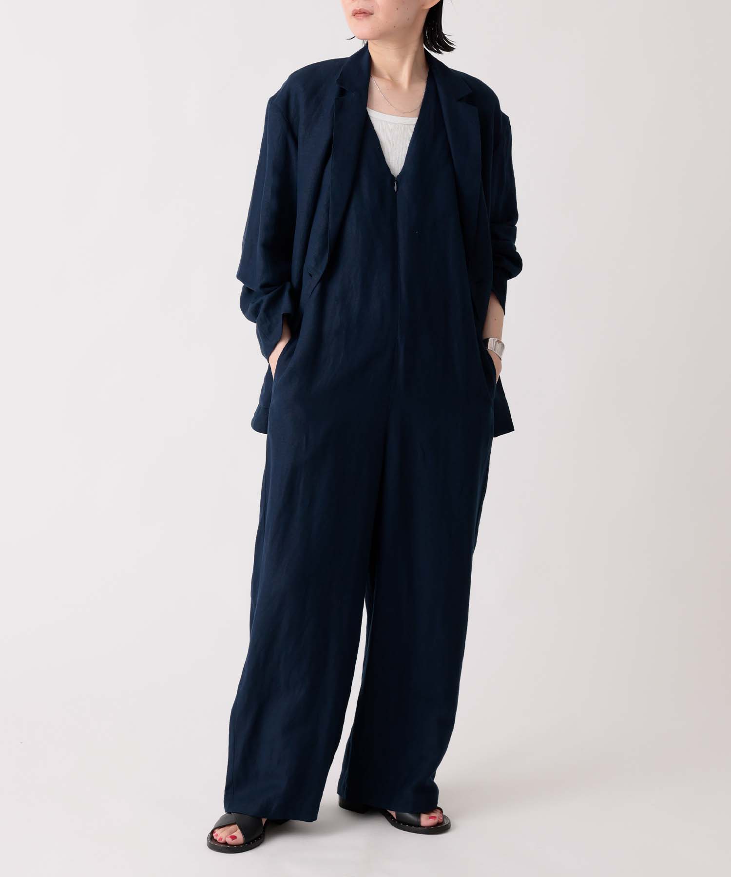 ■細部 亞麻/人造絲混紡材料製成的工作服。精緻簡約的設計適合任何性別或年齡。具有清涼效果,即使在盛夏也能舒適穿著,並具有清涼快乾的特性。
