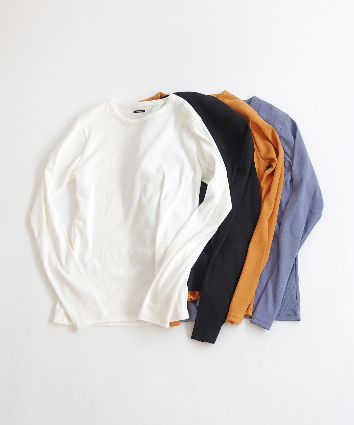 ■細節 棉質羅紋圓領長袖T卹。它具有恰到好處的彈性,穿著舒適。我們對衣領進行了微調,使其既不太窄也不太寬,旨在打造適合任何場合穿著的形狀。