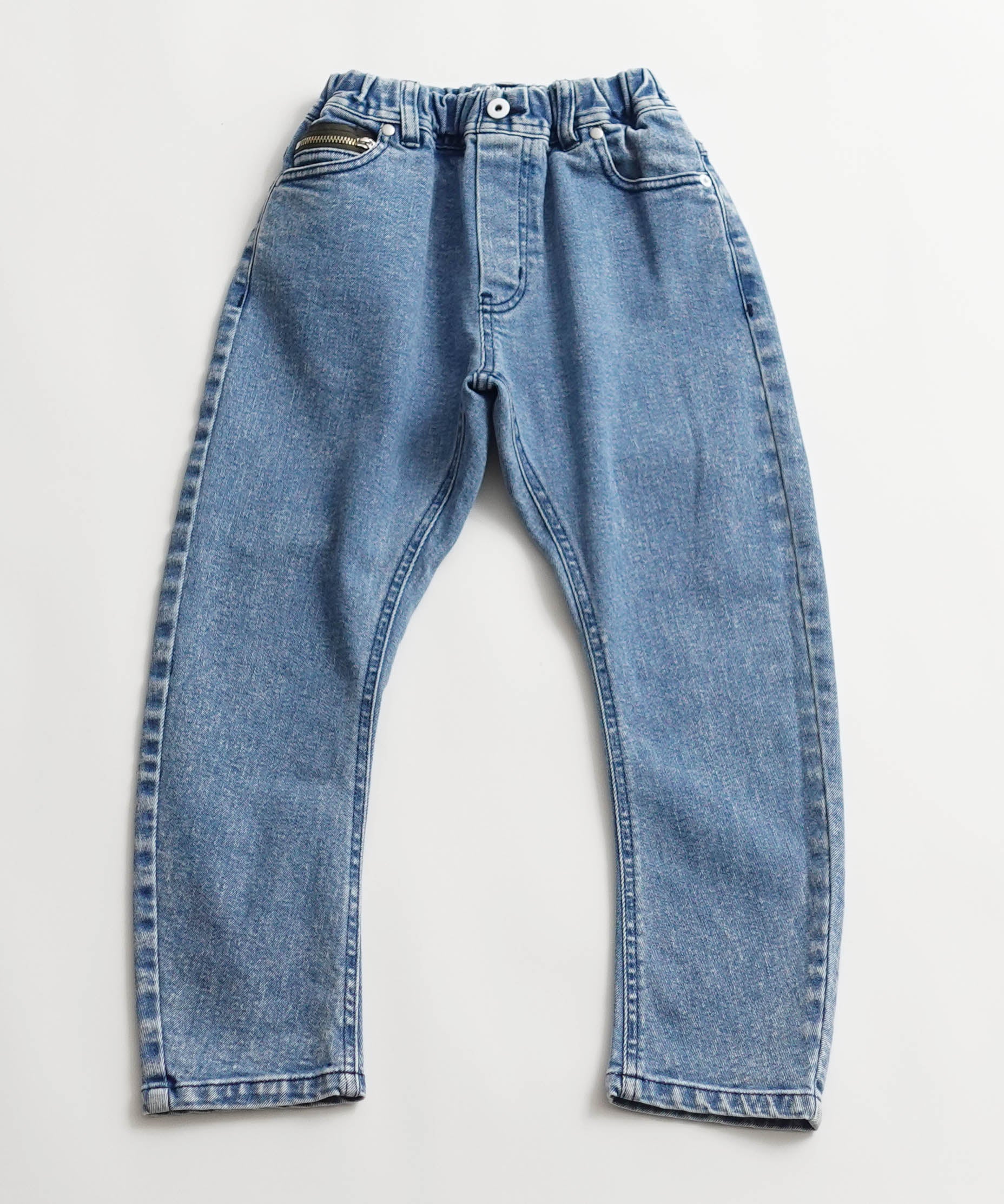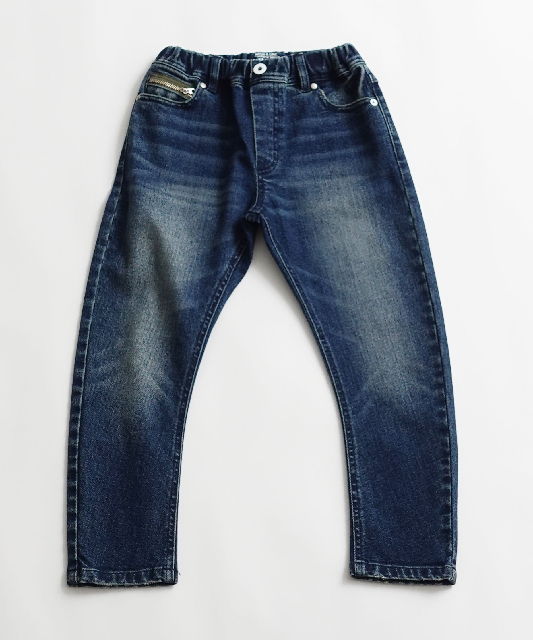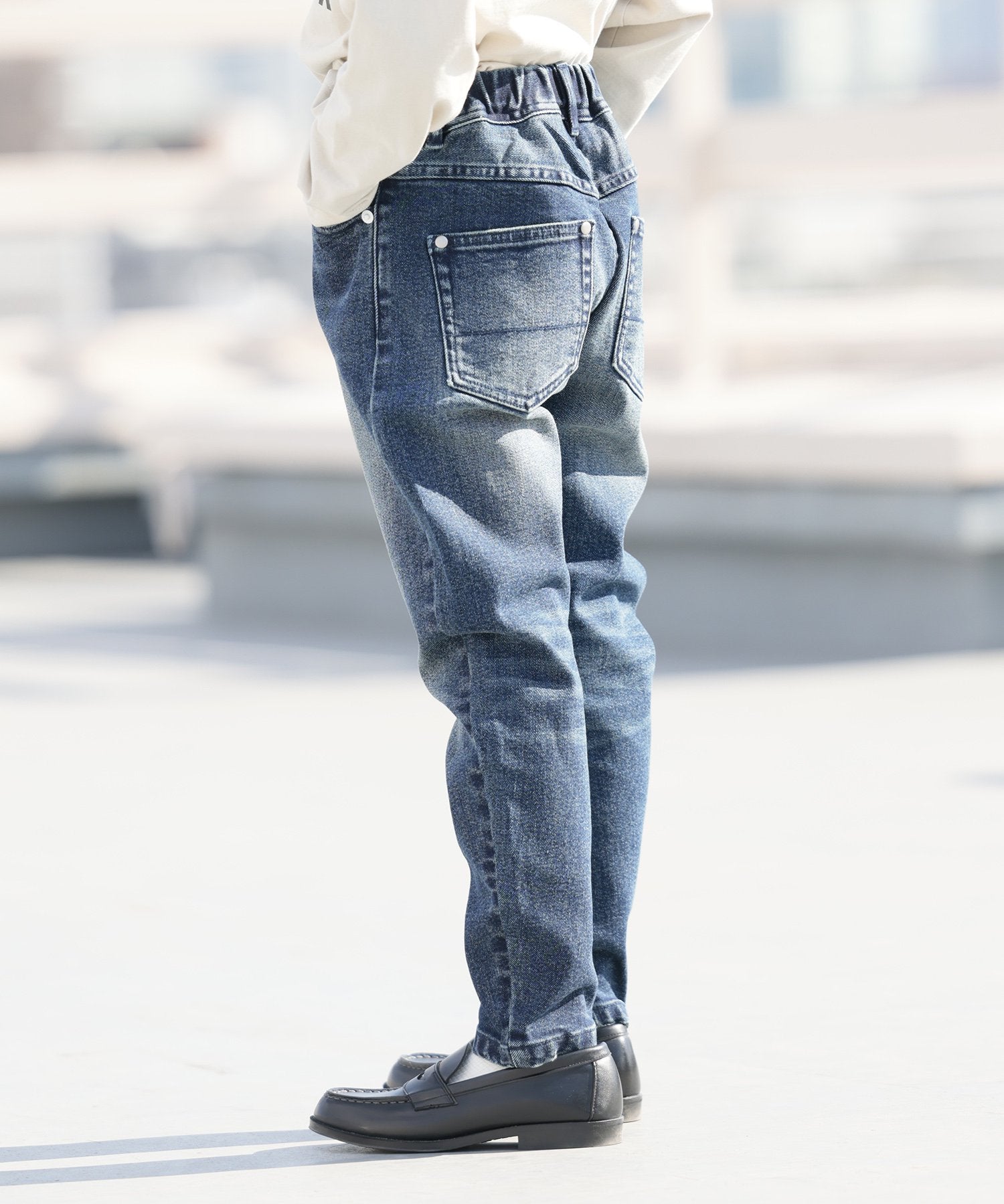 ■素材 リサイクルコットンを6%使用した、広島県福山市で生産されたデニム生地をセレクト. 環境配慮素材、そしてキッズには欠かせないストレッチ入りを探すのに苦労しました. 中肉厚でほどよく身体に馴染むので、履いているのを忘れそうなほど快適. オールシーズン履いていただけます。