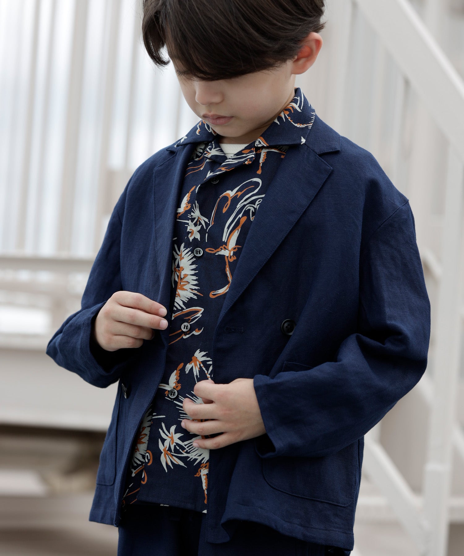 コットン100%のプリント生地を使用した開襟シャツ。セミワイドでミニマルな仕上がりで、もちろんジェンダーを問いません。