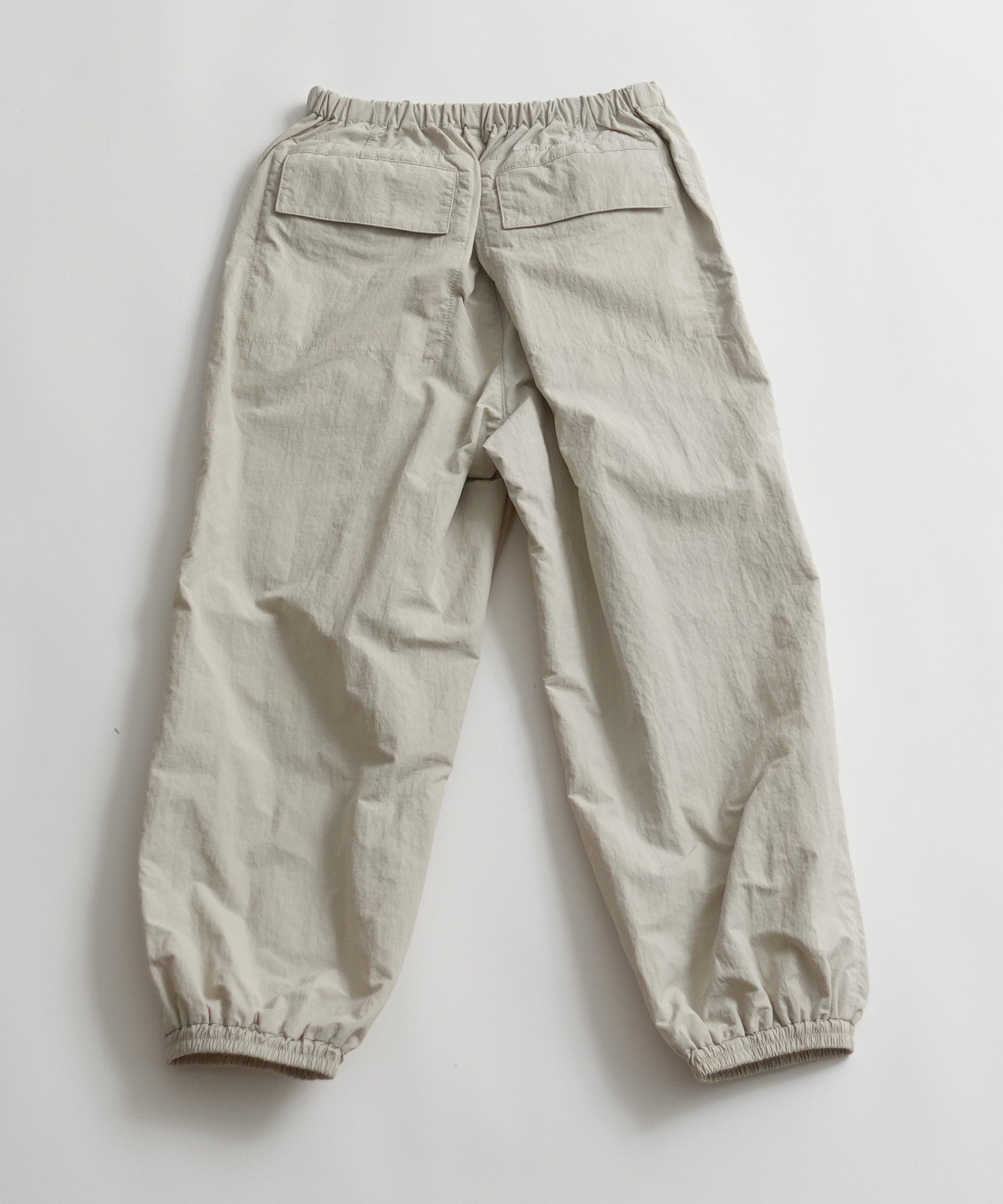 天然ライクなリサイクルナイロンを使用したアラジン型パンツ。リップストップ素材特有の存在感があり、フォルムも綺麗に出て毎日活躍しそう。脇ポケットと、後ろにはフラップ付きのポケットあり。こちらの形はダンスを習っているキッズに特に人気です。合わせやすい4色展開。