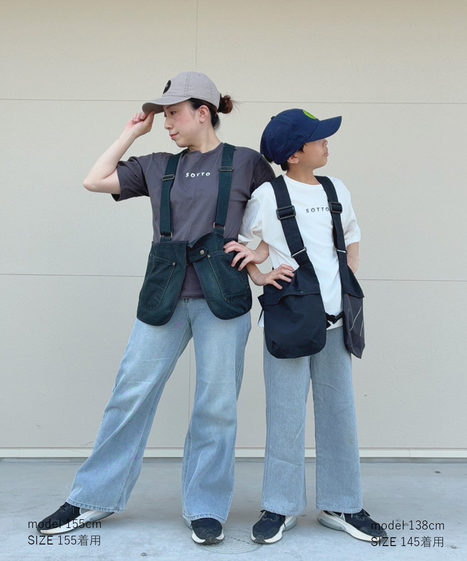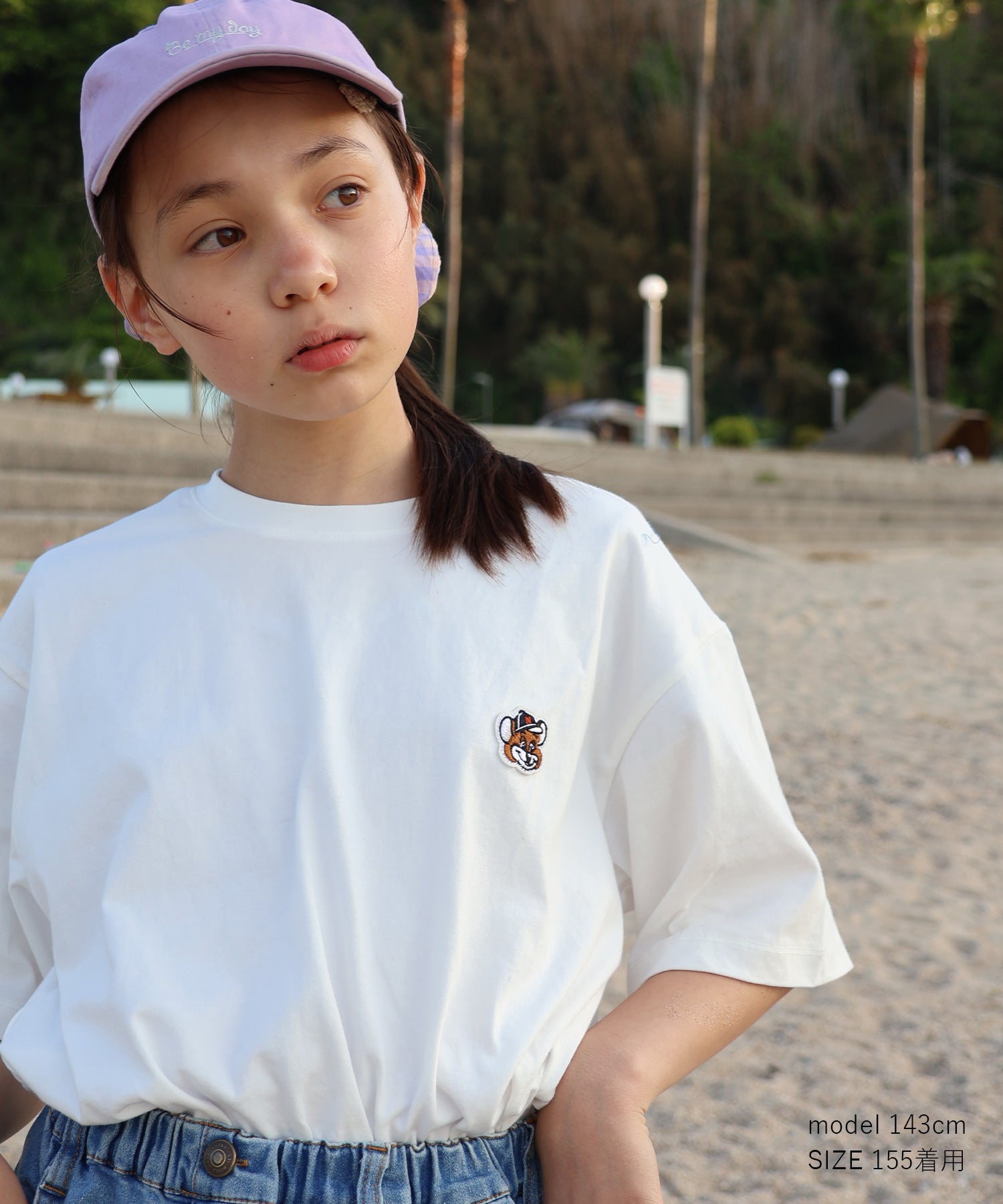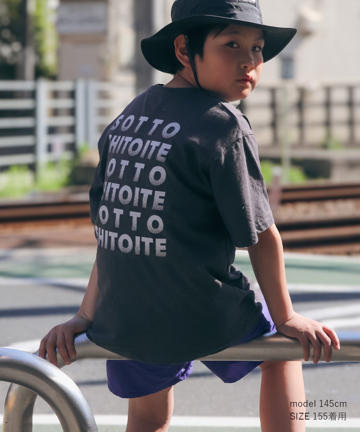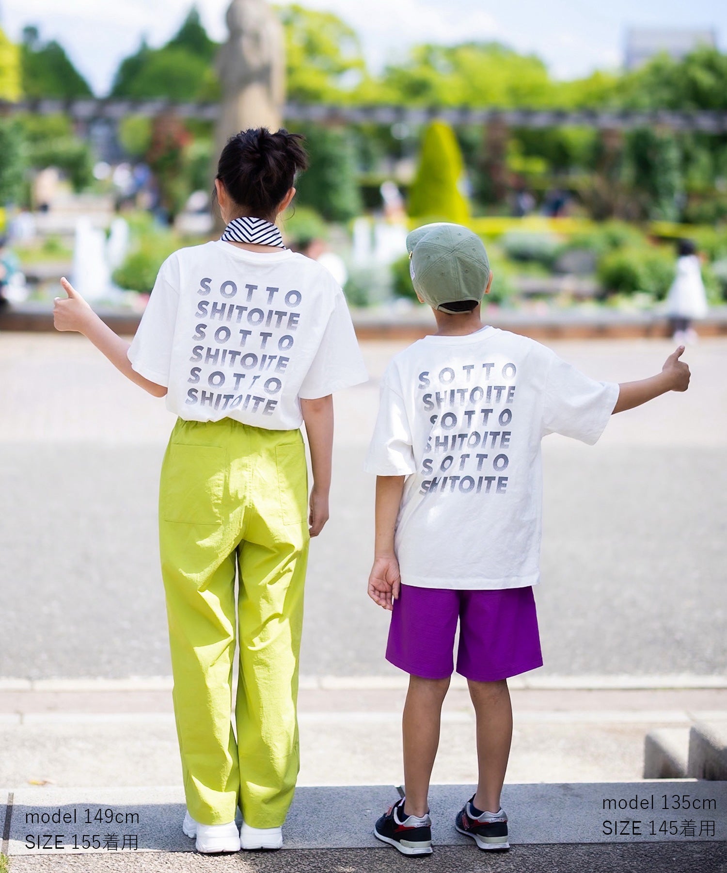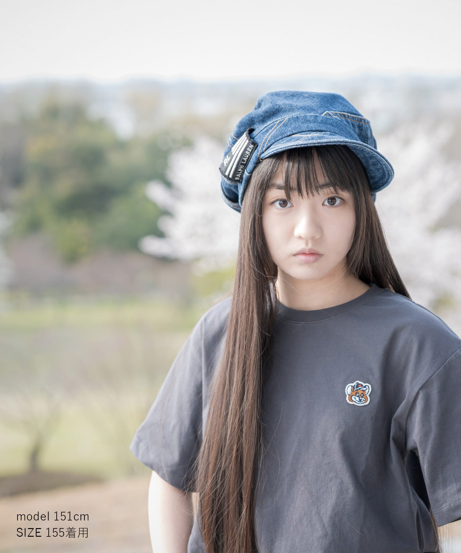 形は定番のジャストルーズ型。ややドロップショルダーで、アームホールもややゆったりと作っており動きを妨げません。左脇に付けたピスネームもポイント。キッズから大人まで着やすい色展開。