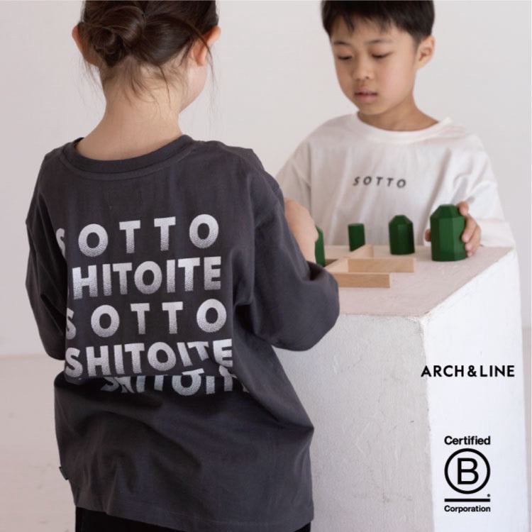 ARCH&LINEの定番人気素材、GOTS認証オーガニックコットン100%の天竺を使用。 手触りは滑らかで、やわらかく優しい着心地。 年間を通じて着やすい厚み。この生地を触ると大抵の方に「子供にはもったいない!」と言われますが、私たちは、子供の頃から質の良い素材を着ることで気持ちにゆとりが生まれたり、人や物を大切に思う心が養えると考えています。
