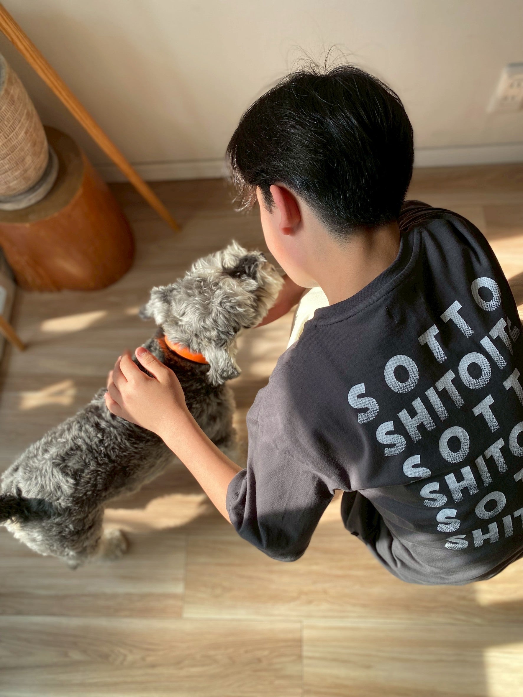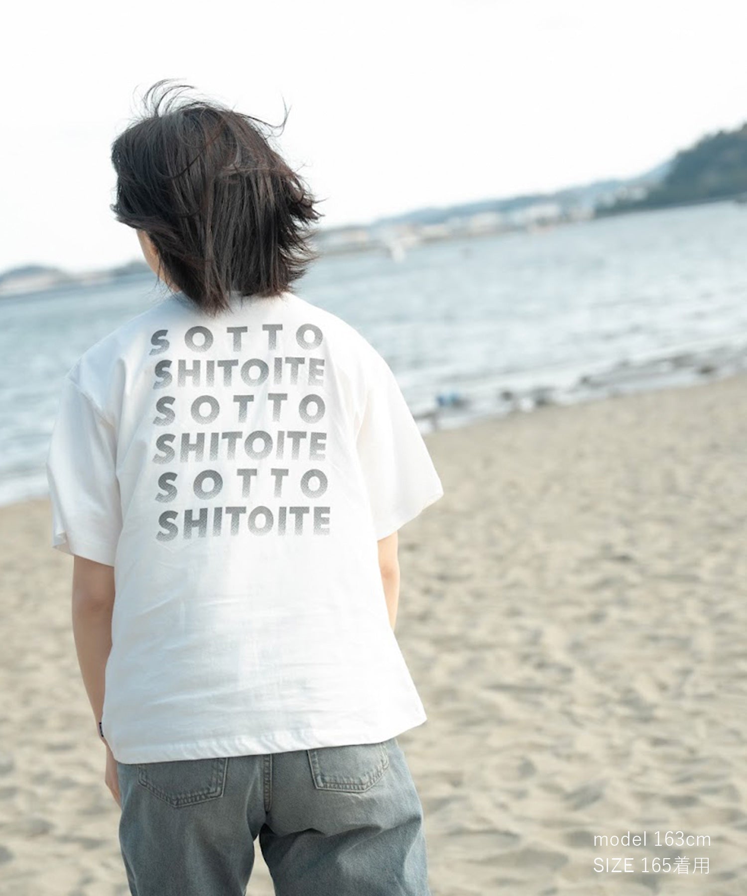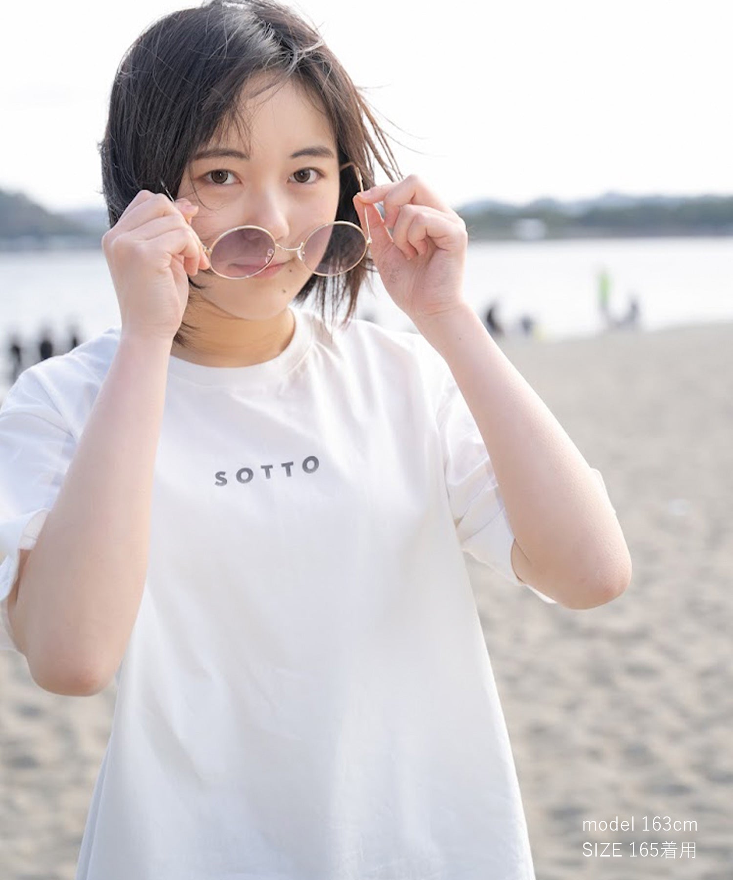 身頃はジャストルーズの作りですが、襟ぐりはどちらかというとコンパクト。ワンサイズ上げて着ていただいてもだらしなしく見えにくいデザインです。お好みに合わせてお選びください。